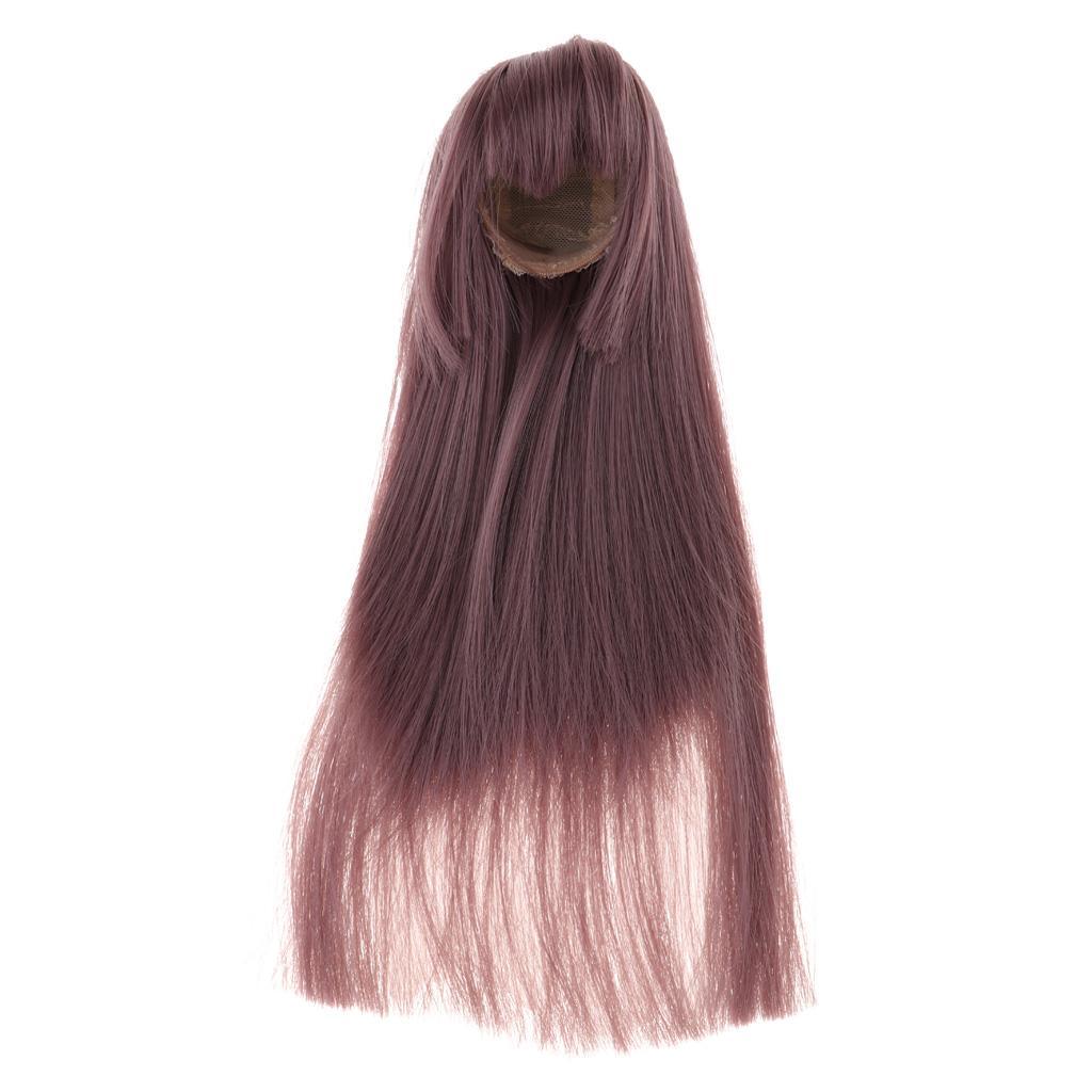 Maxbell 16inch Bjd Doll Hair Long Curly Wig for YOSD 1/4 Doll DIY Chestnut Straight