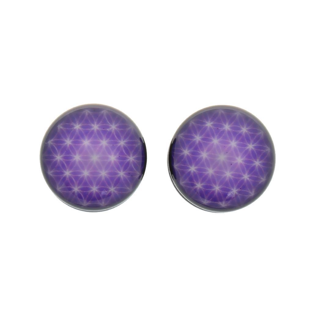 Maxbell Maxbell 1Pair Acrylic Purple Net Flesh Tunnel Ear Plug Earring Expander 14mm