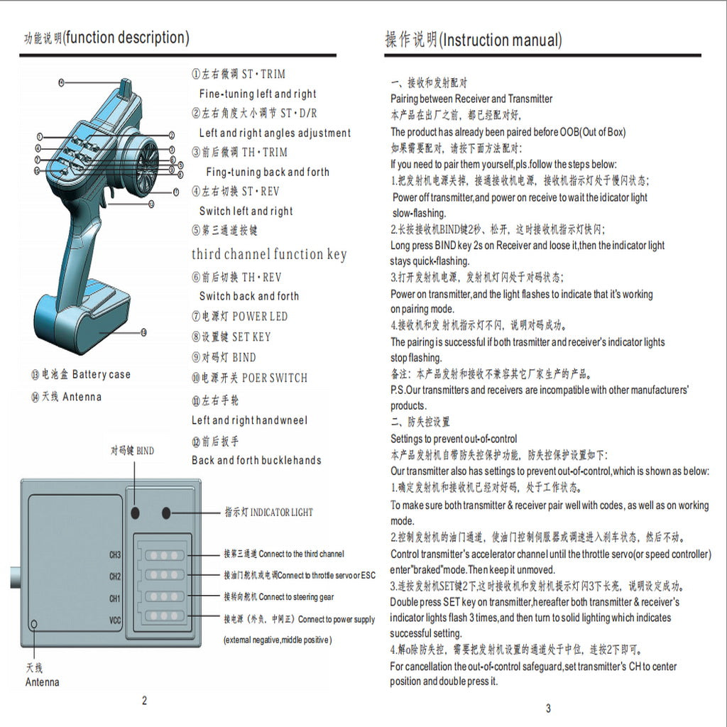 Maxbell 2.4GHz 3CH Radio Transmitter & Receiver For RC Boat and Car
