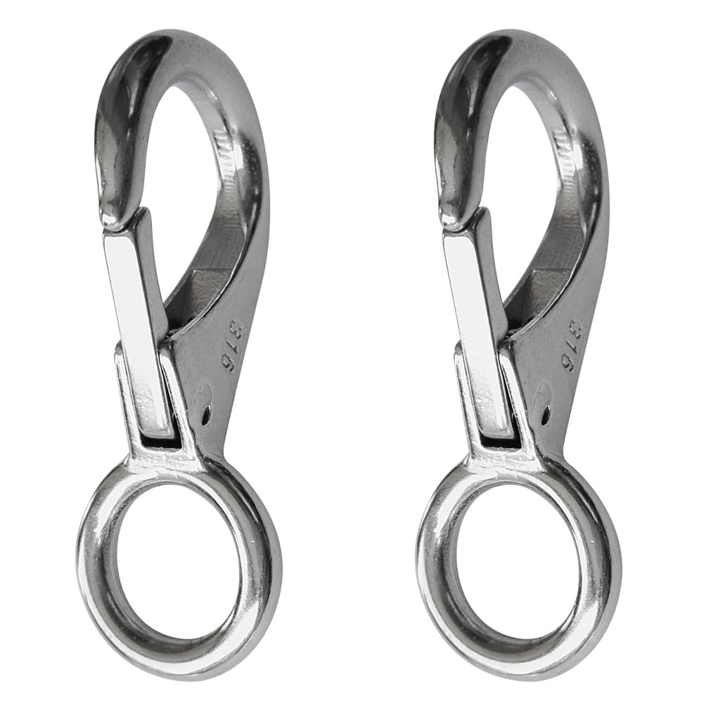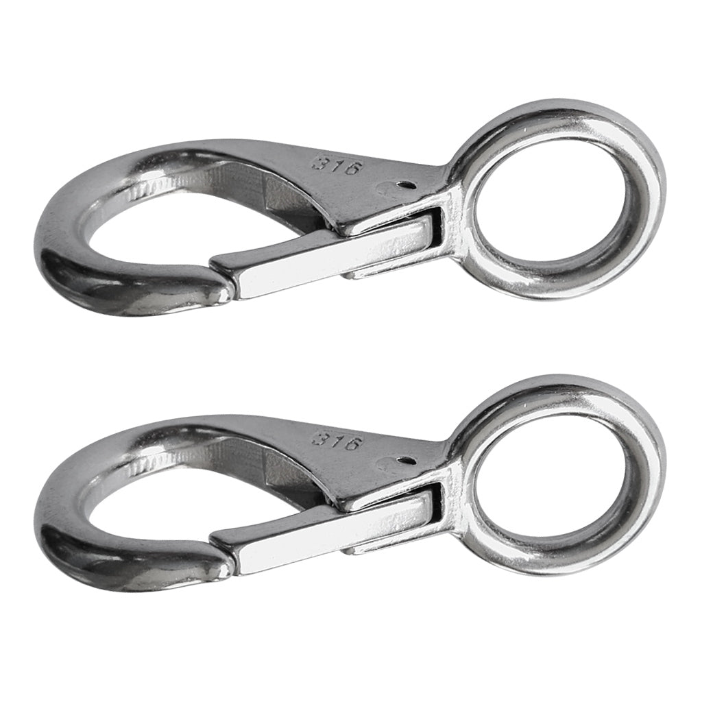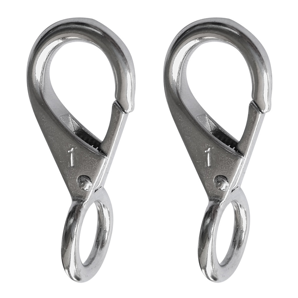 Maxbell 2 Pack 316 Stainless Steel Silver Spring Loaded Fixed Eye Snap Hook (1#) - Marine/Boat/Sailing/Shade/Sail Clip