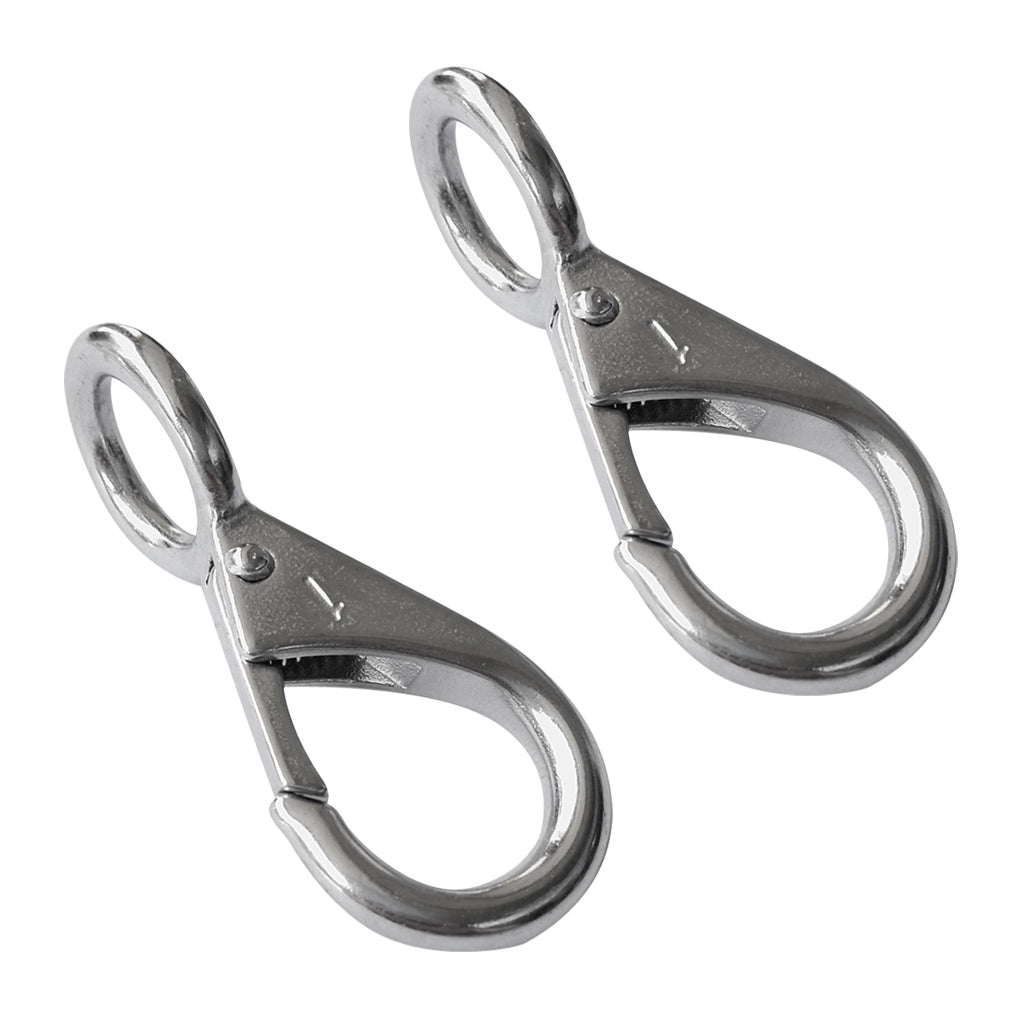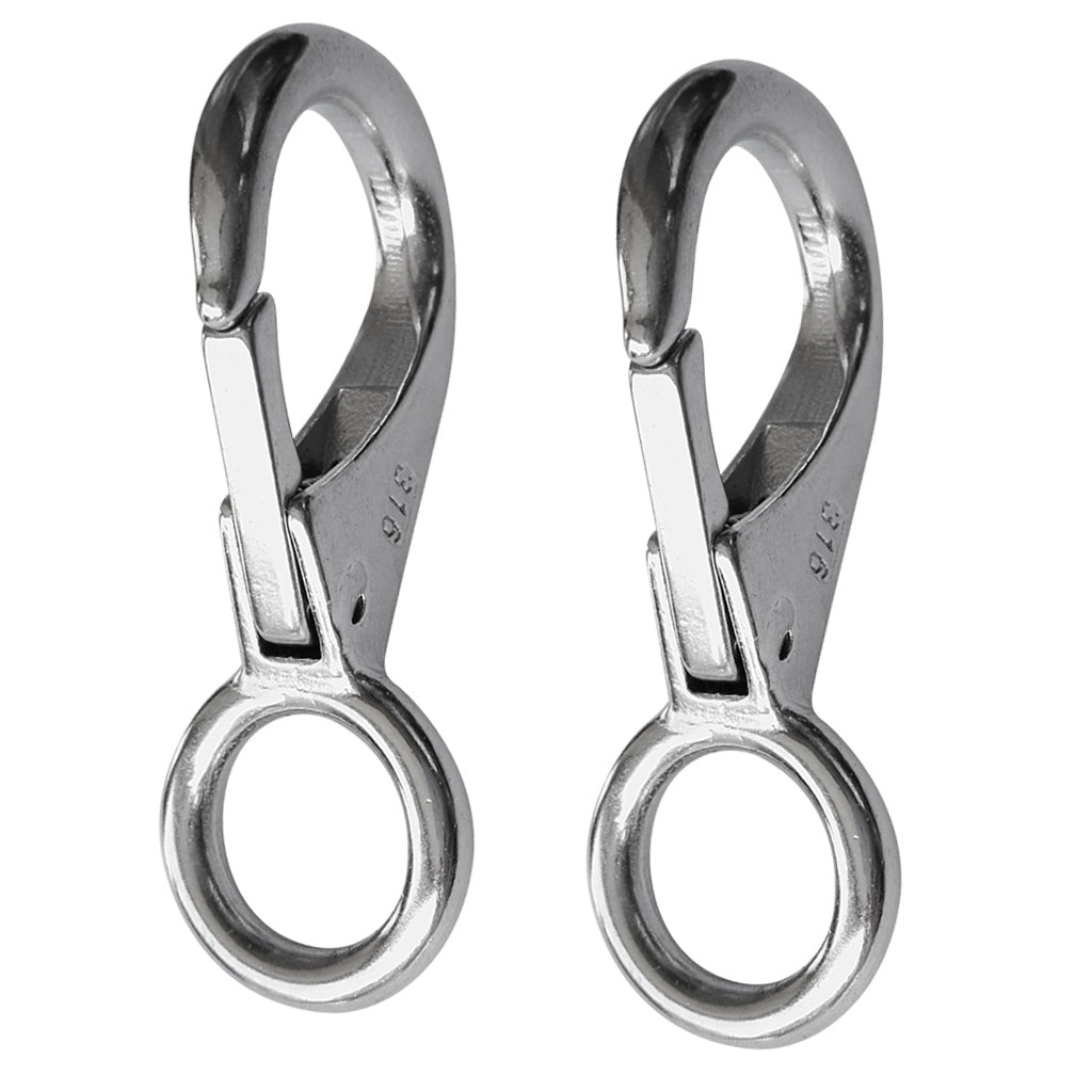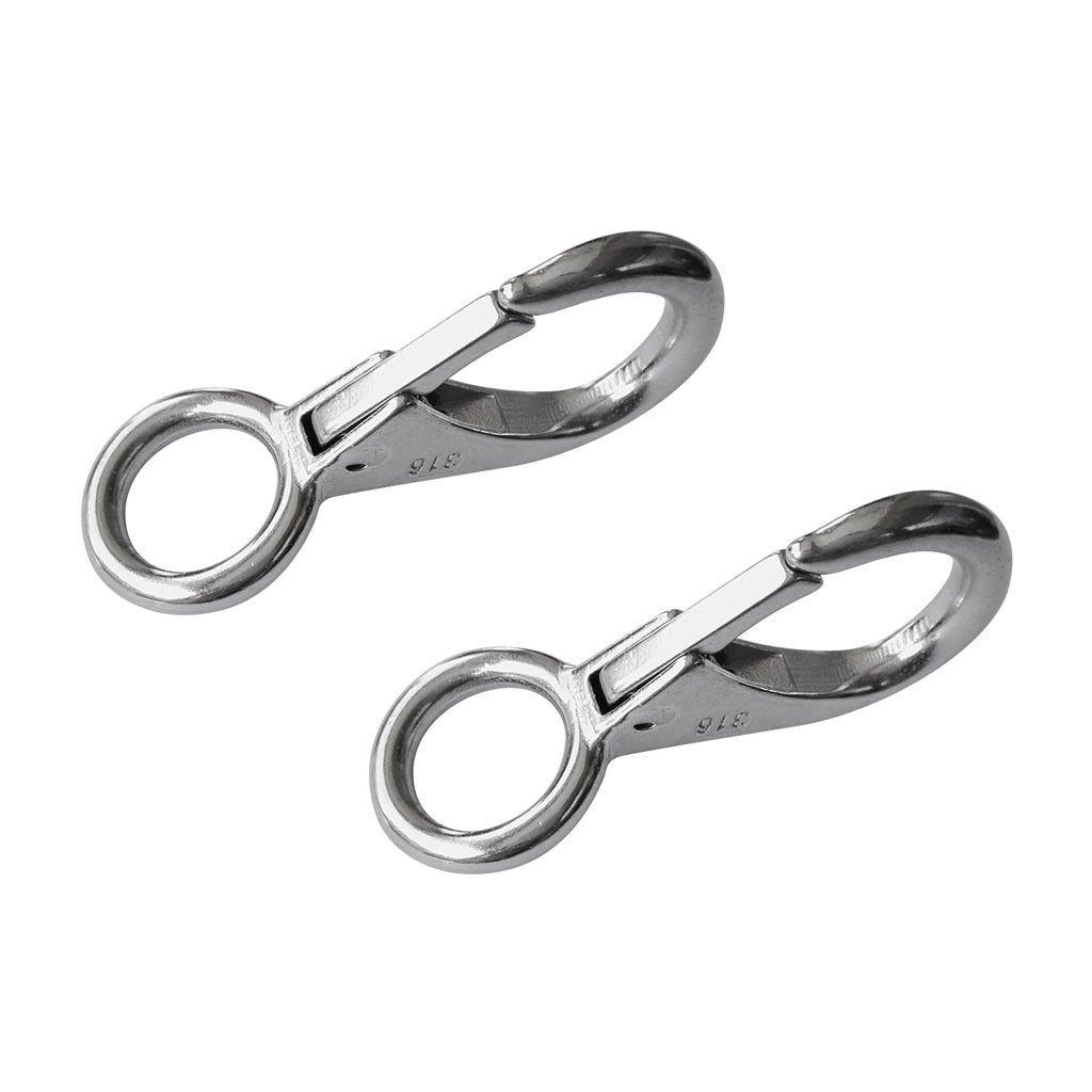 Maxbell 2 Pack 316 Stainless Steel Silver Spring Loaded Fixed Eye Snap Hook (1#) - Marine/Boat/Sailing/Shade/Sail Clip