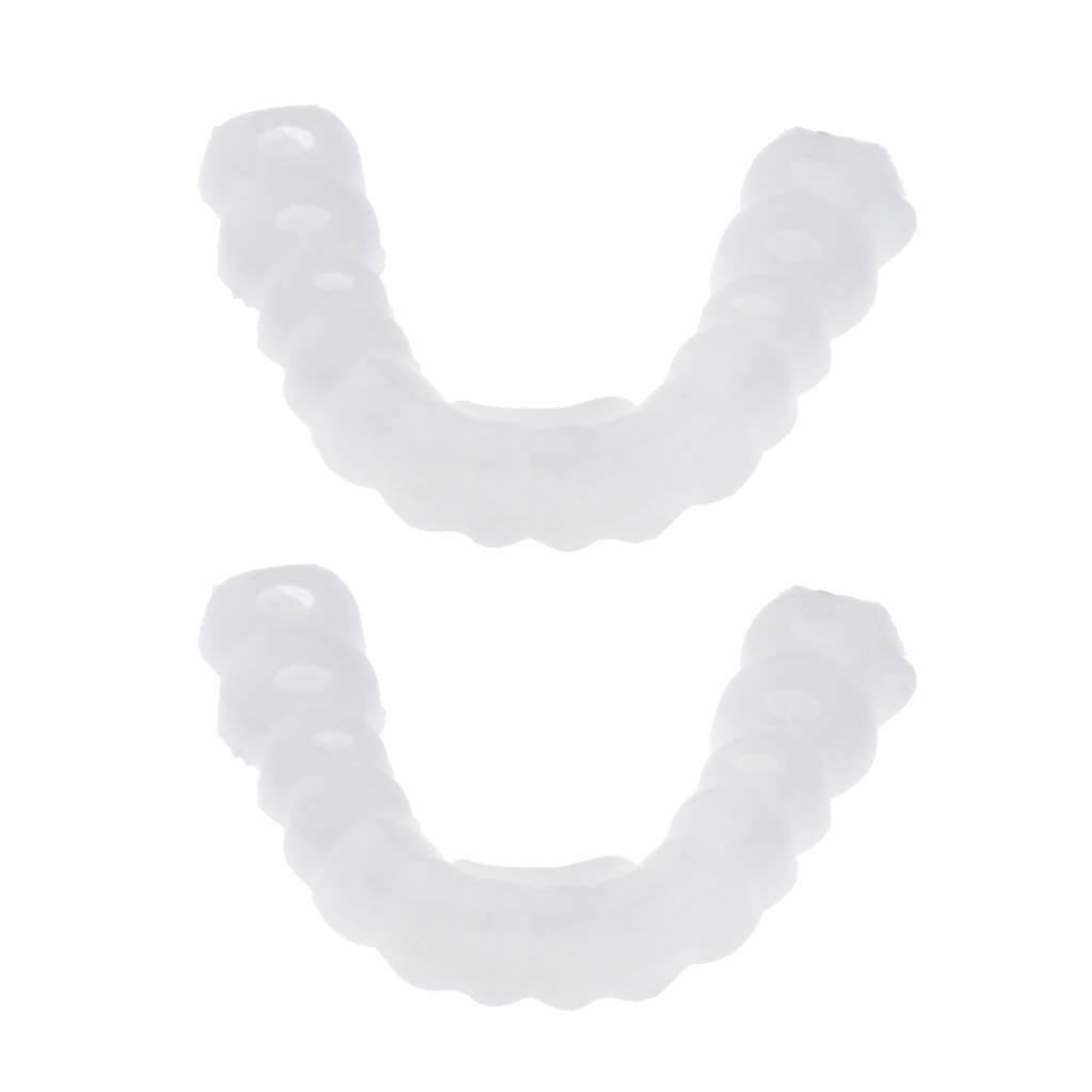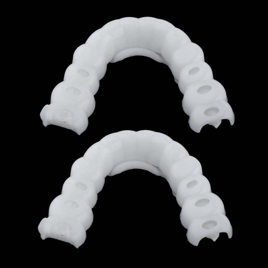 Maxbell 2 Pcs Silicone Lower False Teeth Dental Veneers Dentures Fake Tooth w/ Case
