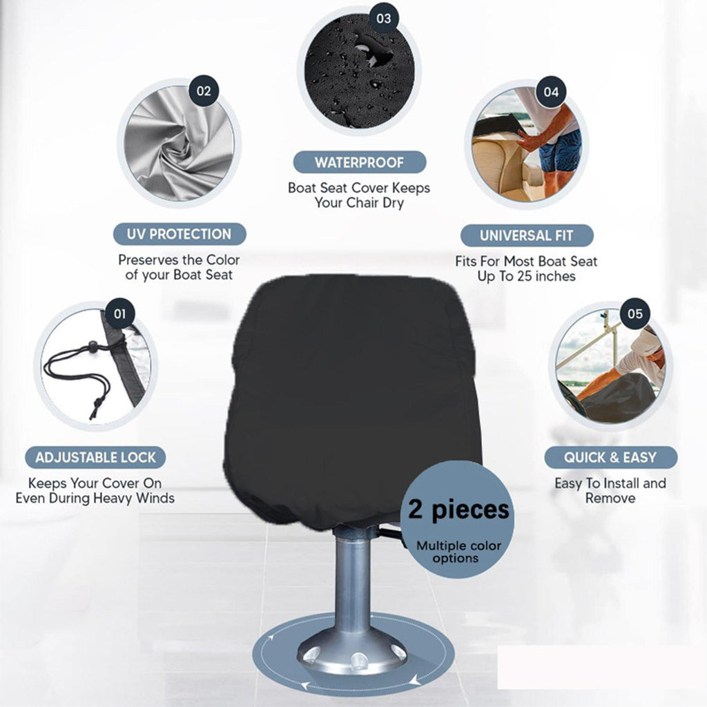 Maxbell 2 Pieces Boat Seat Covers Waterproof Easy Installation Heavy Duty Protectors Black