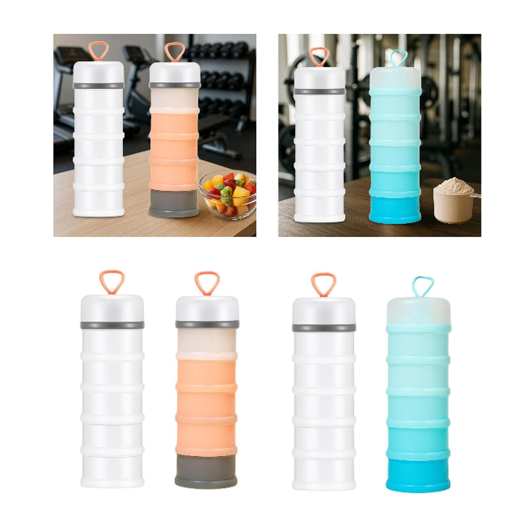 【Stackable and Space Saving Design】: This protein powder container features a stackable design with 5 compartments, offering ample capacity while maintaining a compact size. Each compartment can be individually stacked and removed, ensuring easy access without spills and accurate portion control
