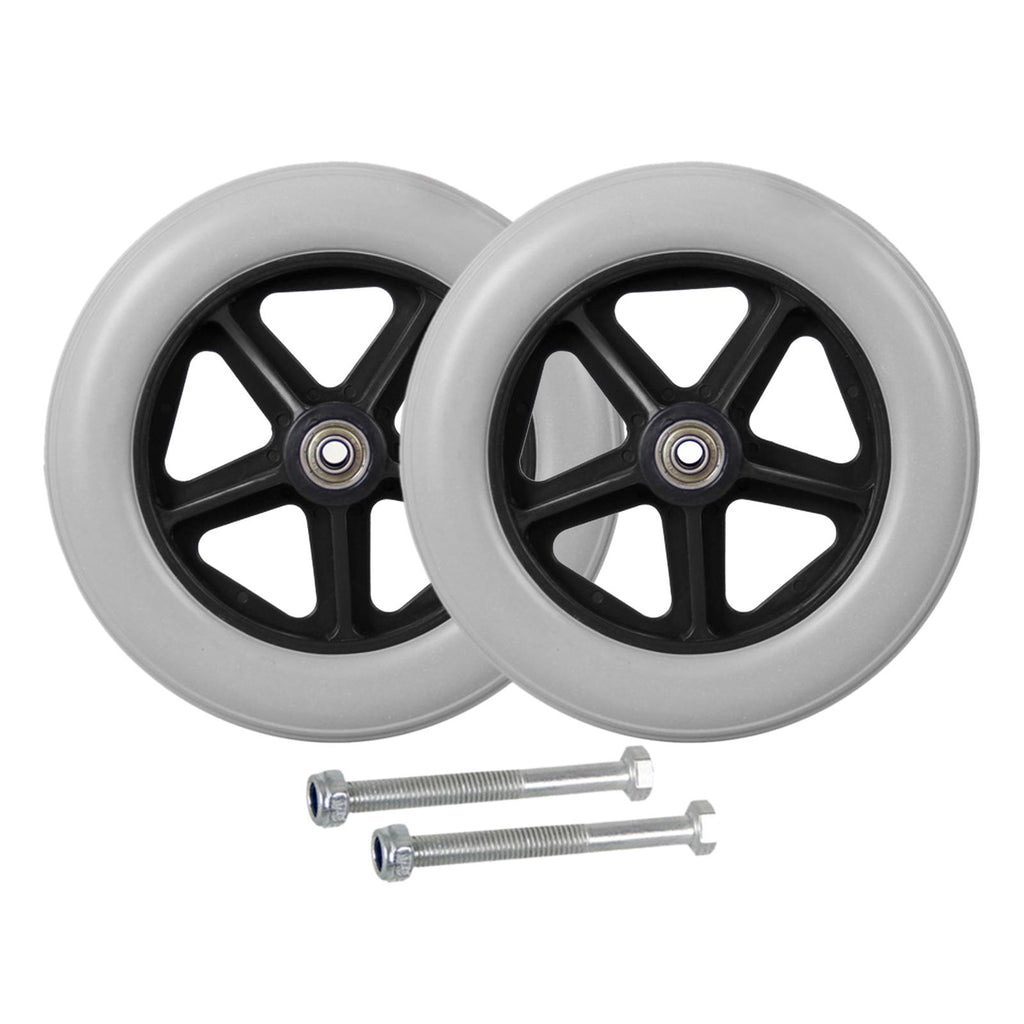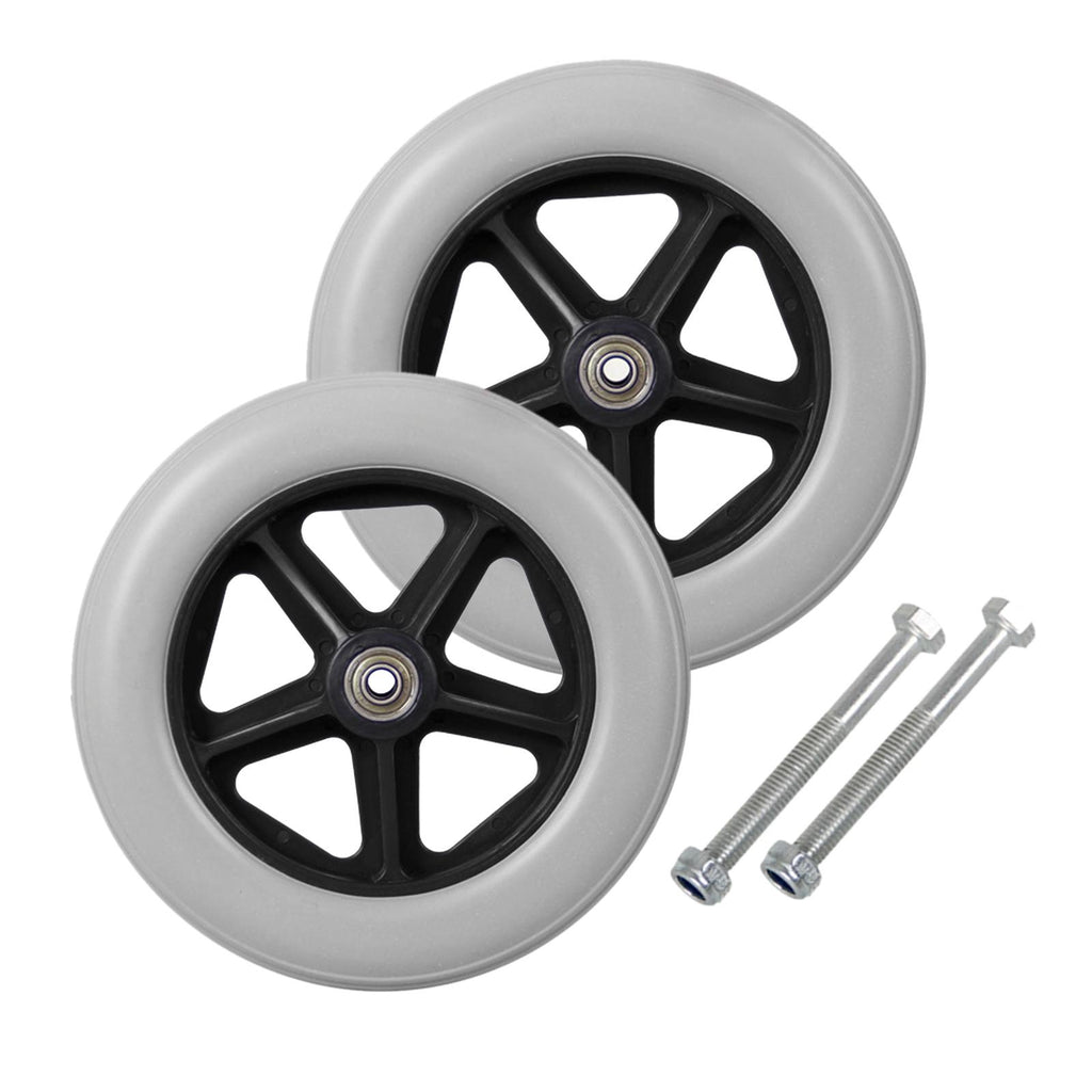 Maxbell 2 Pieces Wheelchair Replacement Wheels 8" Solid Tire for Wheelchairs Walkers Gray
