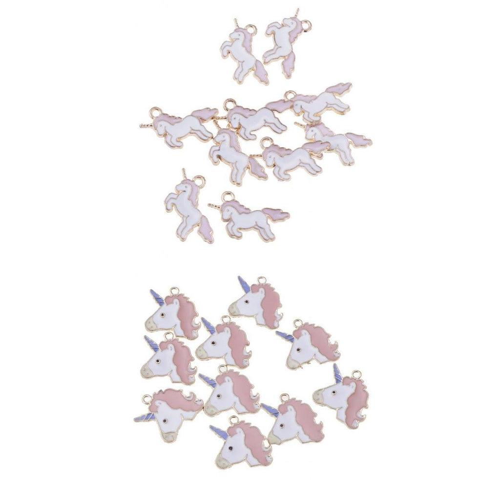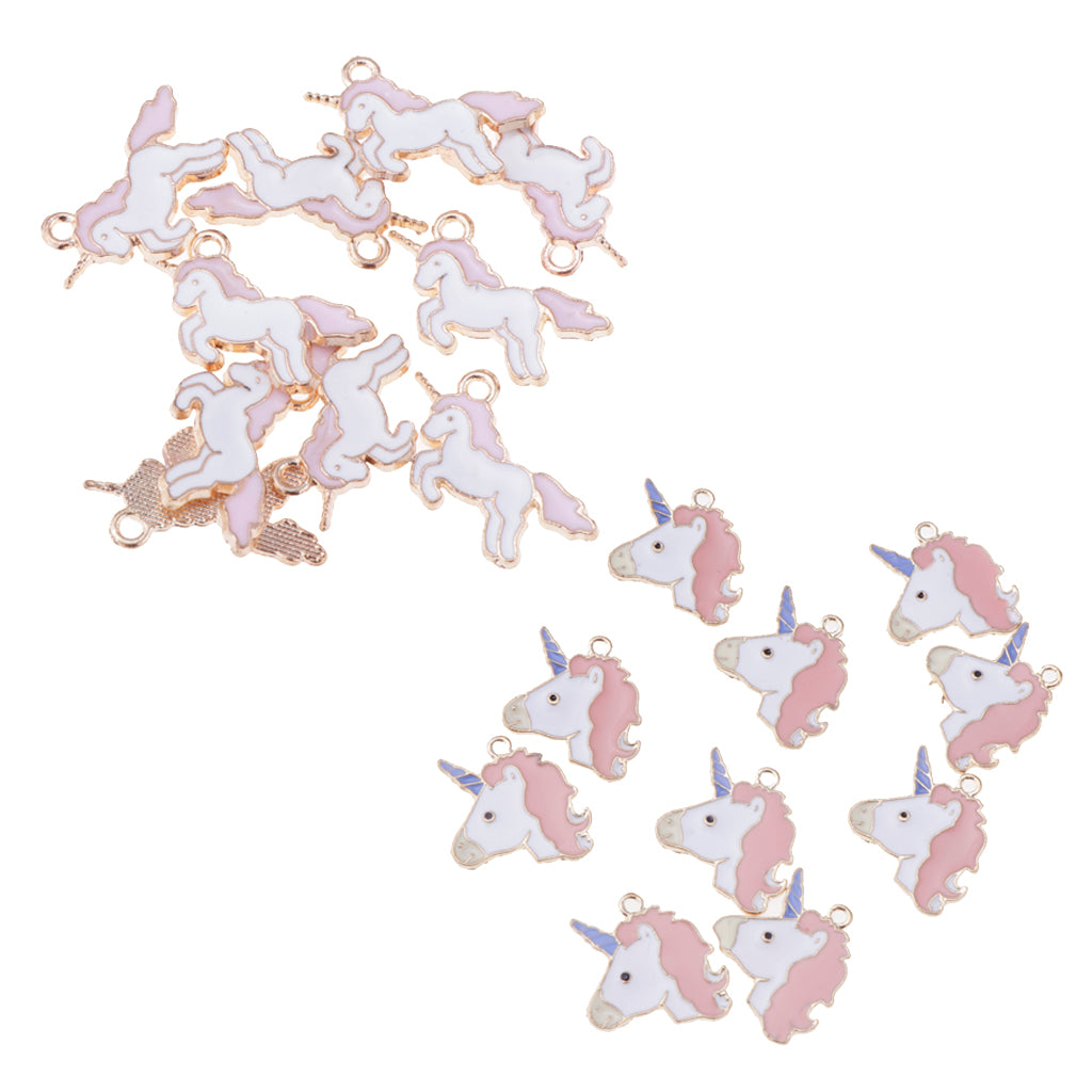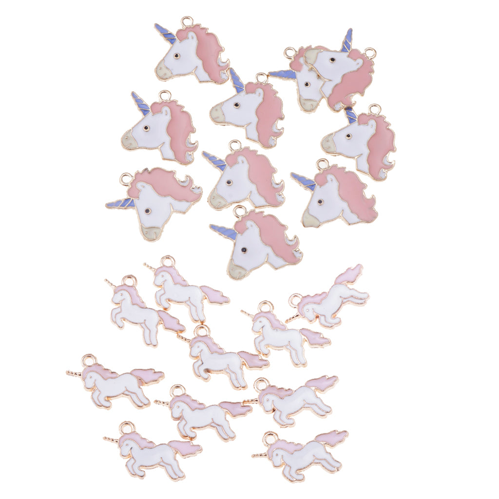 20 Pieces Unicorn Charms Pendant Findings Beads Jewelry Making Crafts Pink
