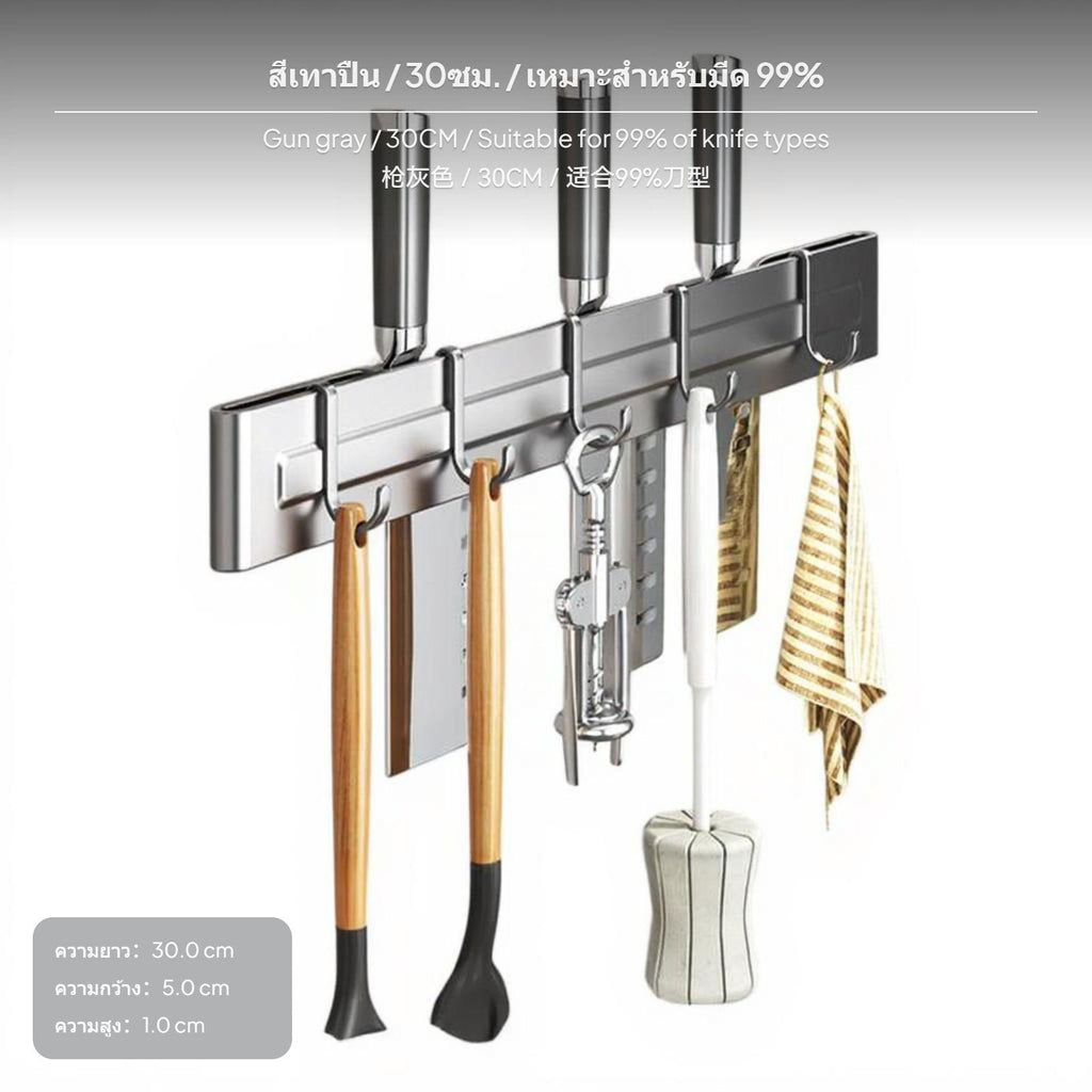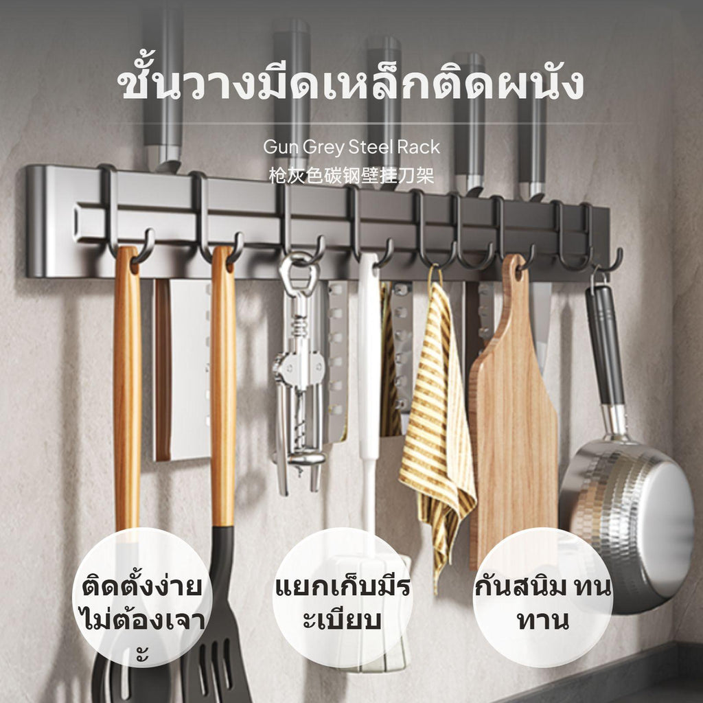 [Efficient Knife Storage Solution] This kitchen knife holder combines wall-mounted convenience, multi-functional design, and carbon steel strength, making it easy to organize knives and cutting tools while maximizing countertop space.[Space-Saving and Hygienic] Designed for space-efficient kitchens, this rack offers ventilated slots for quick water drainage, which helps maintain a clean, crisp kitchen environment and prevents microbial growth and moisture build-up.[Simple No-Drill Installation] With a usereasy-to-use mounting system, this organizer provides a stable-hold without damaging your walls, supporting quick setup and stable storage for various utensils.[Adaptable to Multiple Needs] Featuring integrated knife slots and optional removable holders, this rack accommodates chef knives, fruit knives, spatulas, cutting boards, and towels, making it perfect for different kitchen settings.[Sturdy and dependable Material] Constructed from thickened carbon steel with anti-rust and moisture-resistant properties, available in timeless black and charcoal gray hues and four size choices (20CM, 30CM, 40CM, 50CM) to suit any home kitchen.