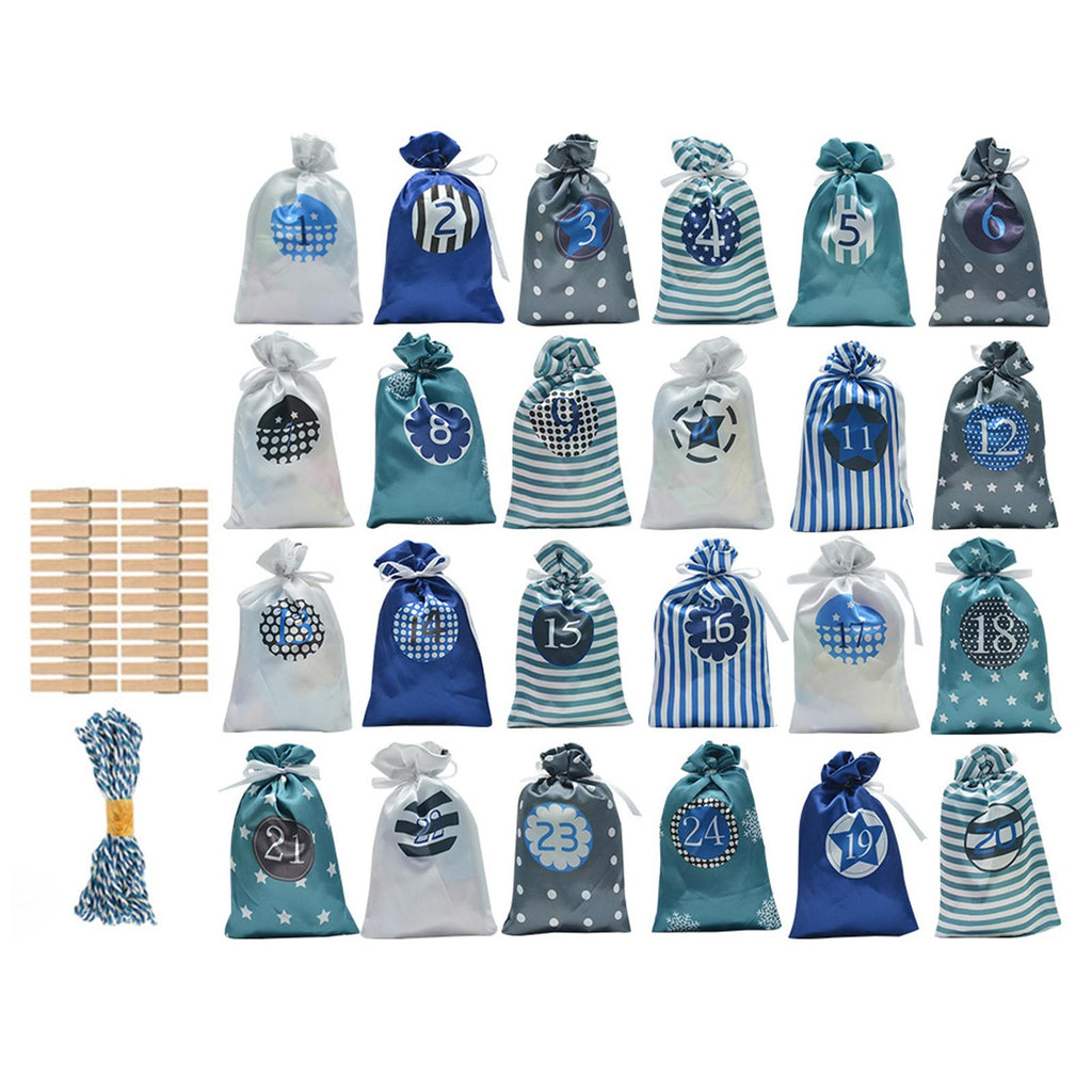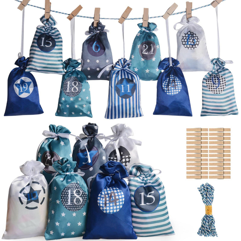 Maxbell 24Pcs Xmas Advent Calendar Bag Candy Fill Sacks Wall Decoration for Festival
