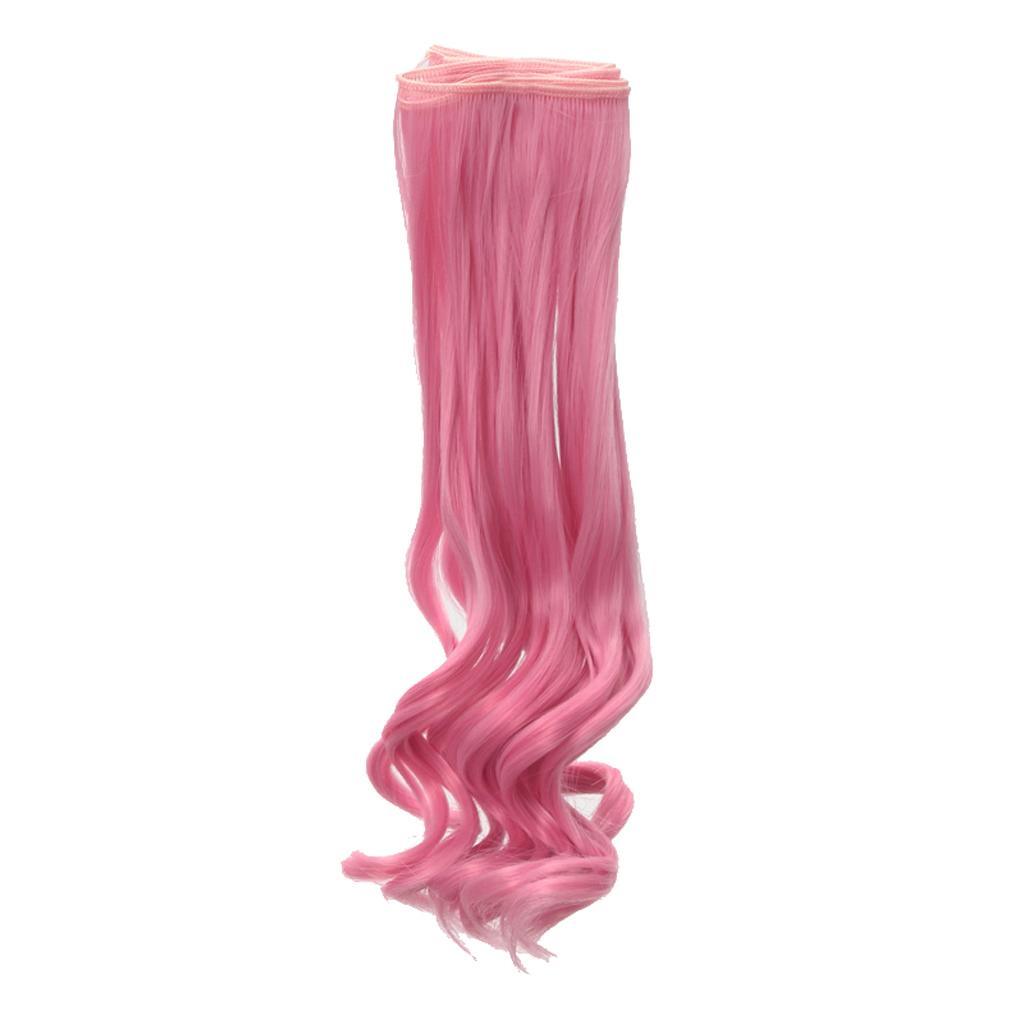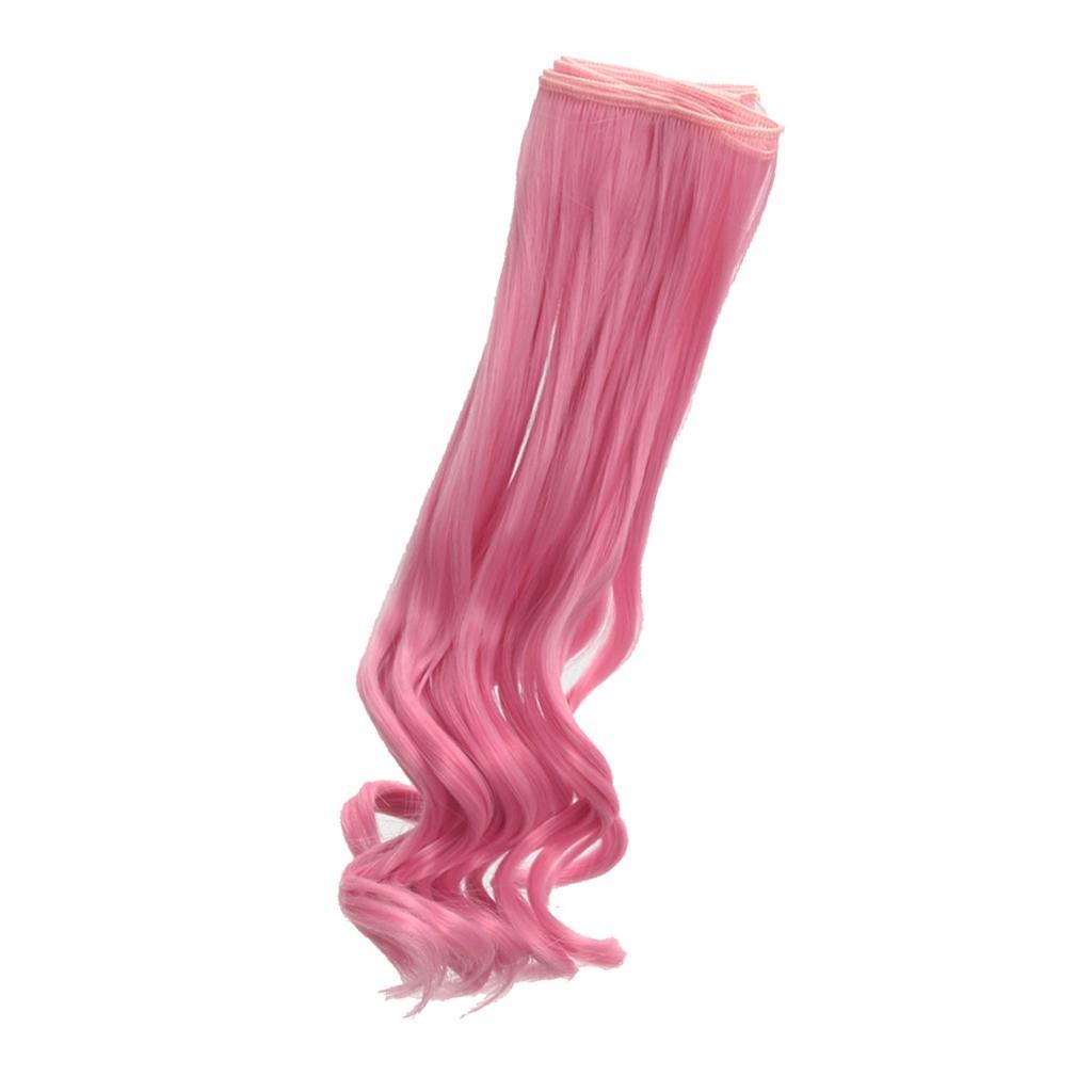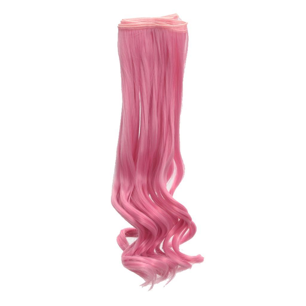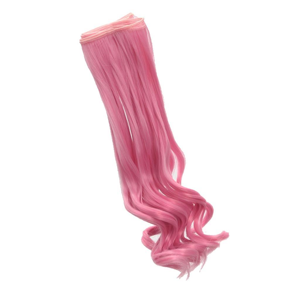 Maxbell 25cm Fashion Girl Doll Wig Long Curly Hairpiece DIY Making Accessory Pink