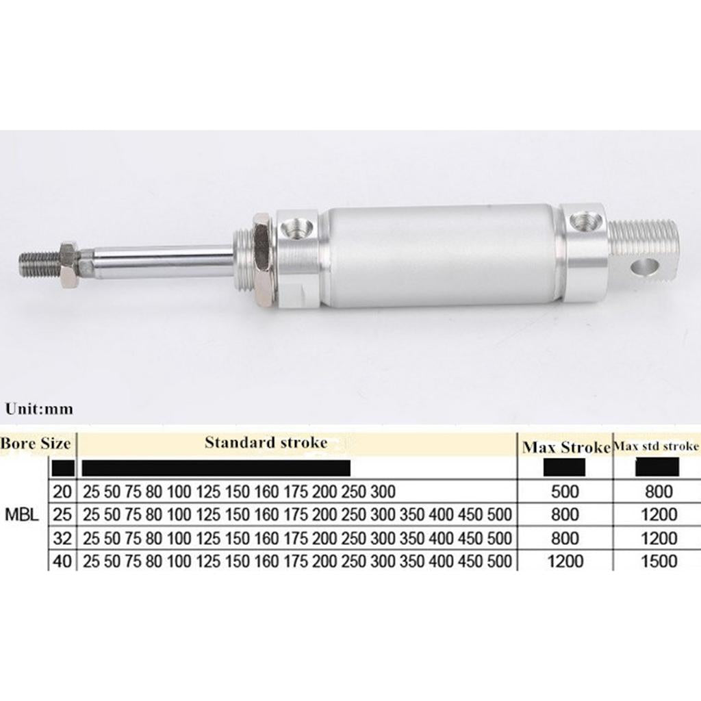 Max 25mm Bore 25-300mm Stroke Mini Pneumatic Air Cylinder 300mm Stroke