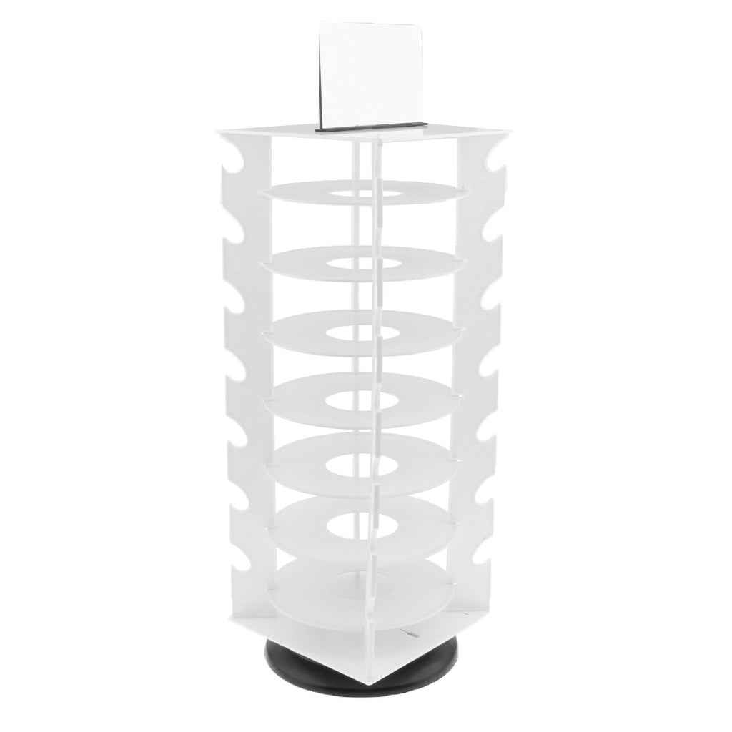 Made of clear arcrylic, can hold 28 pairs of glasses, 360 degree rotating
