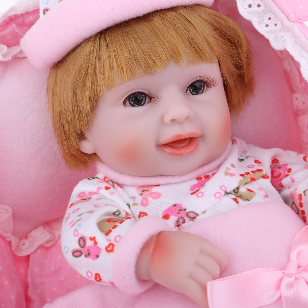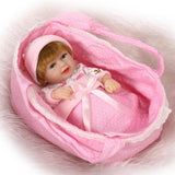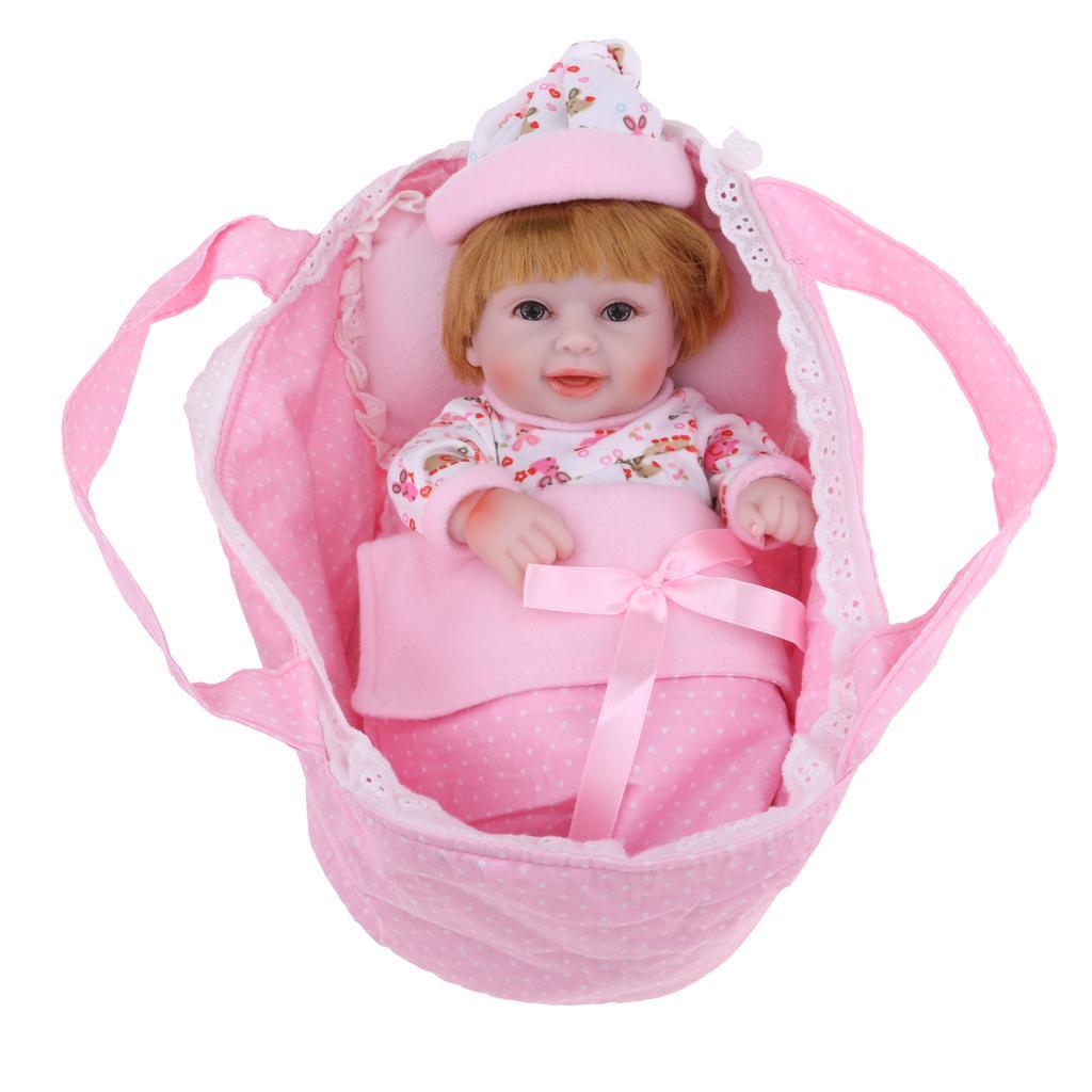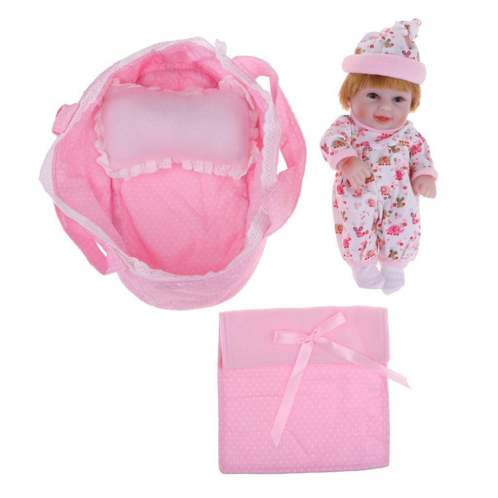 28cm 11inch eco-friendly soft silicon baby girl doll simulation newborn baby with clothes & sleeping bag(or cradle) & pillow & quilt