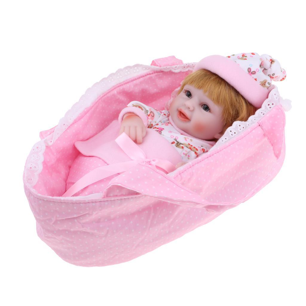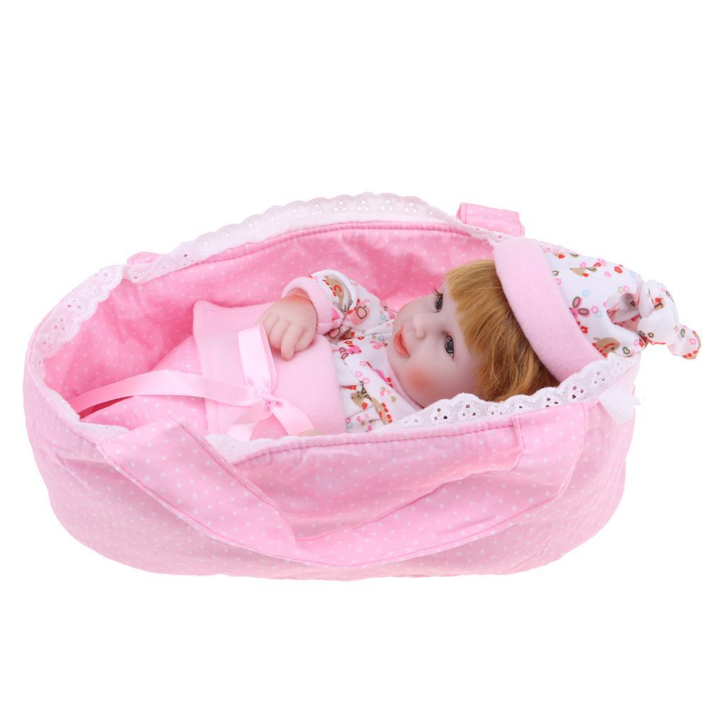 Maxbell 28cm 11inch Nicery Newborn Baby Girl Doll with Sleeping Bag/ Cradle Pink