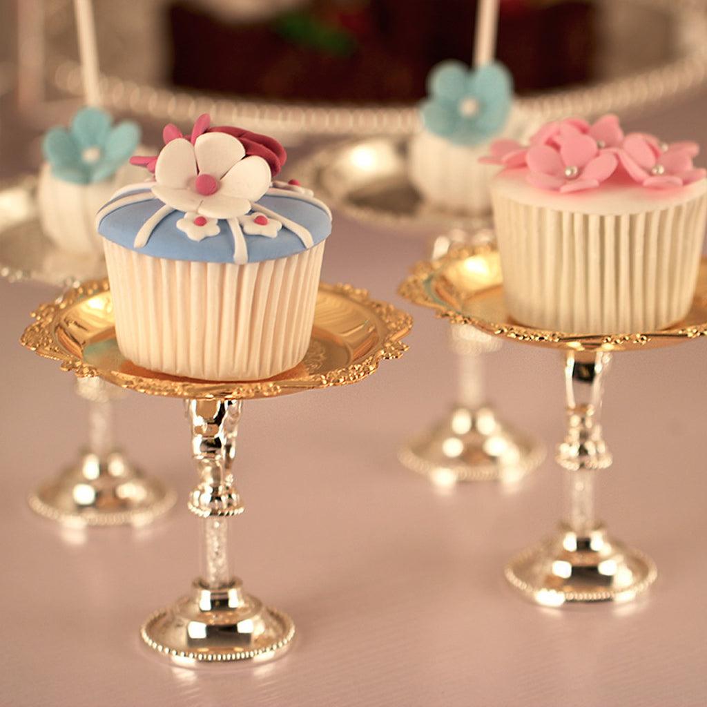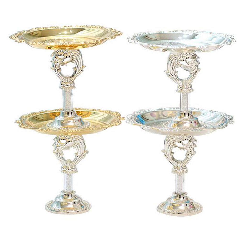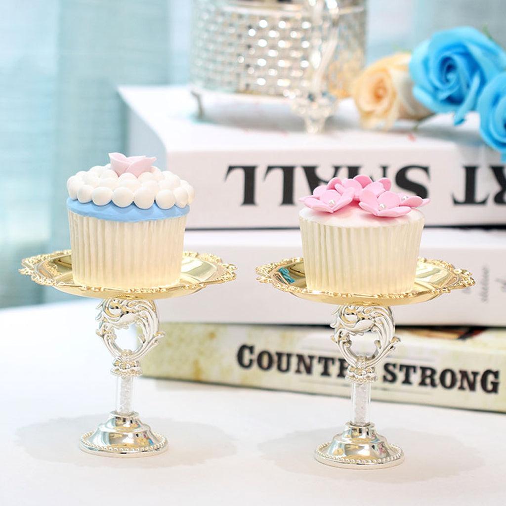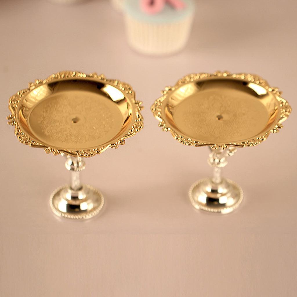 Maxbell 2pcs Cupcake Stand Metal Cake Stand Plate Tray Wedding Ornament Gold