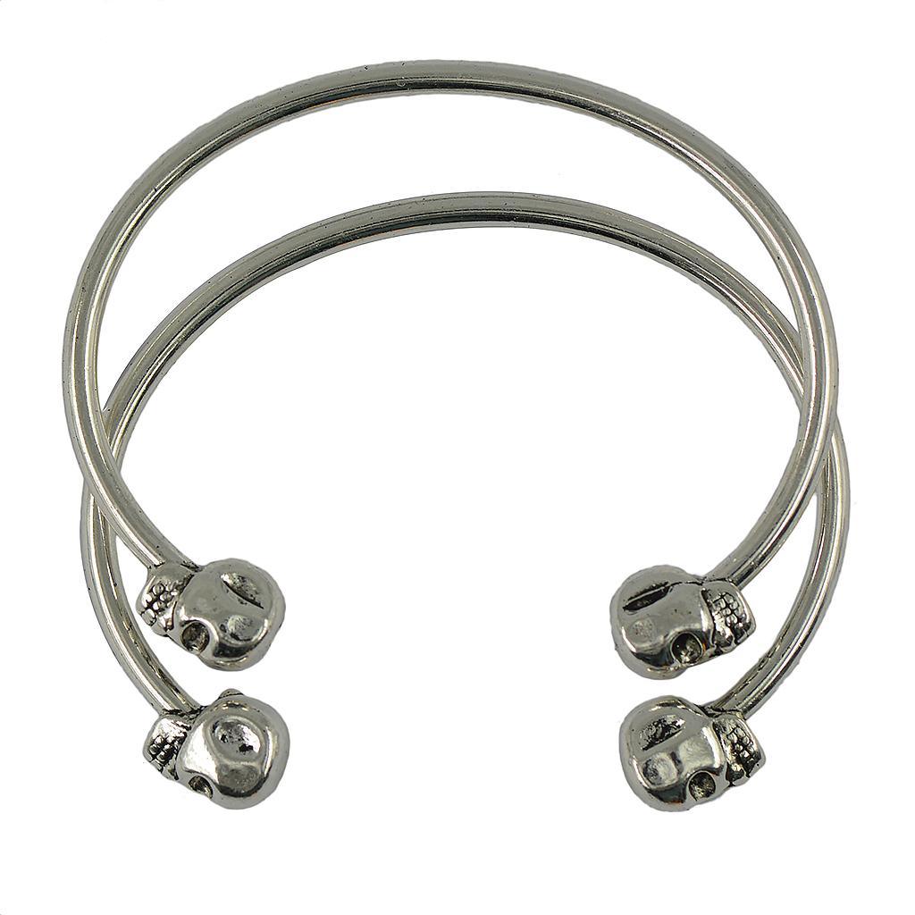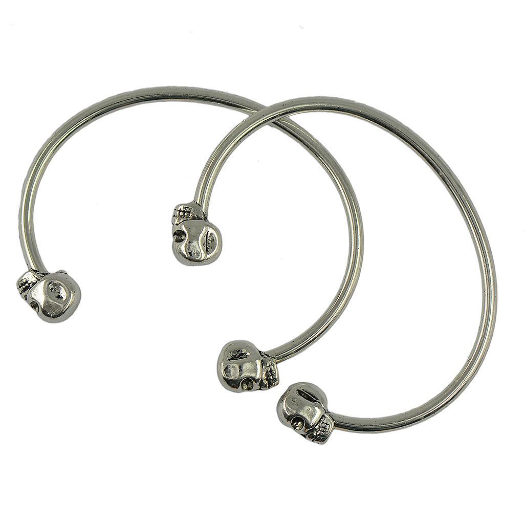 Maxbell Maxbell 2pcs Mens Skull Head Blank Base Settings Open Bracelet Cuff Tibetan Silver