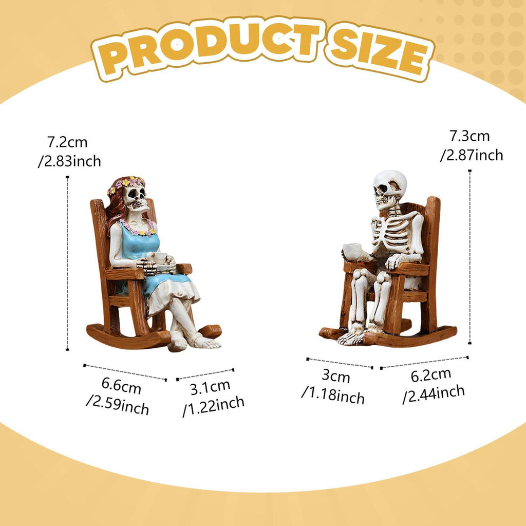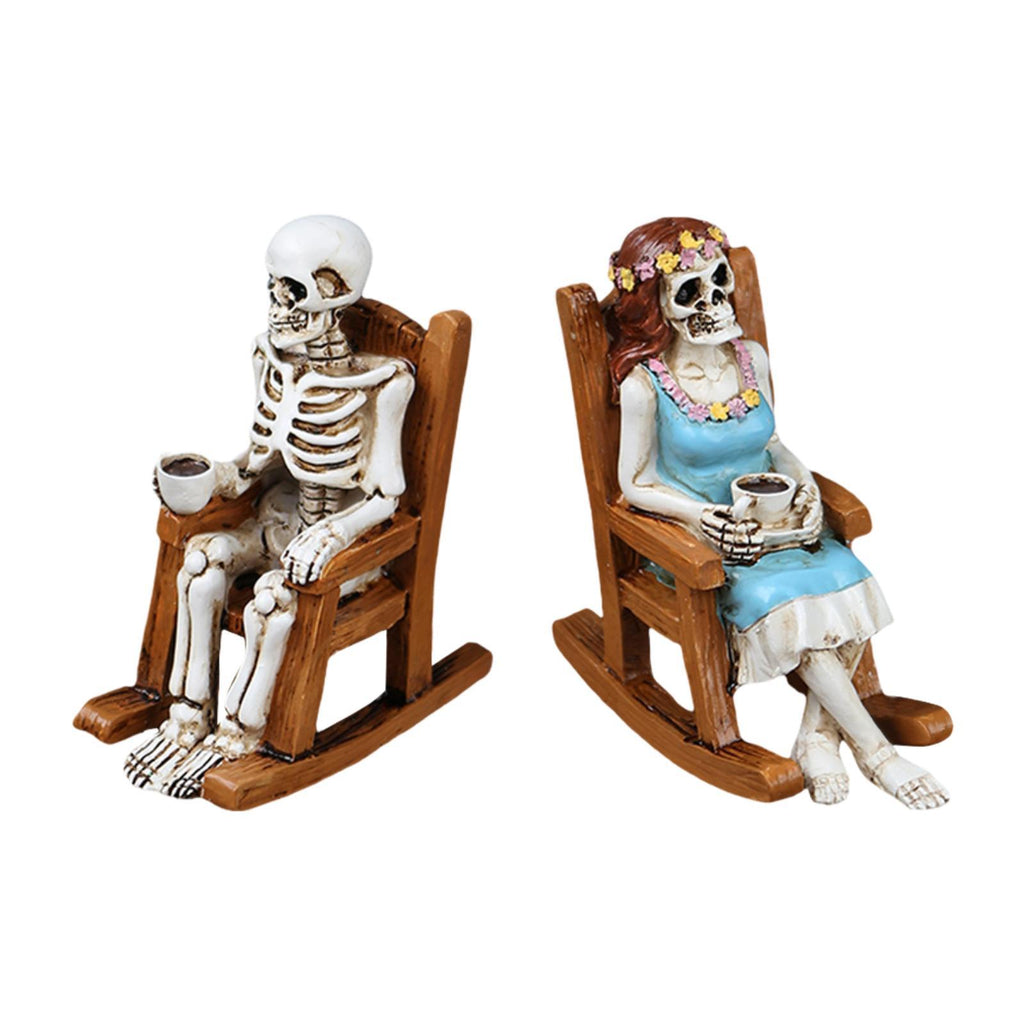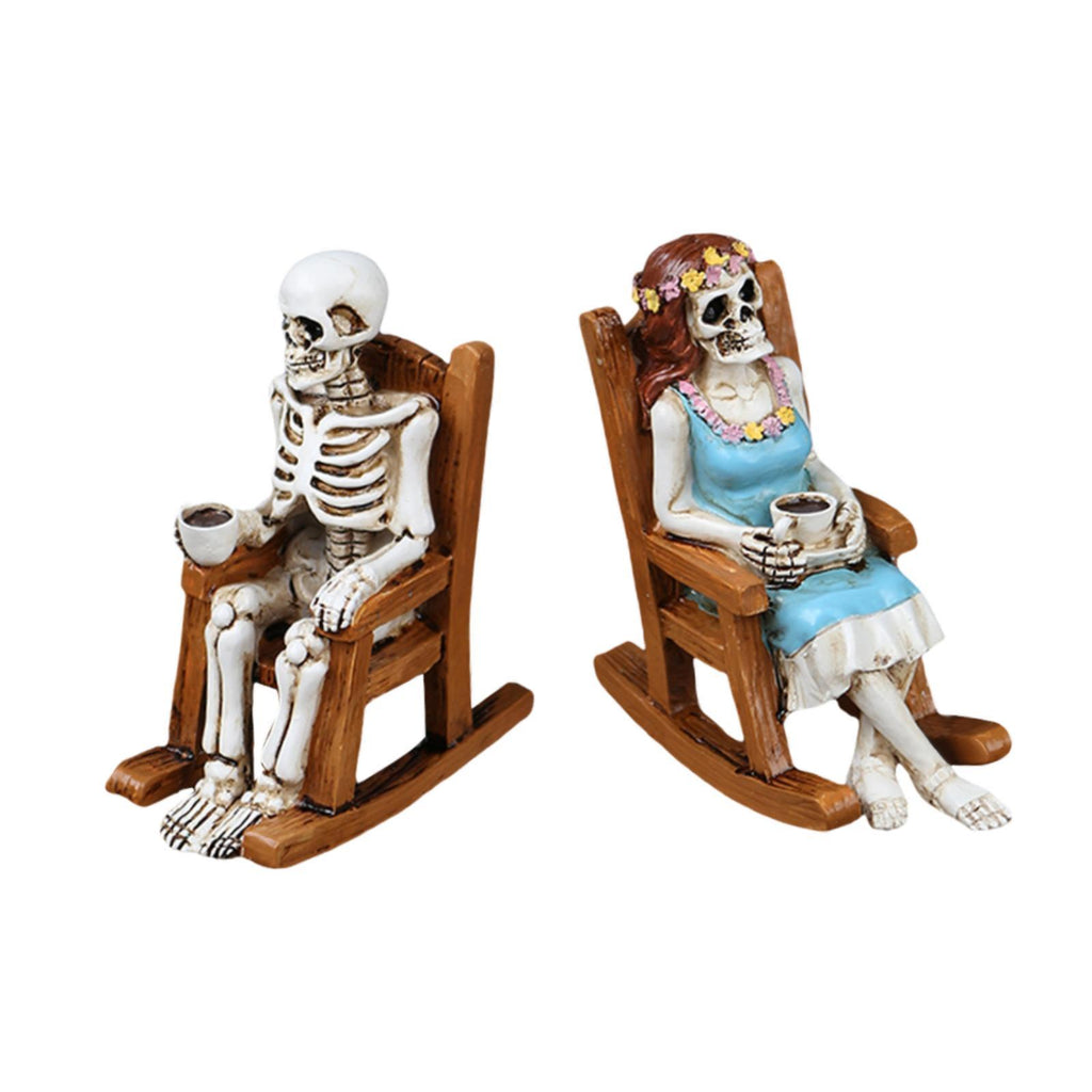 Maxbell 2Pcs Rocking Chair Skeleton Figurines Halloween Decor for Cabinet Shelf Desk