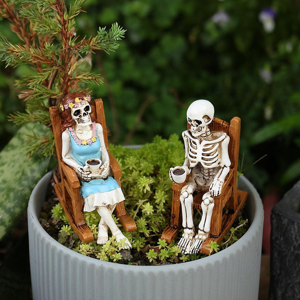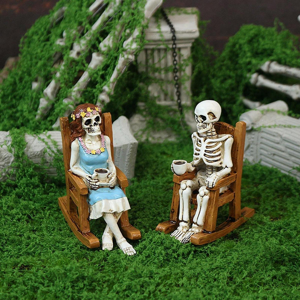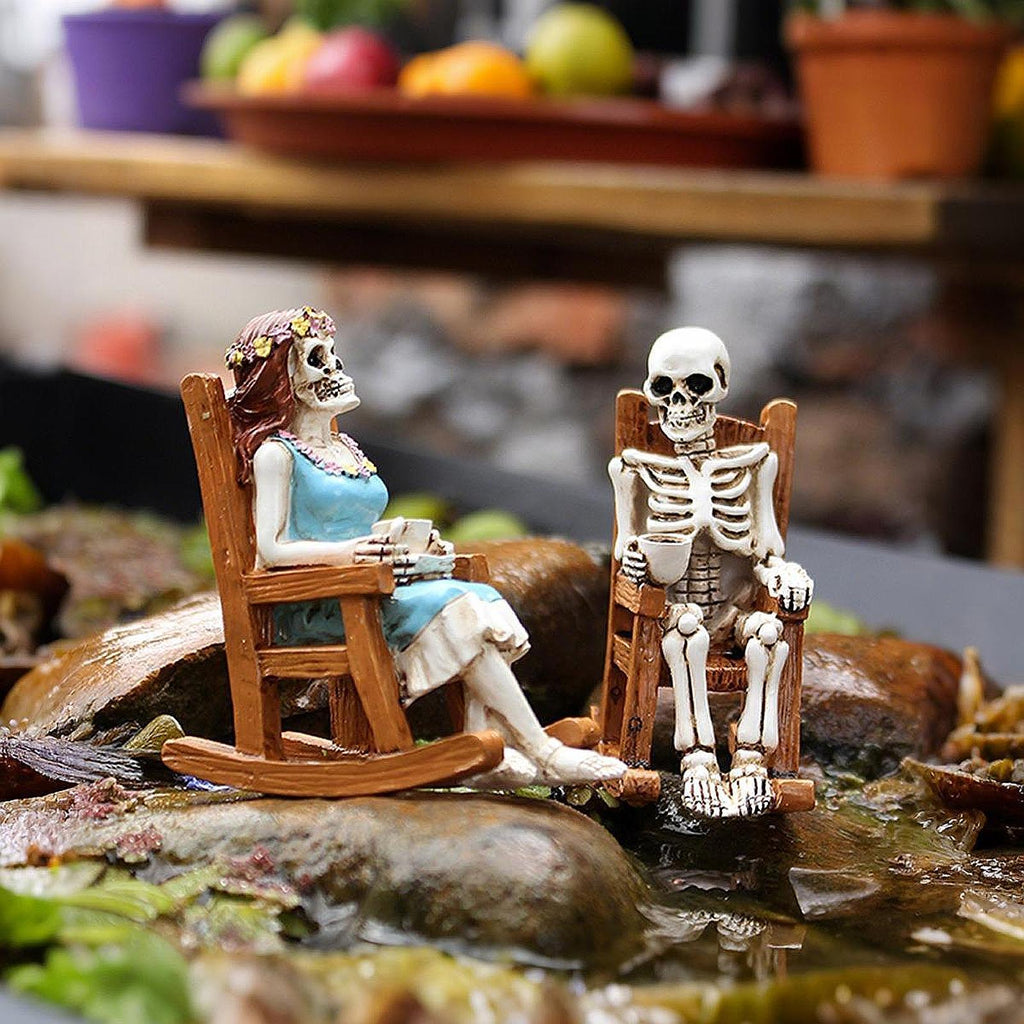 Maxbell 2Pcs Rocking Chair Skeleton Figurines Halloween Decor for Cabinet Shelf Desk