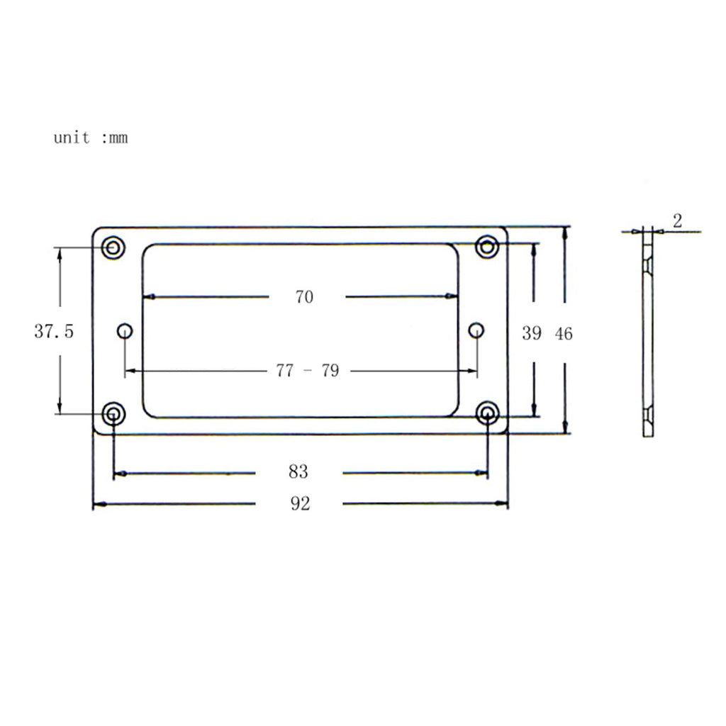 Dimensions: Outside(LxW): 92x46mm/3.62x1.81inch, Mounting Screws Distance(LxW): 83x37.5mm/3.27x1.48inch, Neck & Bridge Ring Height: 2mm/0.08inch. Please check the parameter drawing in the attached pics before placing your order.