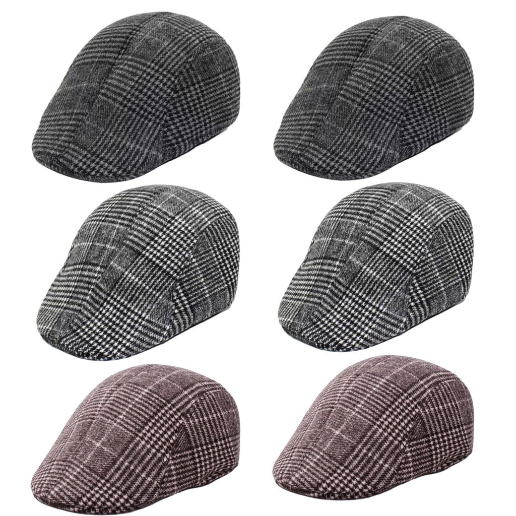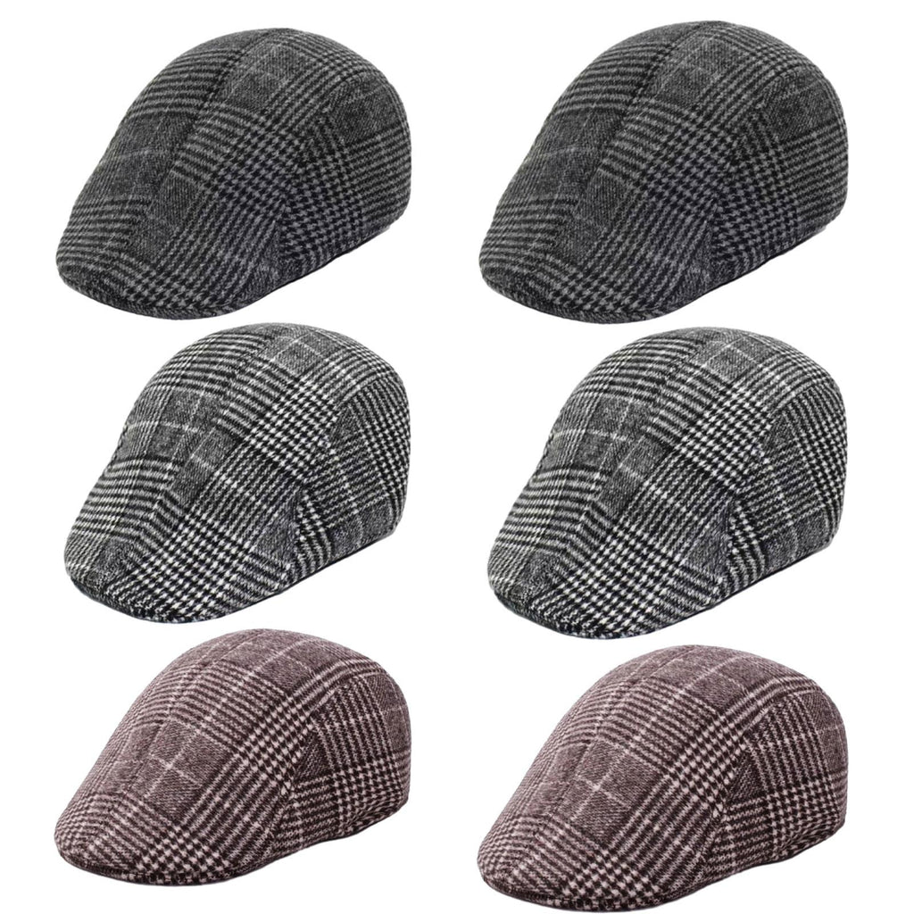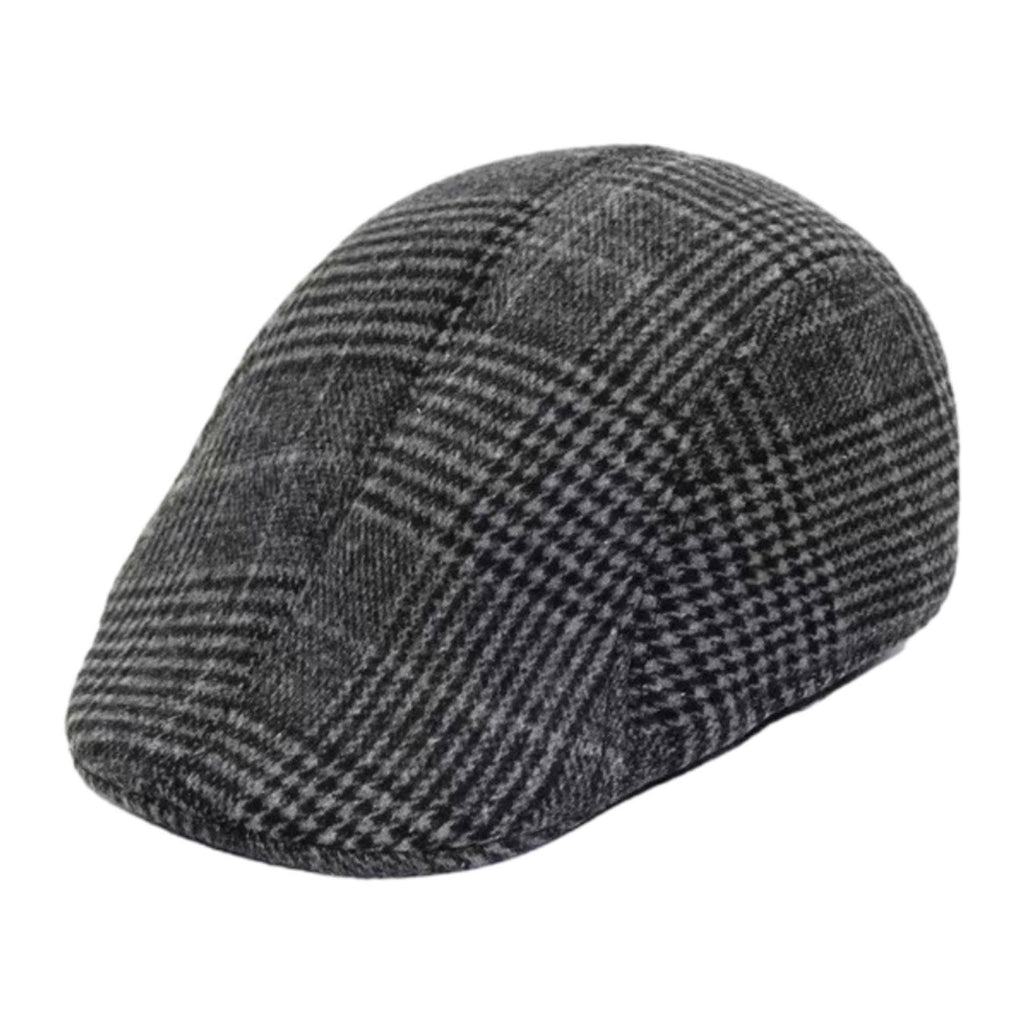 Maxbell 2xBeret Hat Autumn Winter Classic Plaid Flat Cap for Outdoor Driving Traveling Dark Gray Adult