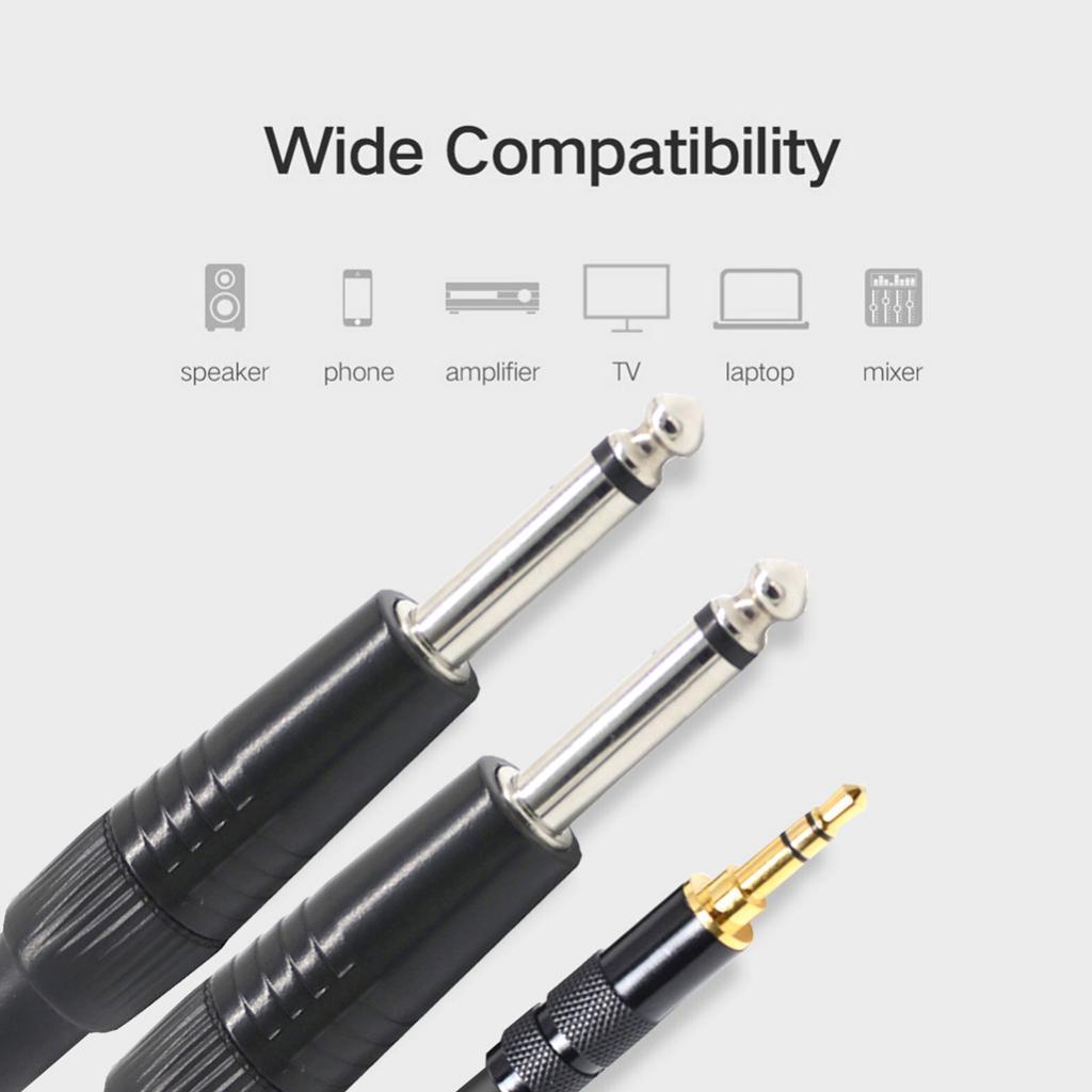 Application: perfect for connecting your laptop or PC with a jack speaker output to a device with 2 x 6.35mm jack inputs - e.g. mixing desk. It is also suitable for some owners who want to listen to music more often with a mobile phone,The jack is easily plugged into the phone. You do not need to remove the case of your phone/tablet.