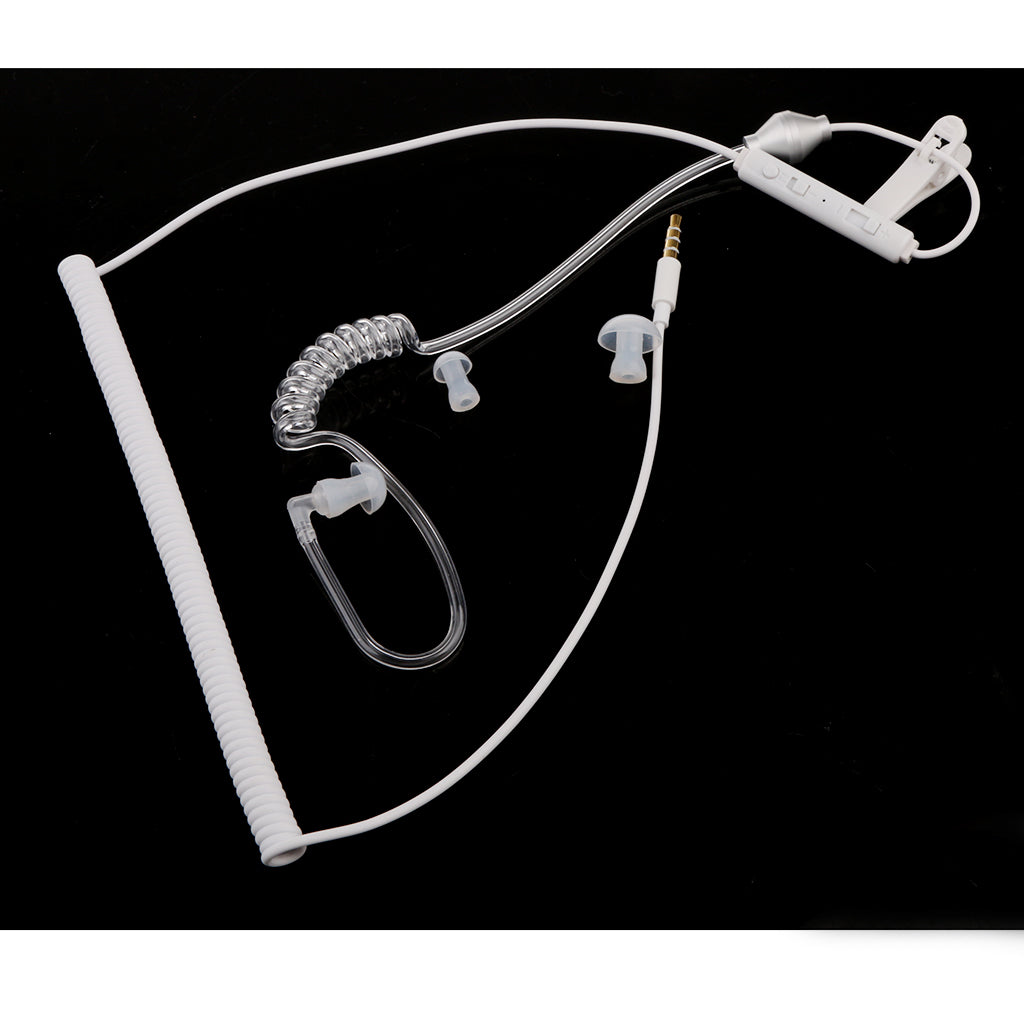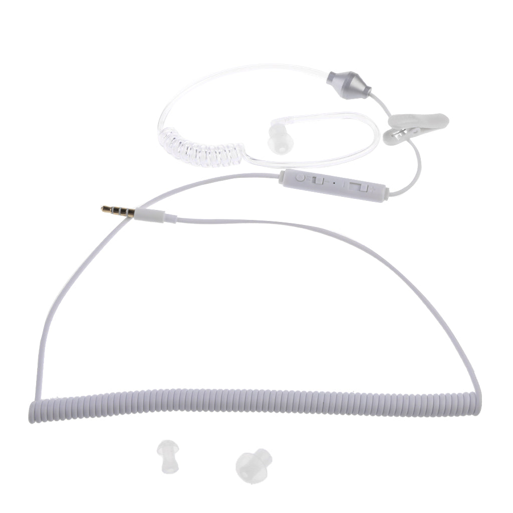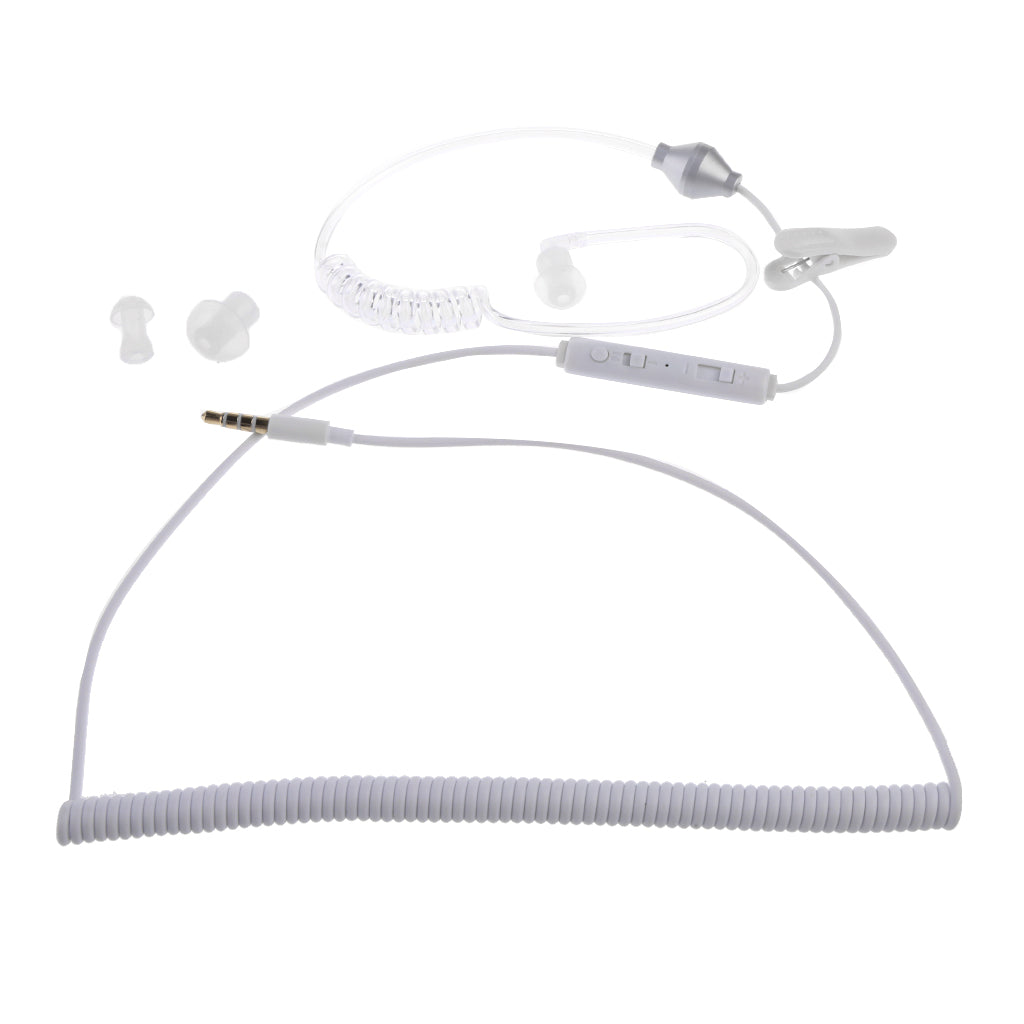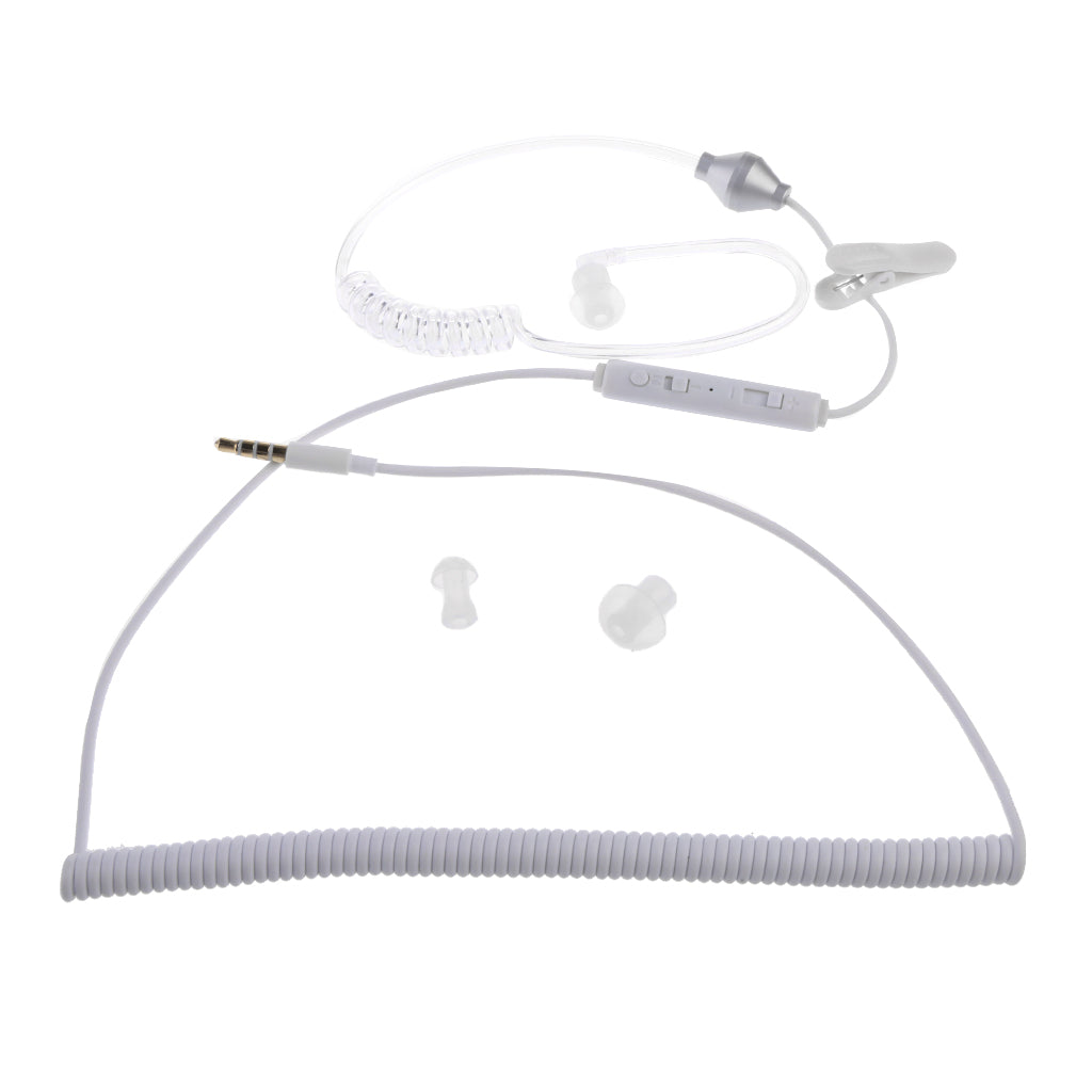 Maxbell Maxbell 3.5mm Air Tube Stereo Wired Anti-radiation Earpiece, Single In-Ear Vacuum Spiral Conduit Earbuds Earphone with Microphone & Volume Control for iPhone Samsung MP3 Tablet PC White