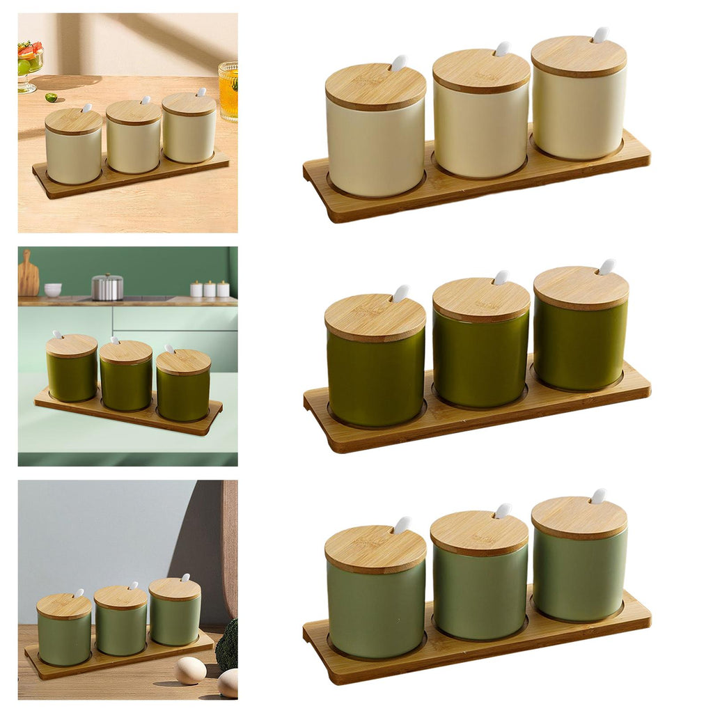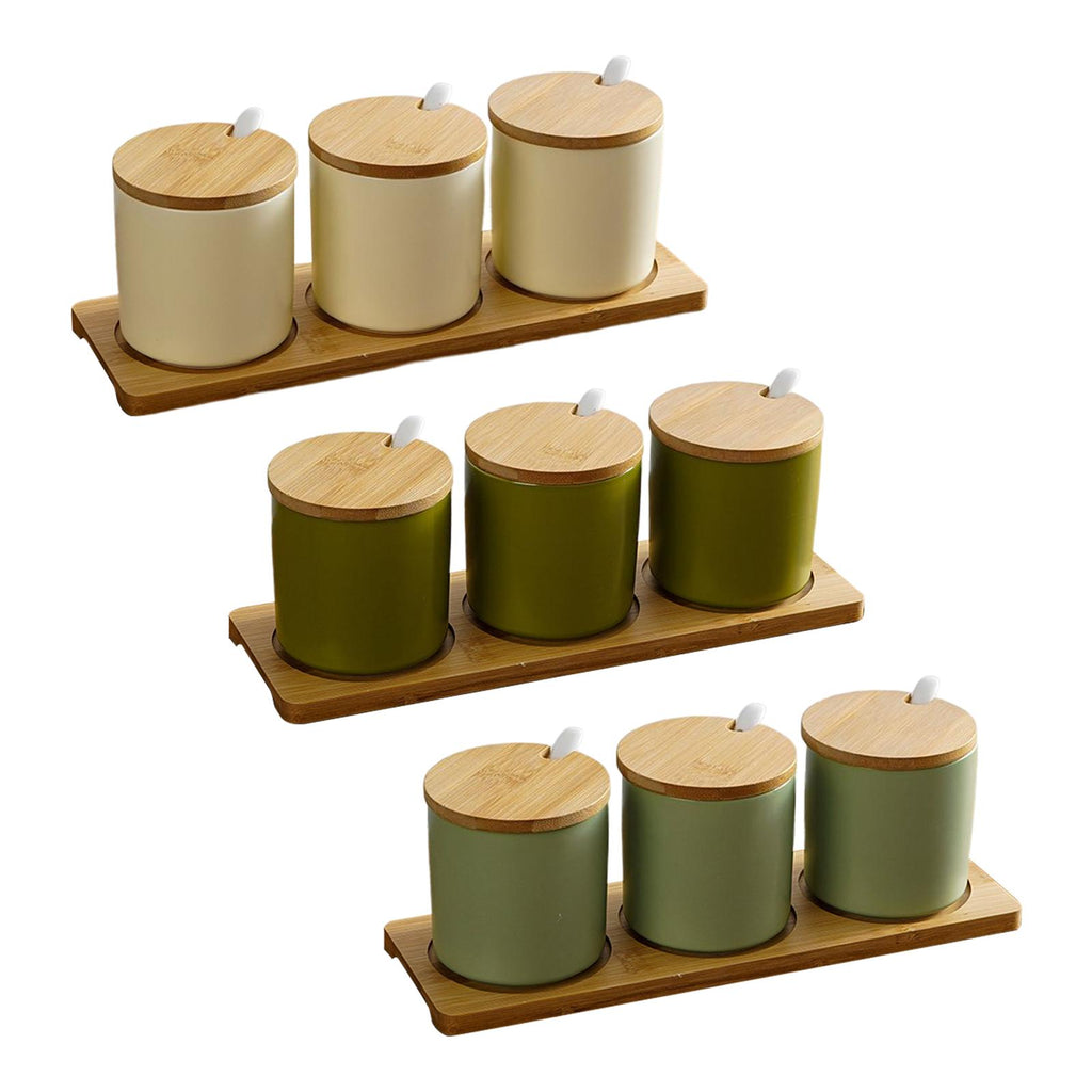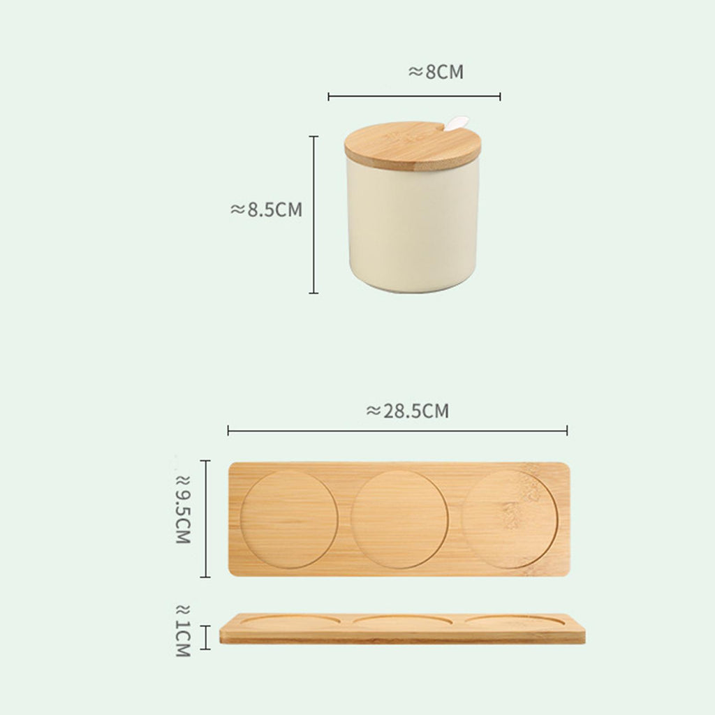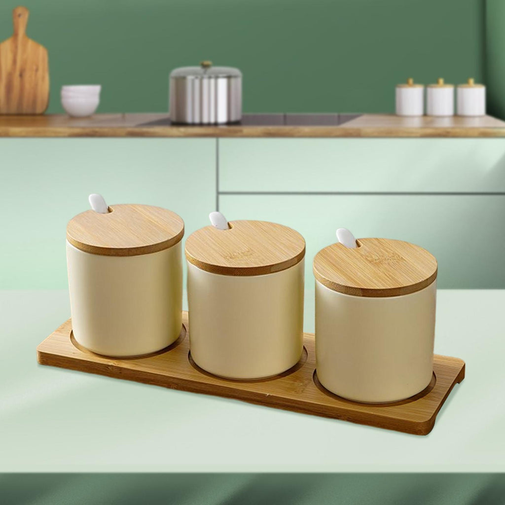 Packaging Details: condiment canisters pots include 3 ceramic jars, spoons and lids, a tray and some blank stickers