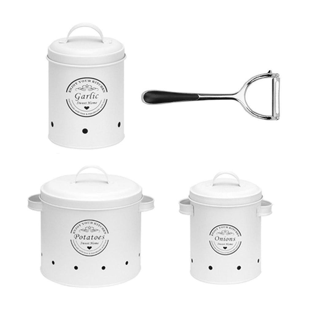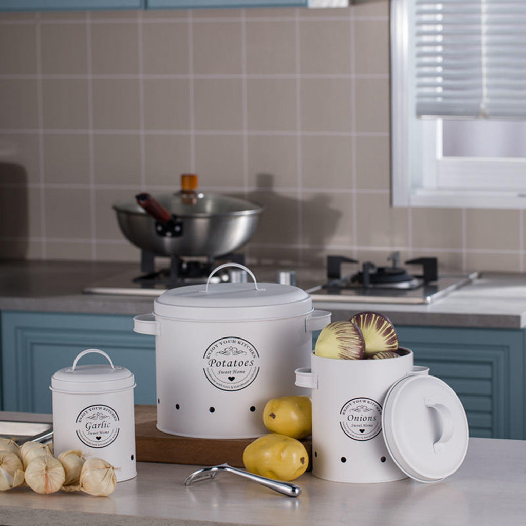 Maxbell 3 Pieces Potato Onion Garlic Canister Set Garlic Keeper Jars for Restaurant White