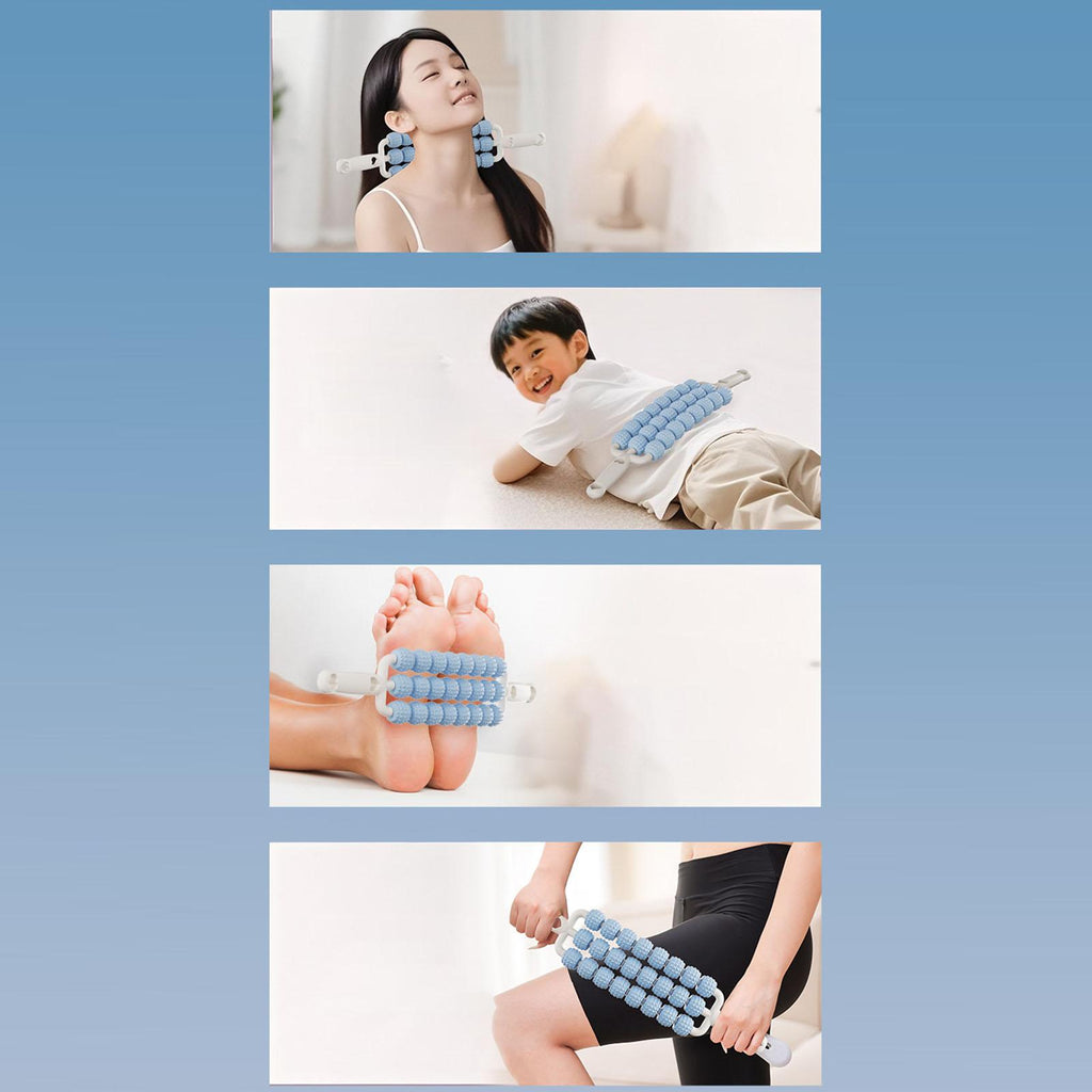 Maxbell 3 Row Roller Massage Stick Tool Calf Rolling Massager for Body Thigh Abdomen Blue