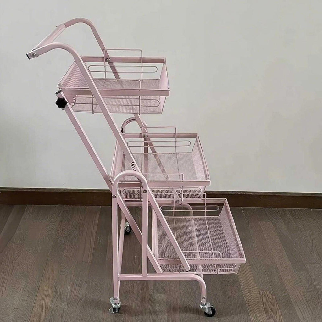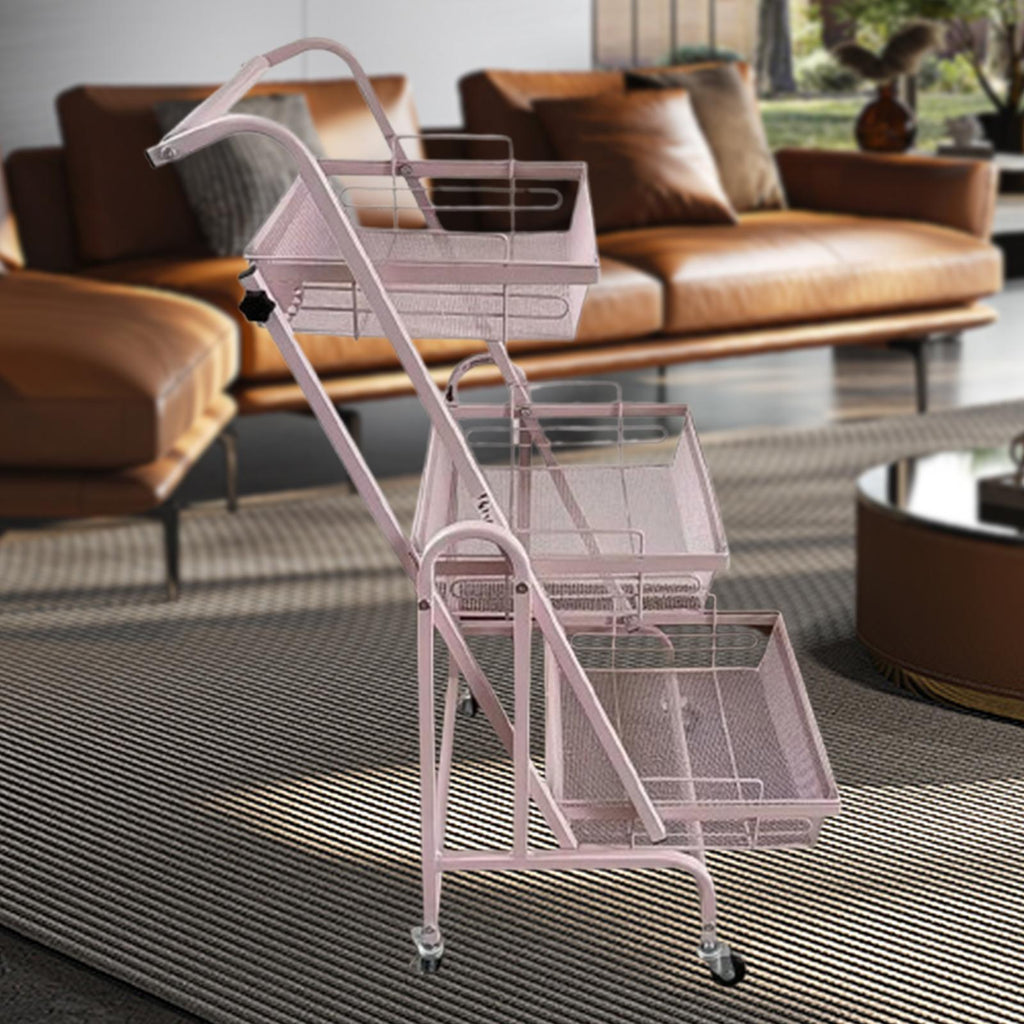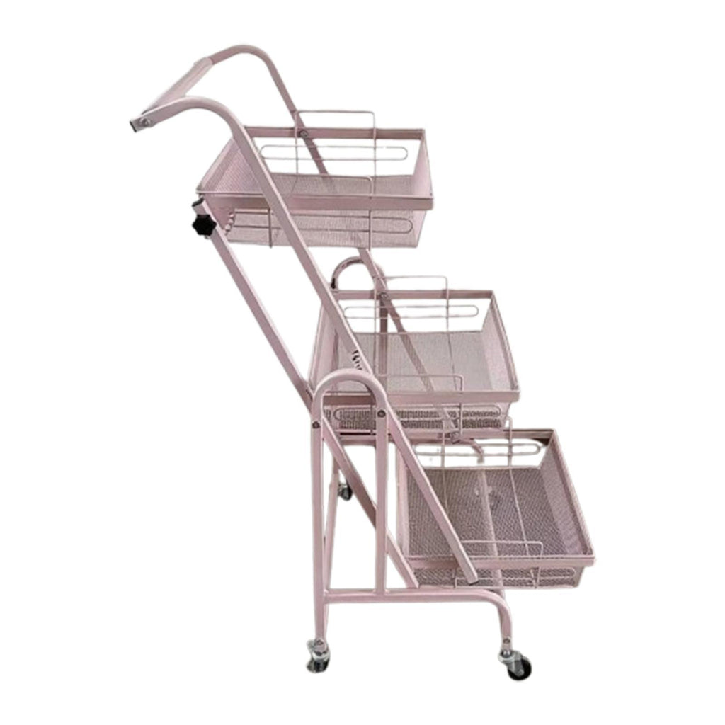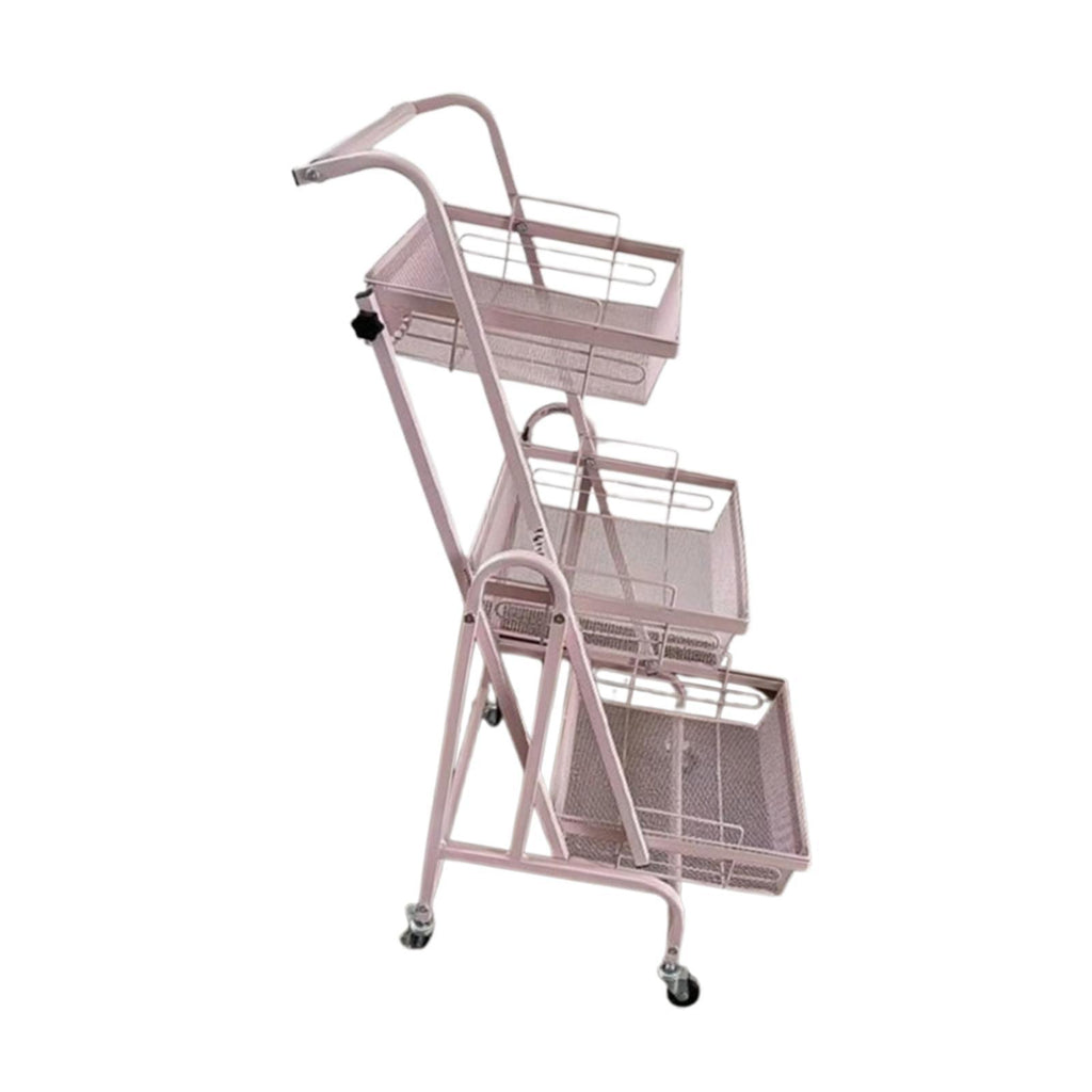 Maxbell 3 Tier Rolling Utility Cart Mobile Trolley for Laundry Room Farmhouse Office Pink