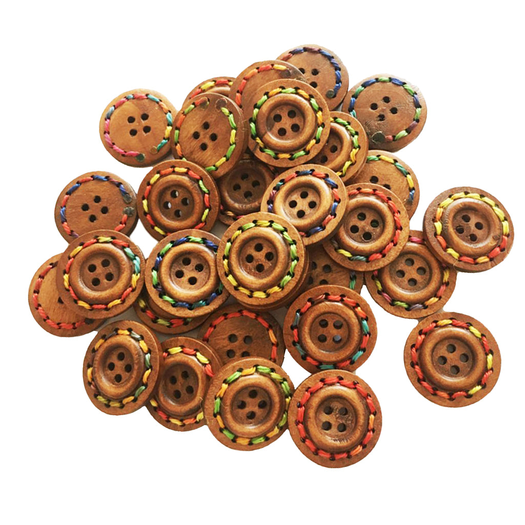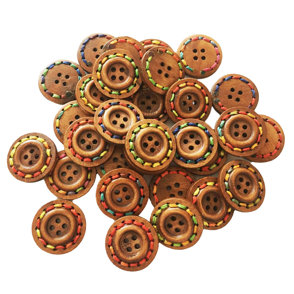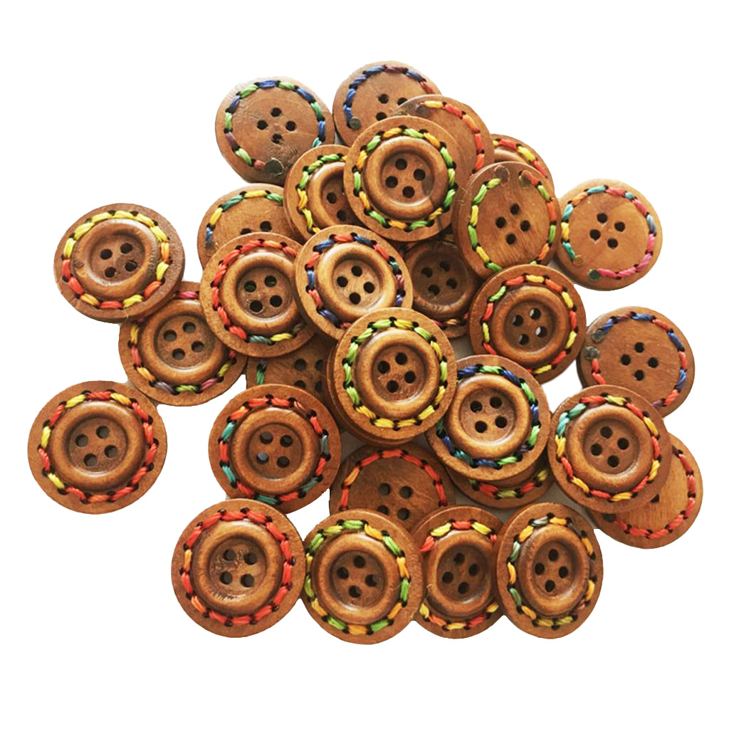 Maxbell 30 Pieces 4 Hole Round Wood Buttons DIY Sewing Scrapbooking Clothes Decoration 25mm