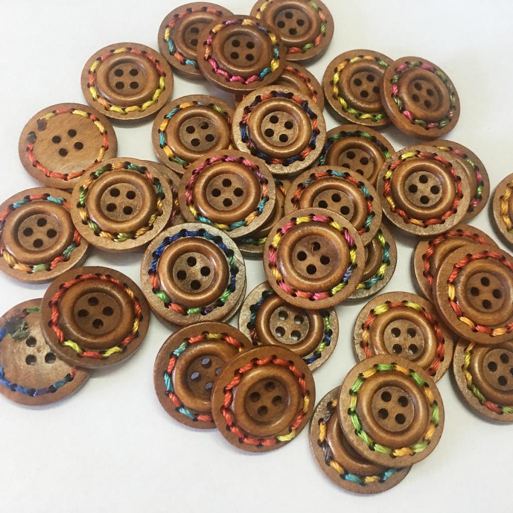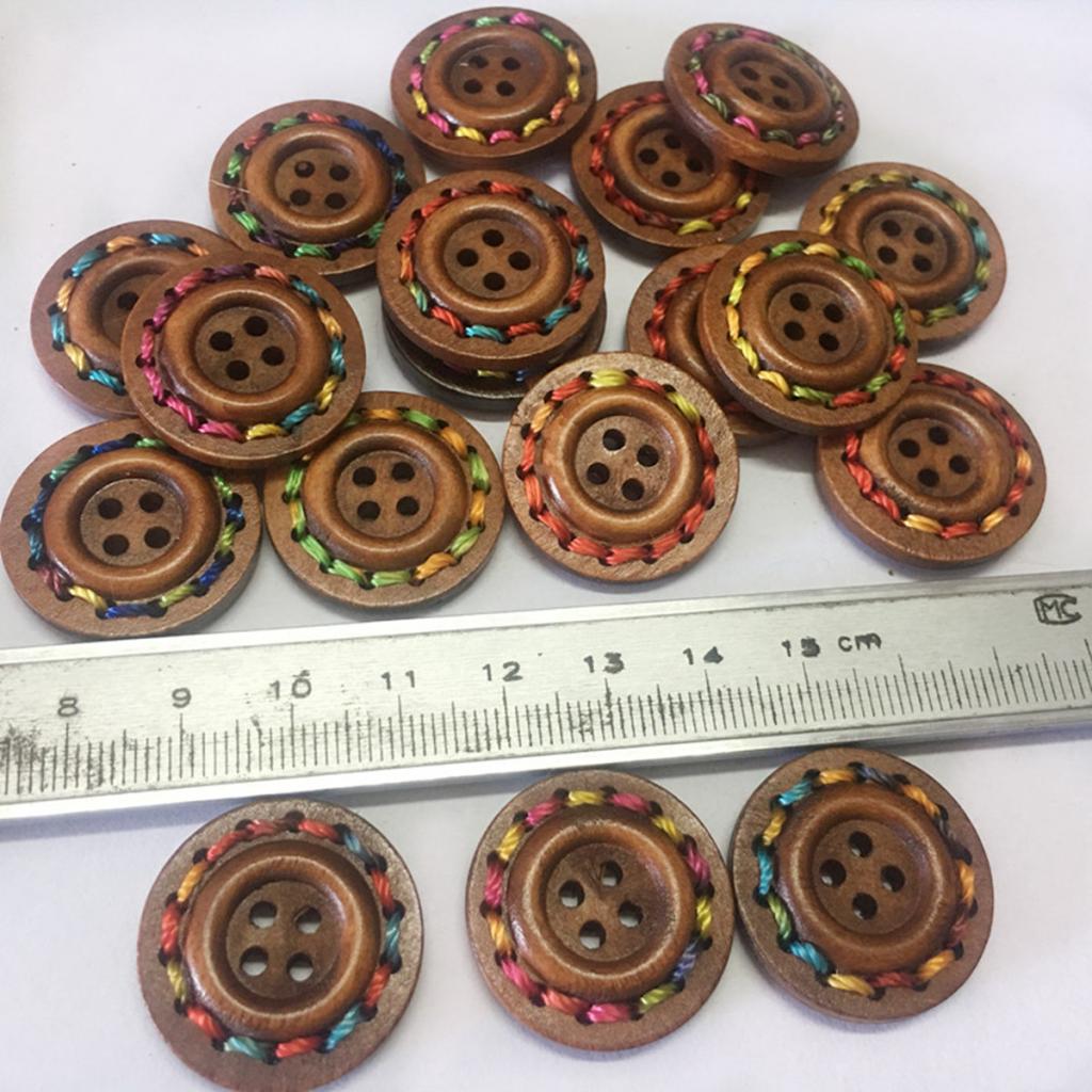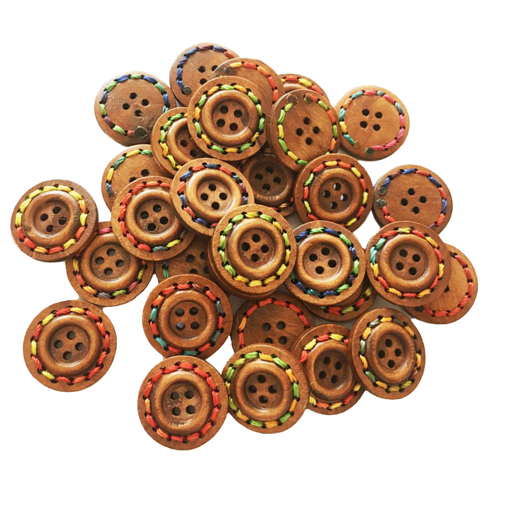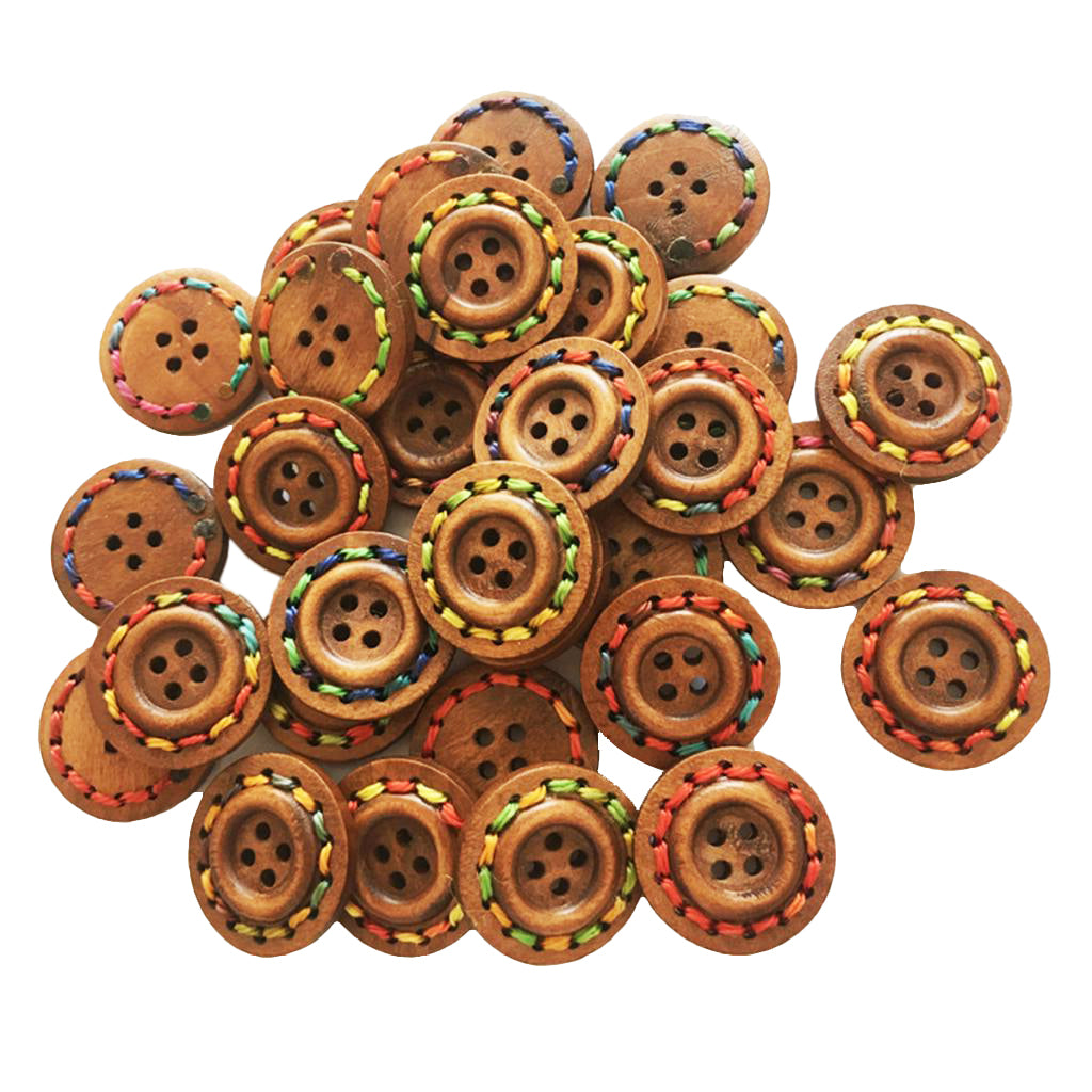 Maxbell 30 Pieces 4 Hole Round Wood Buttons DIY Sewing Scrapbooking Clothes Decoration 25mm