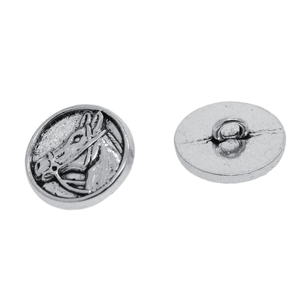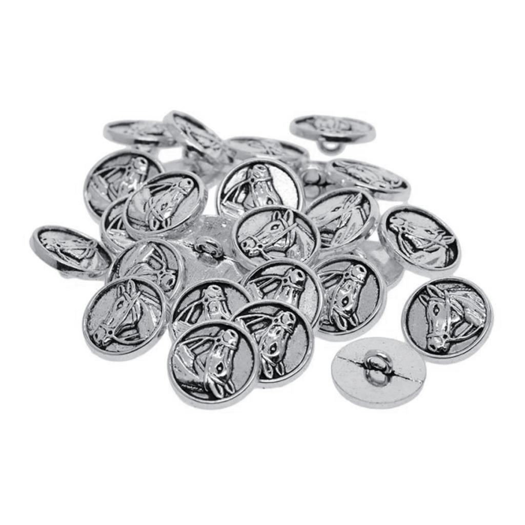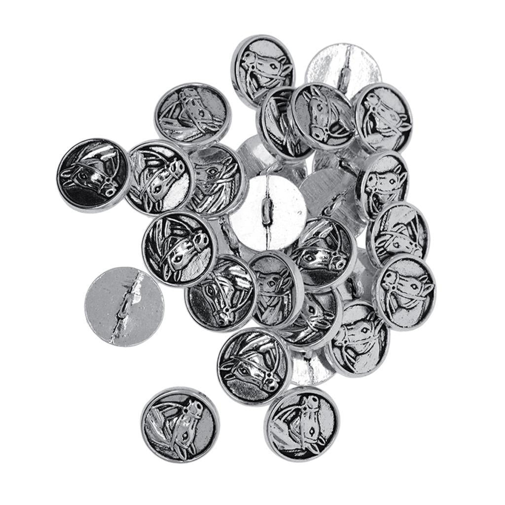 Maxbell 30 Pieces Antique Silver Engraved Shank Buttons Horse Head