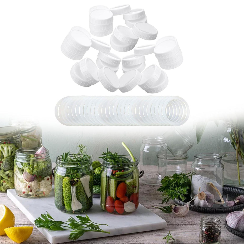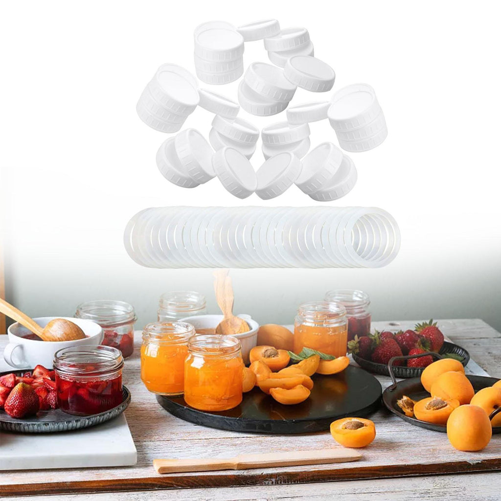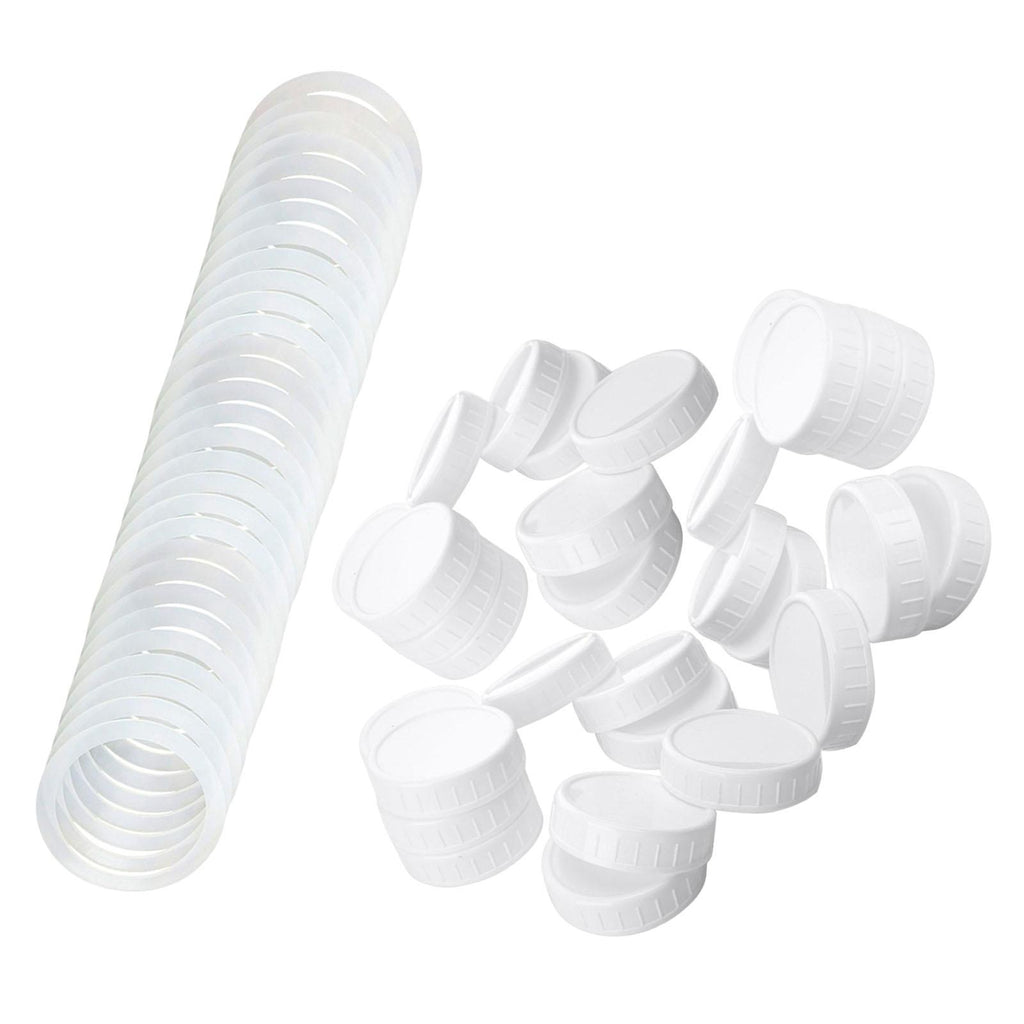 ABUNDANT QUANTITY: A set of 30 white ribbed lid storage lids for Jars is enough for your daily use. The matching sealing rings give the lid a good sealing performance to keep food, grains, seasonings and beverages fresh and safe for storage.