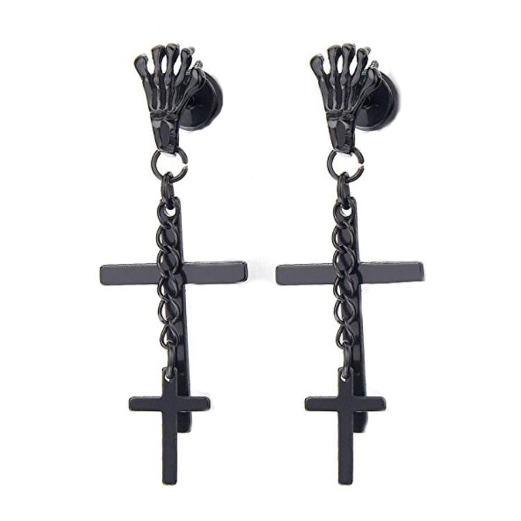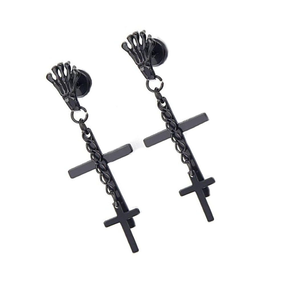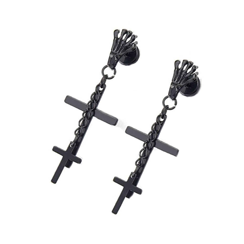 Maxbell 361L Stainless Steel Skeleton Cross Pendant Screw Back Earrings Black