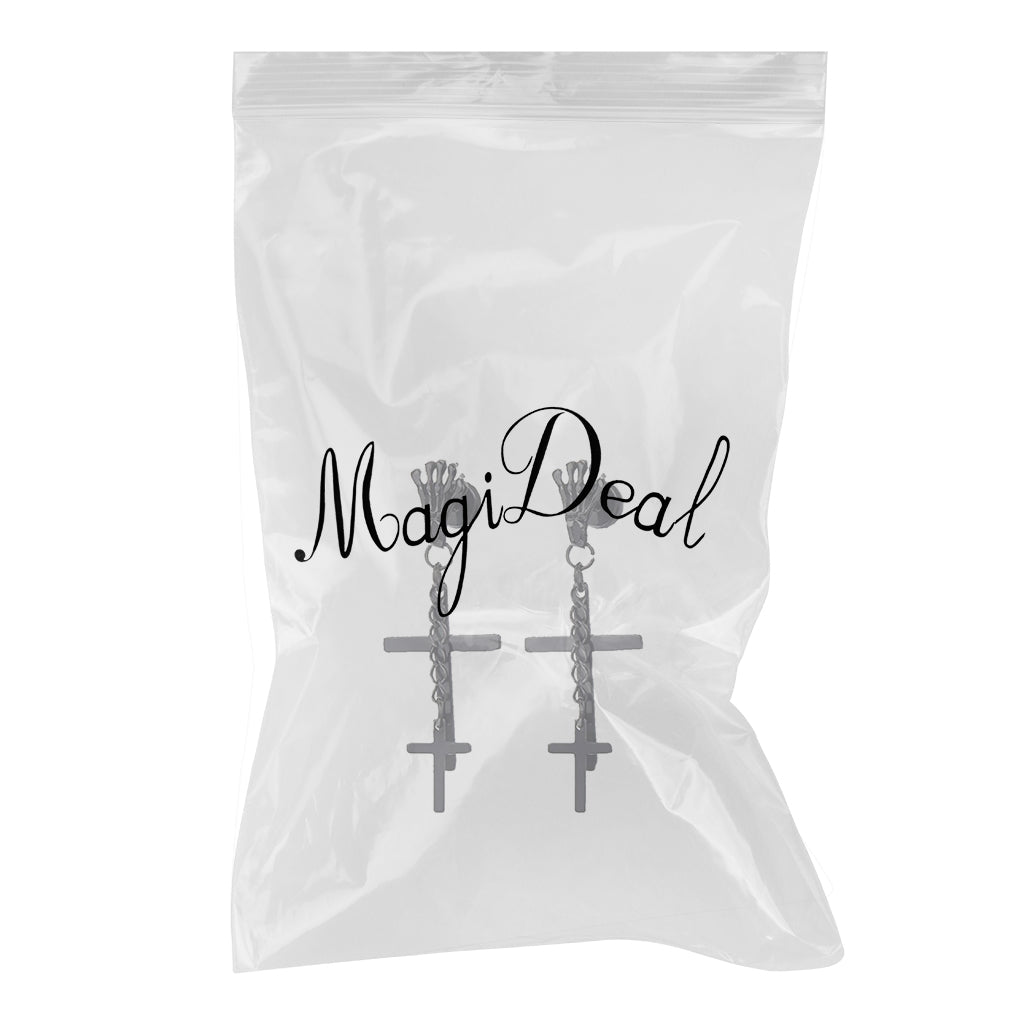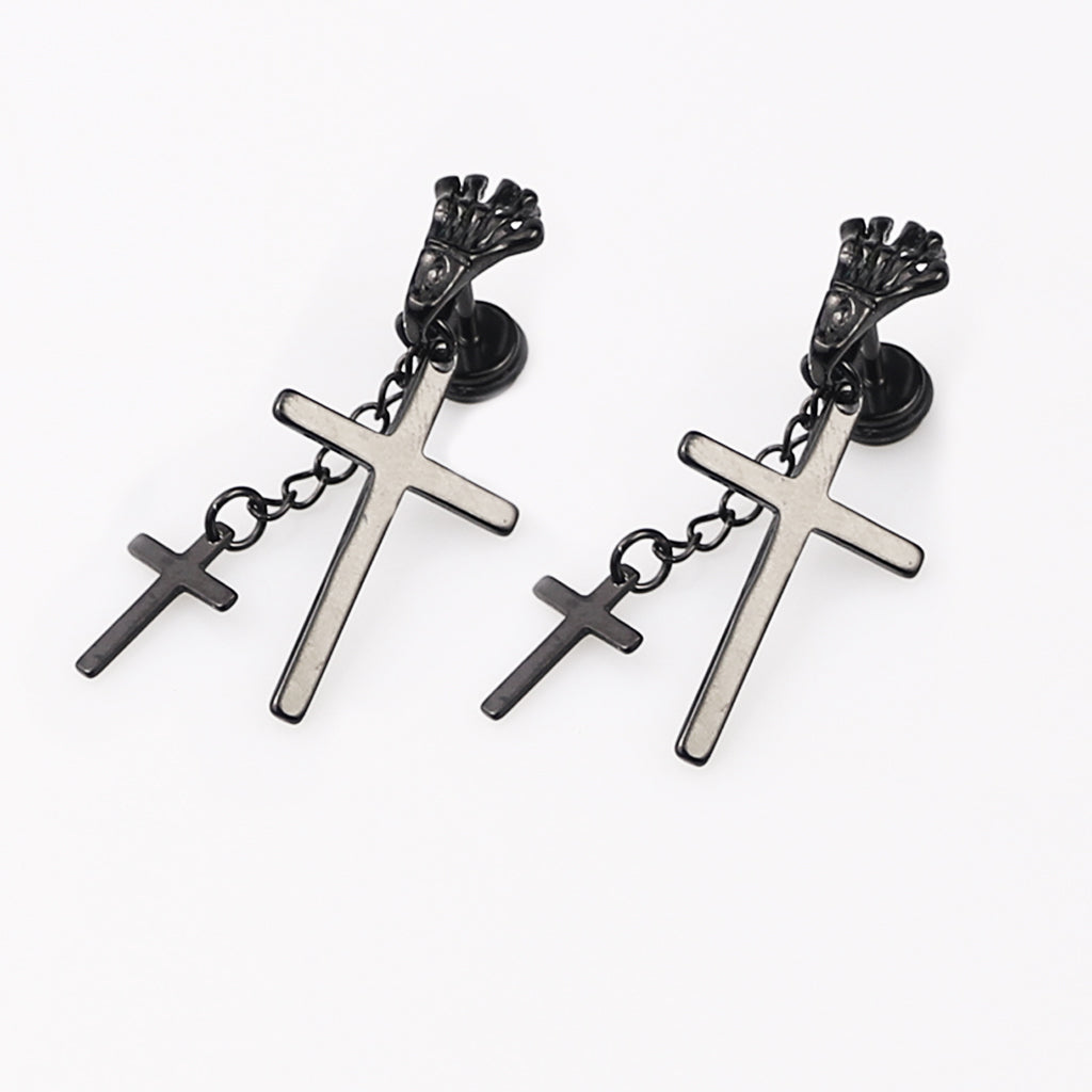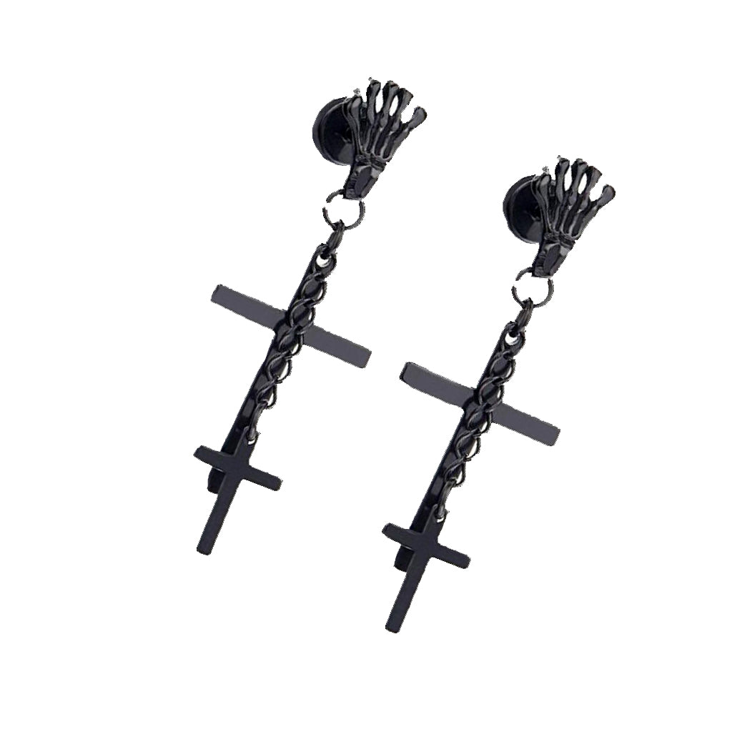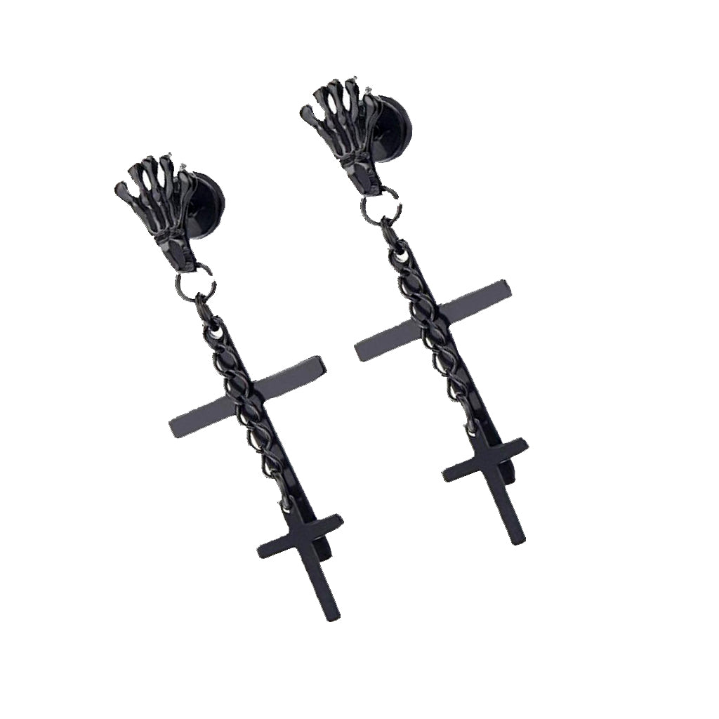 Maxbell 361L Stainless Steel Skeleton Cross Pendant Screw Back Earrings Black