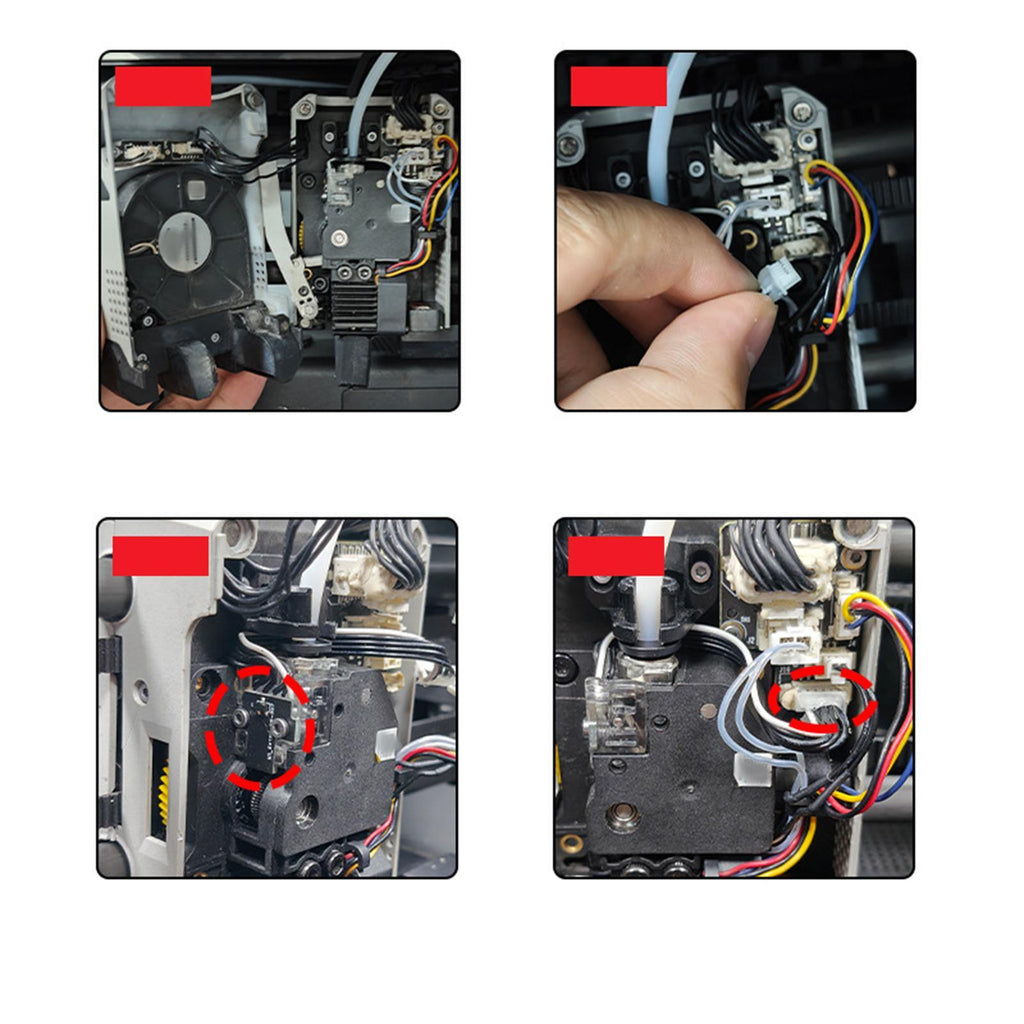 【Function】: When print with multiple filaments, the filament transducer can recognize the input and output of filaments and transmit the information to the system for filament switching. It can also detect filament jamming situations and transmit the information to the printer immediately