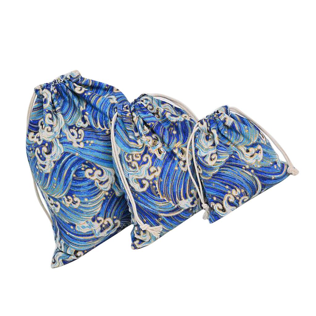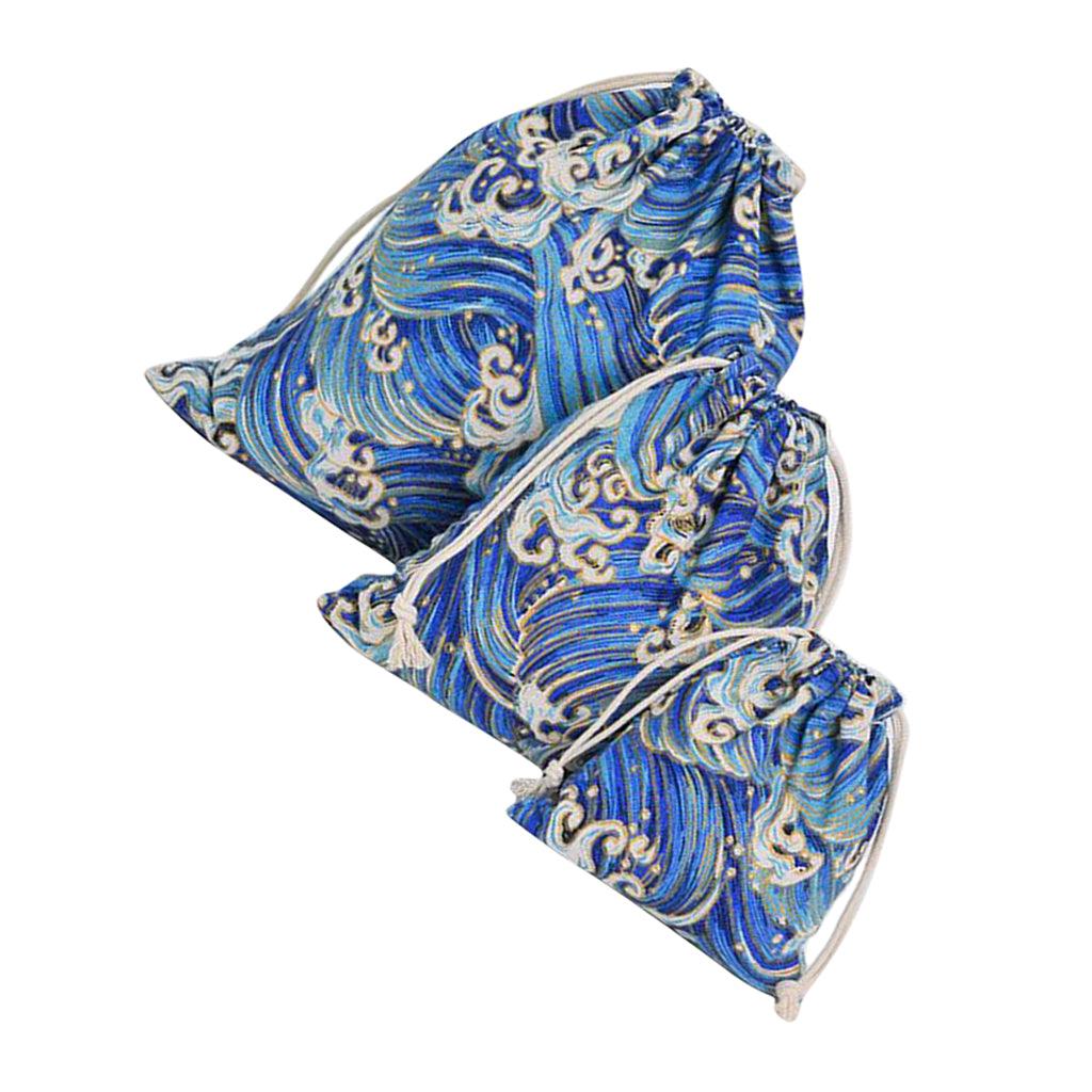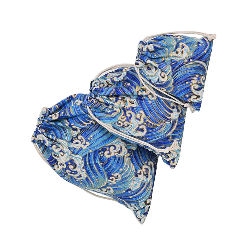 Maxbell 3pcs Cosmetic Tea gift Drawstring Storage bag gold blocking dark blue 3 pcs