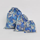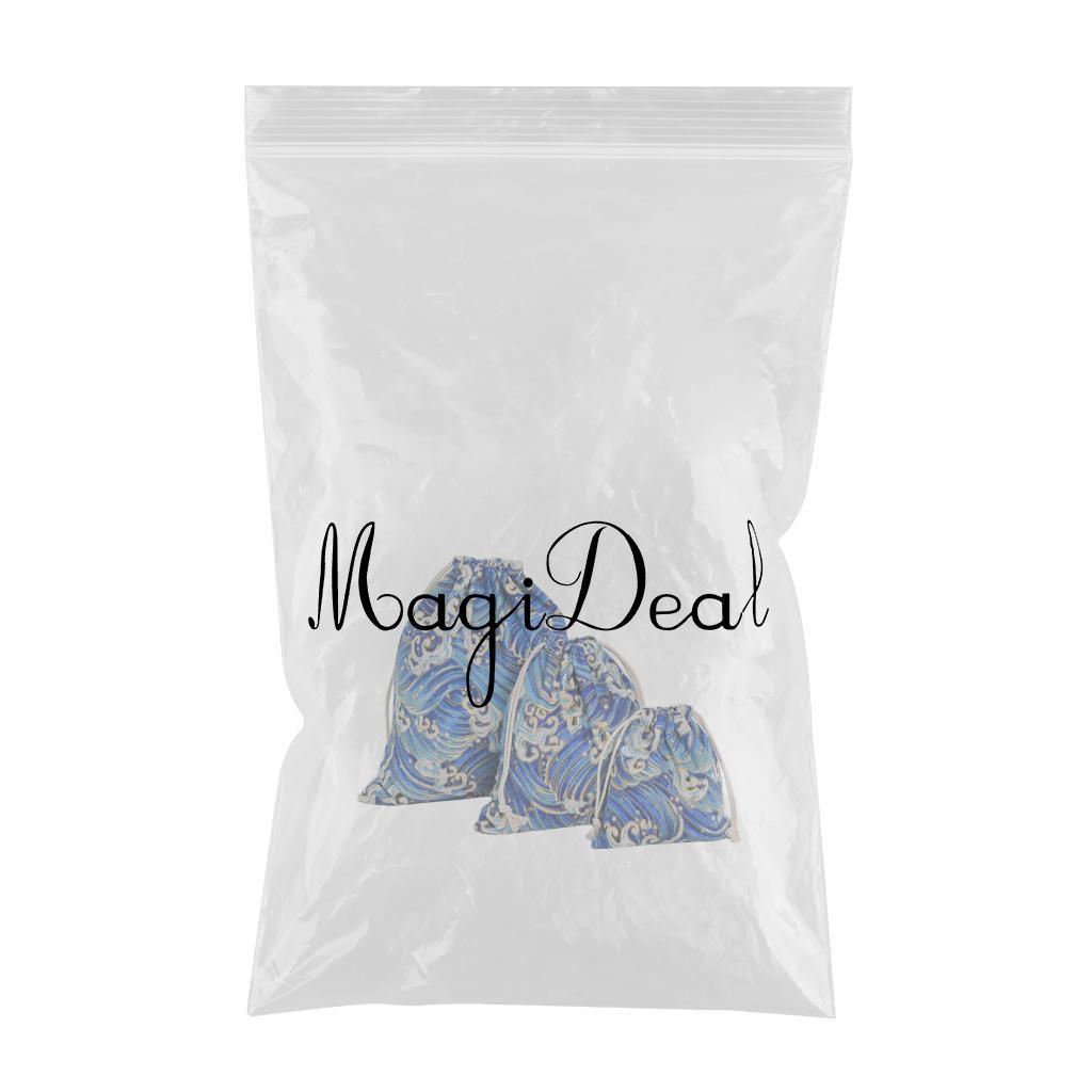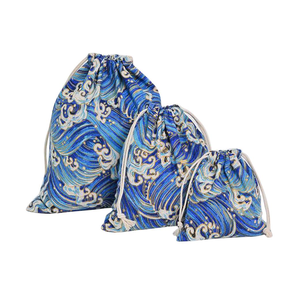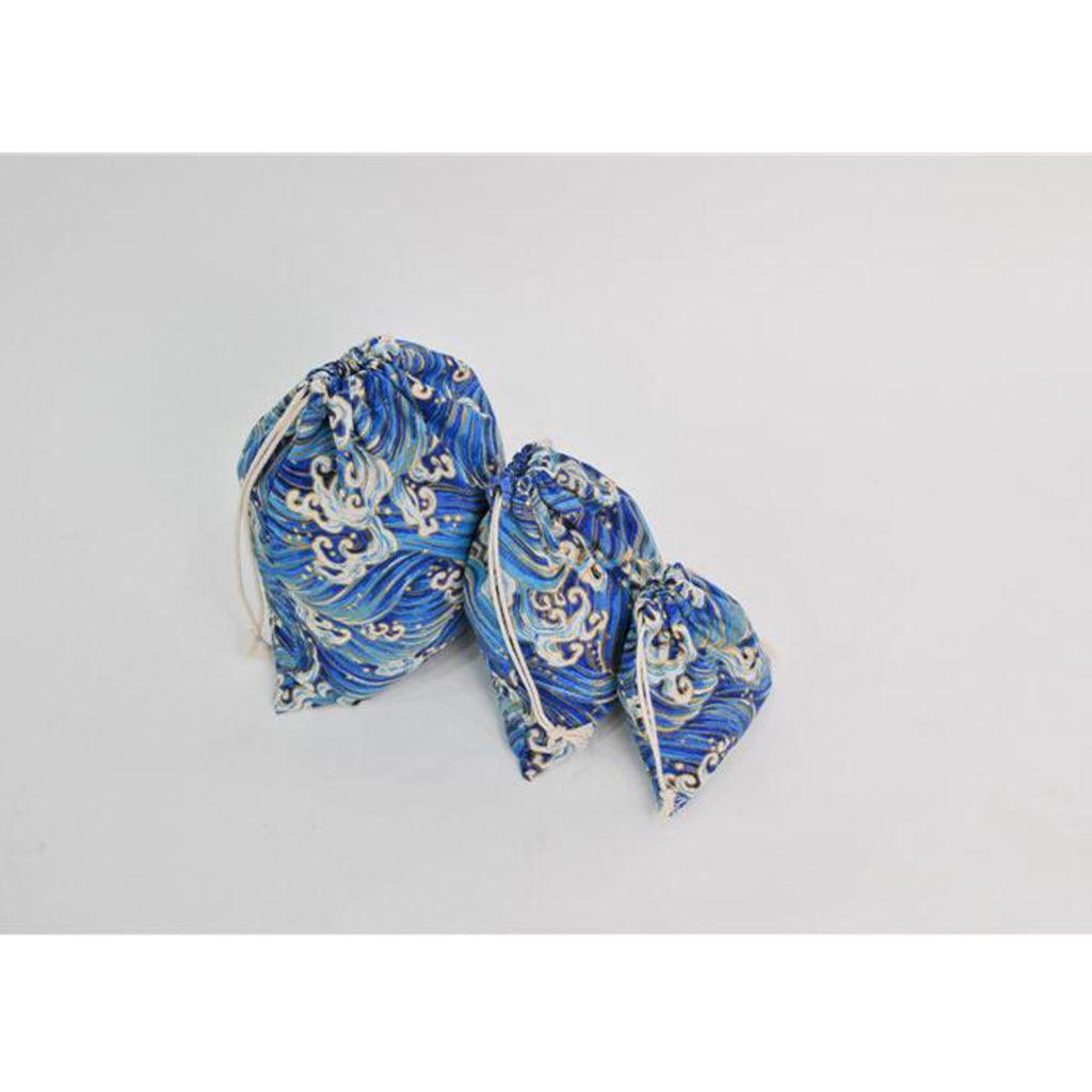 Maxbell 3pcs Cosmetic Tea gift Drawstring Storage bag gold blocking dark blue 3 pcs