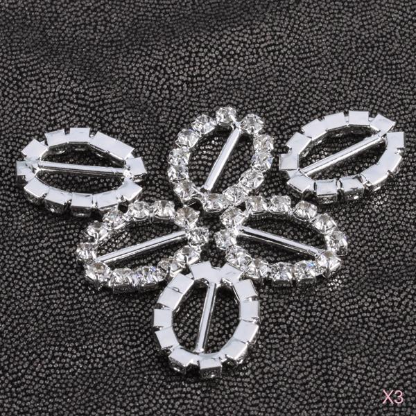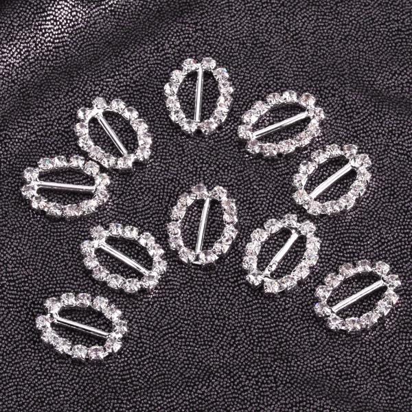 Maxbell 3x 10 Oval Crystal Rhinestone Buckle Ribbon Sliders Wedding craft 0.43" 11mm