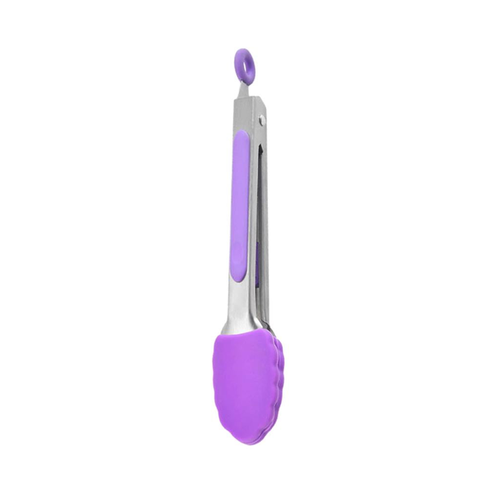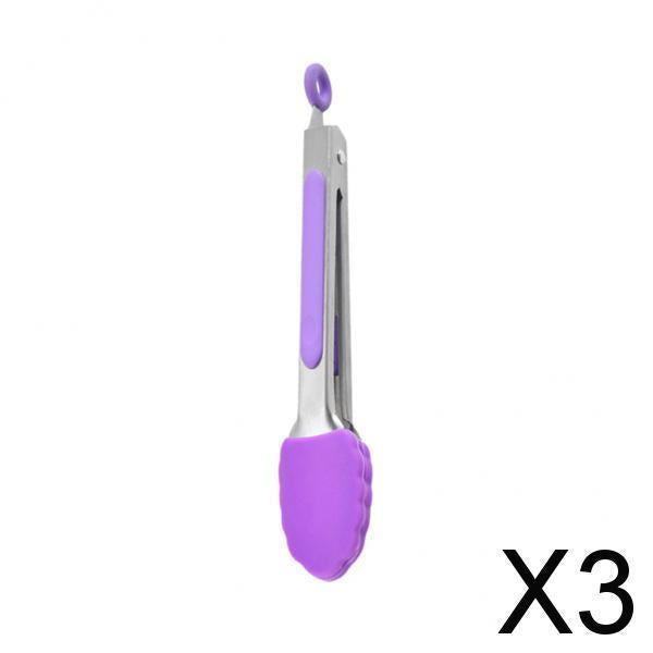 Maxbell 3xKitchen Tongs with Silicone Tips Food BBQ Cooking Utensil 7 inch Purple