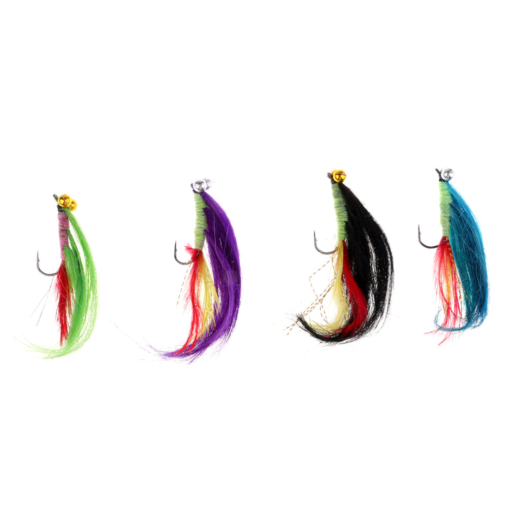 Maxbell 4pcs Dry Fly Lure Single Hook Various Colors Long Tail Fish Feather Hook Trout Fishing Dry Flies