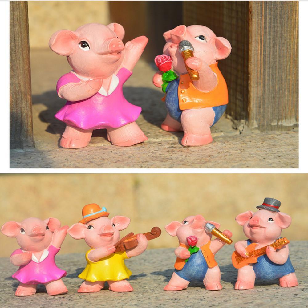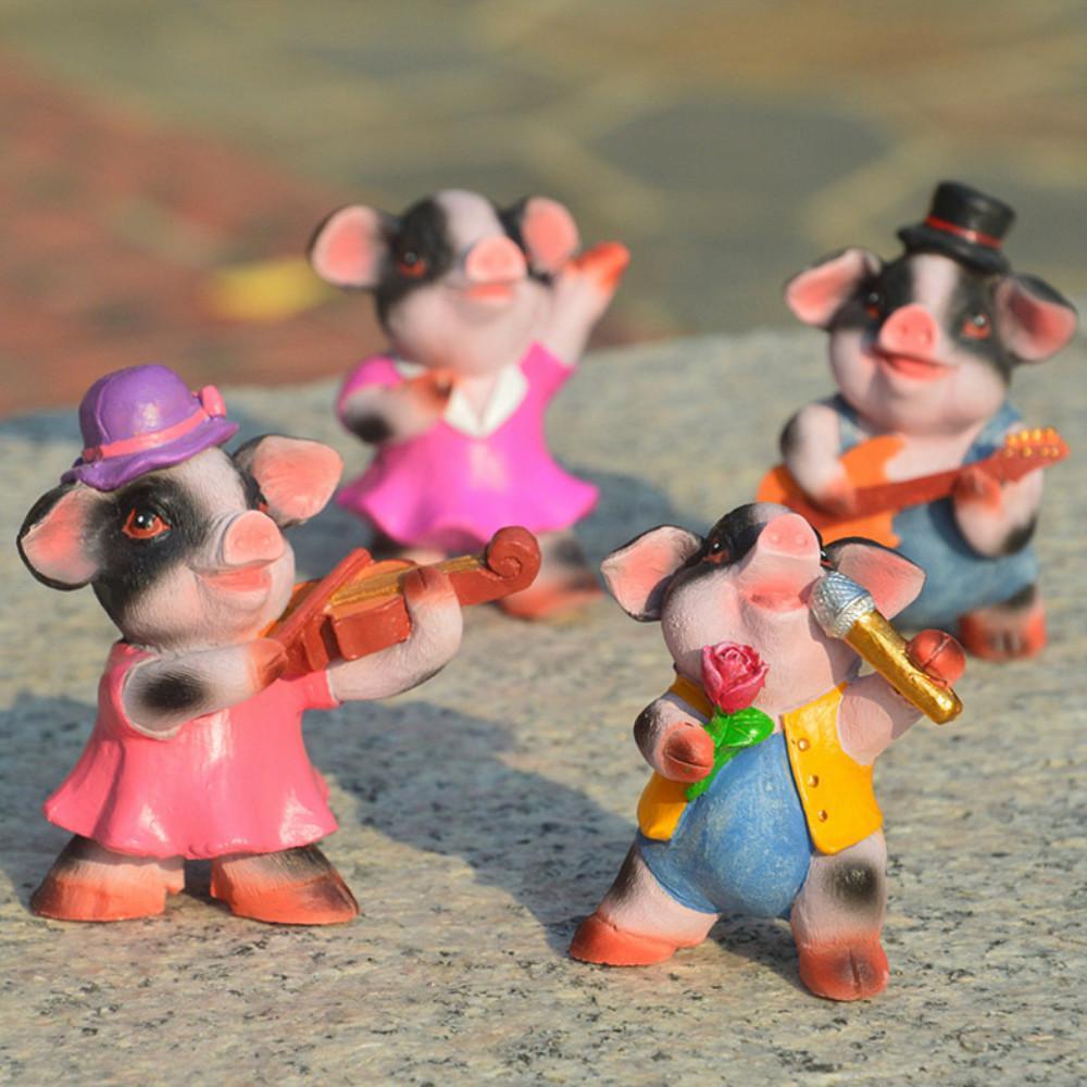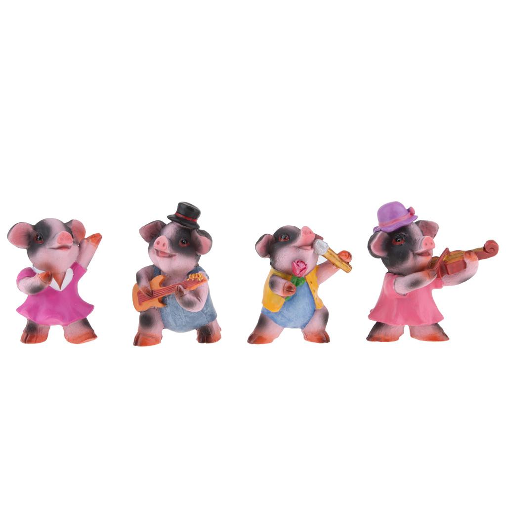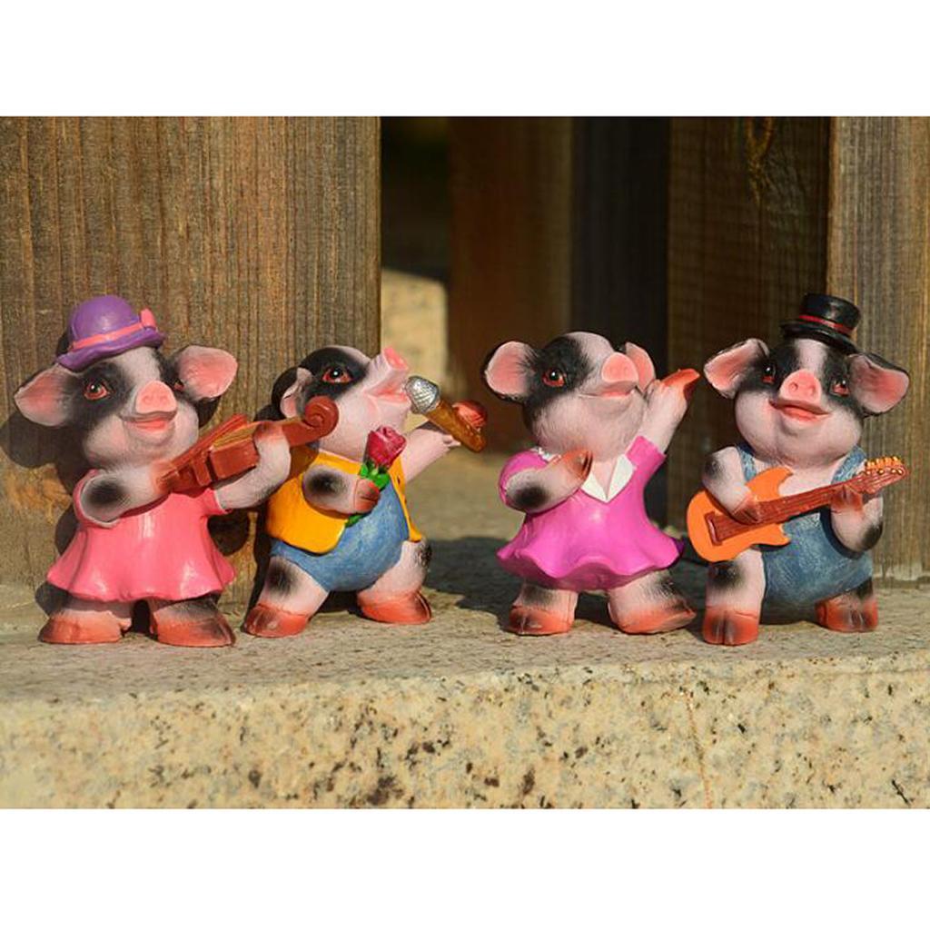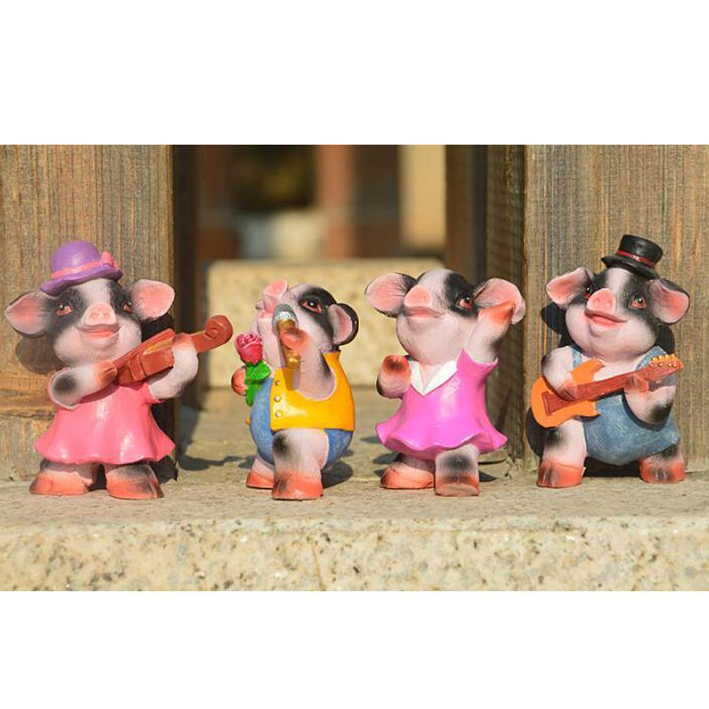 Max 4x Funny Cute Pig Garden Statue Resin Lawn Ornaments Deco Spotted Pig Family