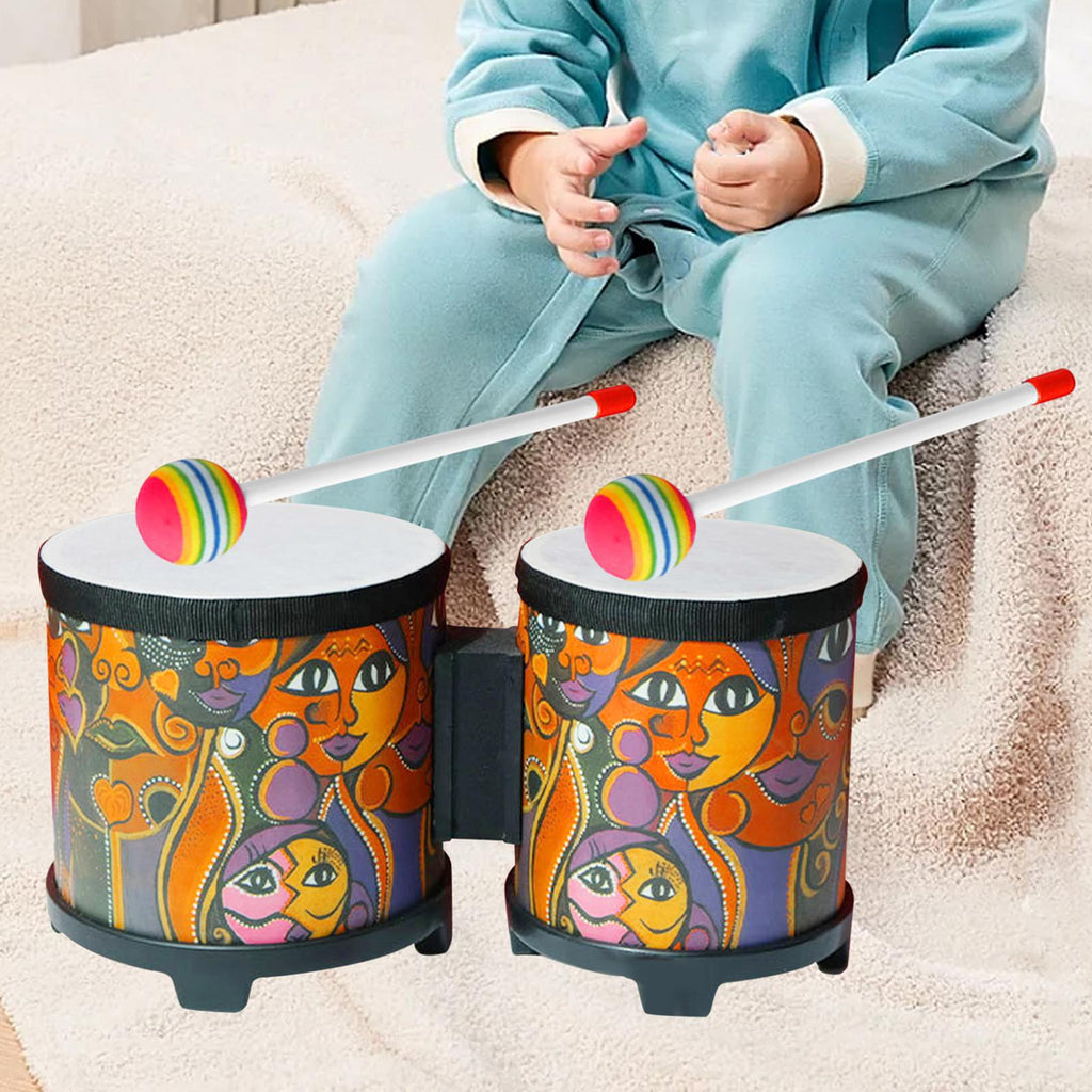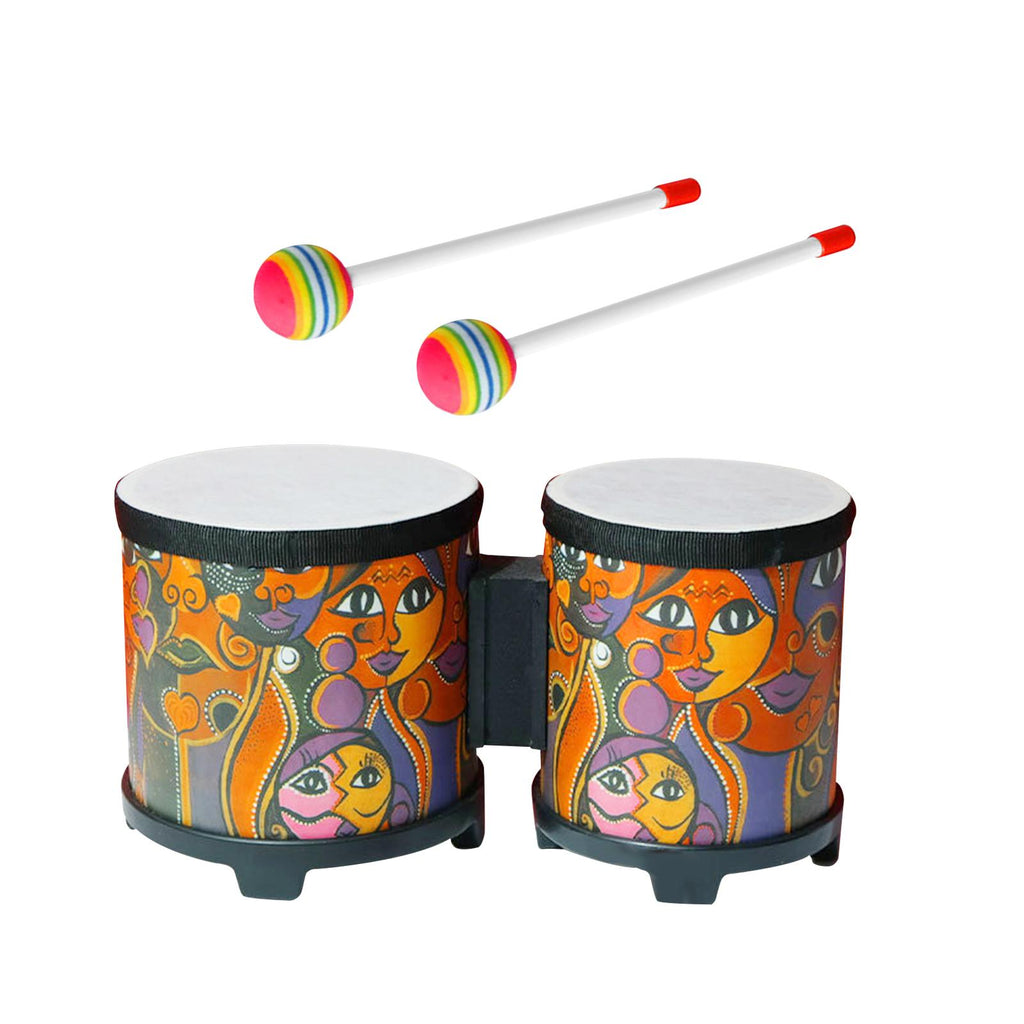 Maxbell 5'' and 6'' Bongo Drum Set with Wood Drumsticks for Girls Boys Birthday Gift Face