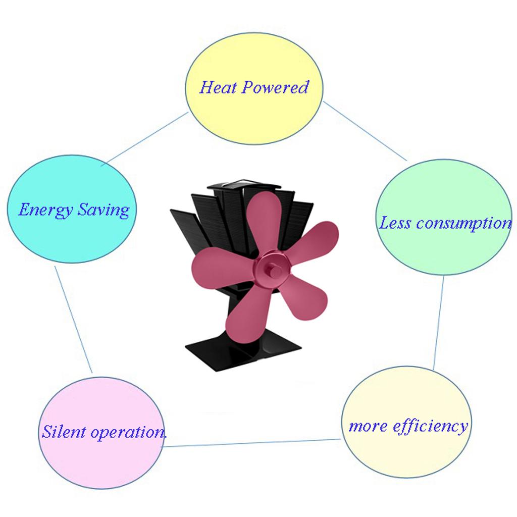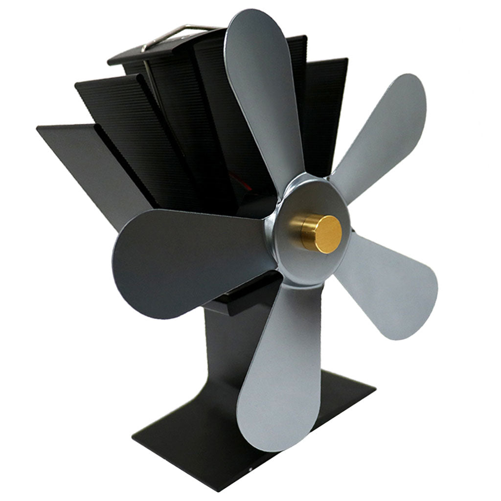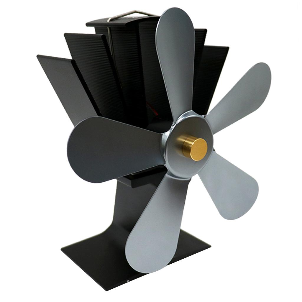 Maxbell Maxbell 5-Blade Wood Stove Heat Powered Stove Fireplace Fan Gray