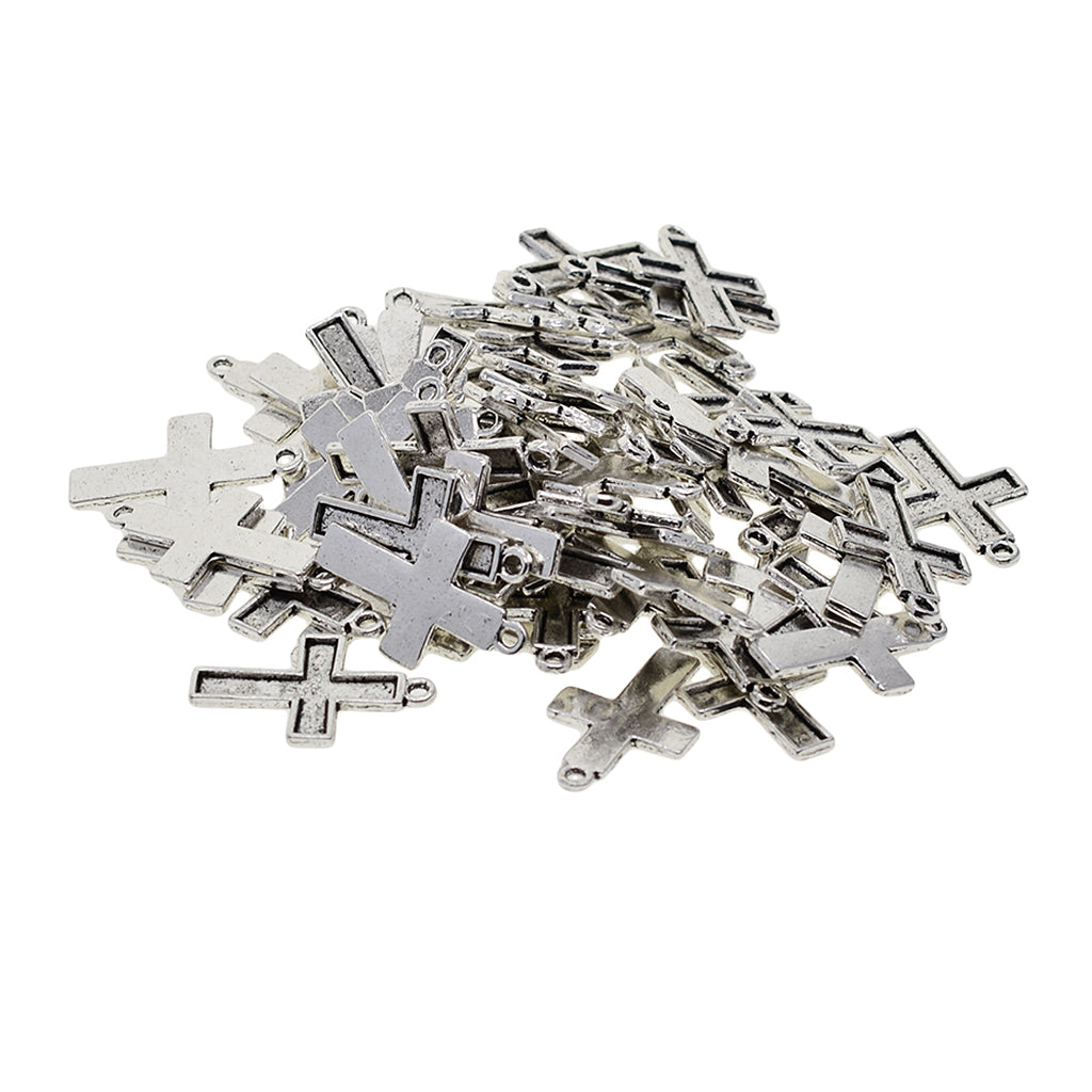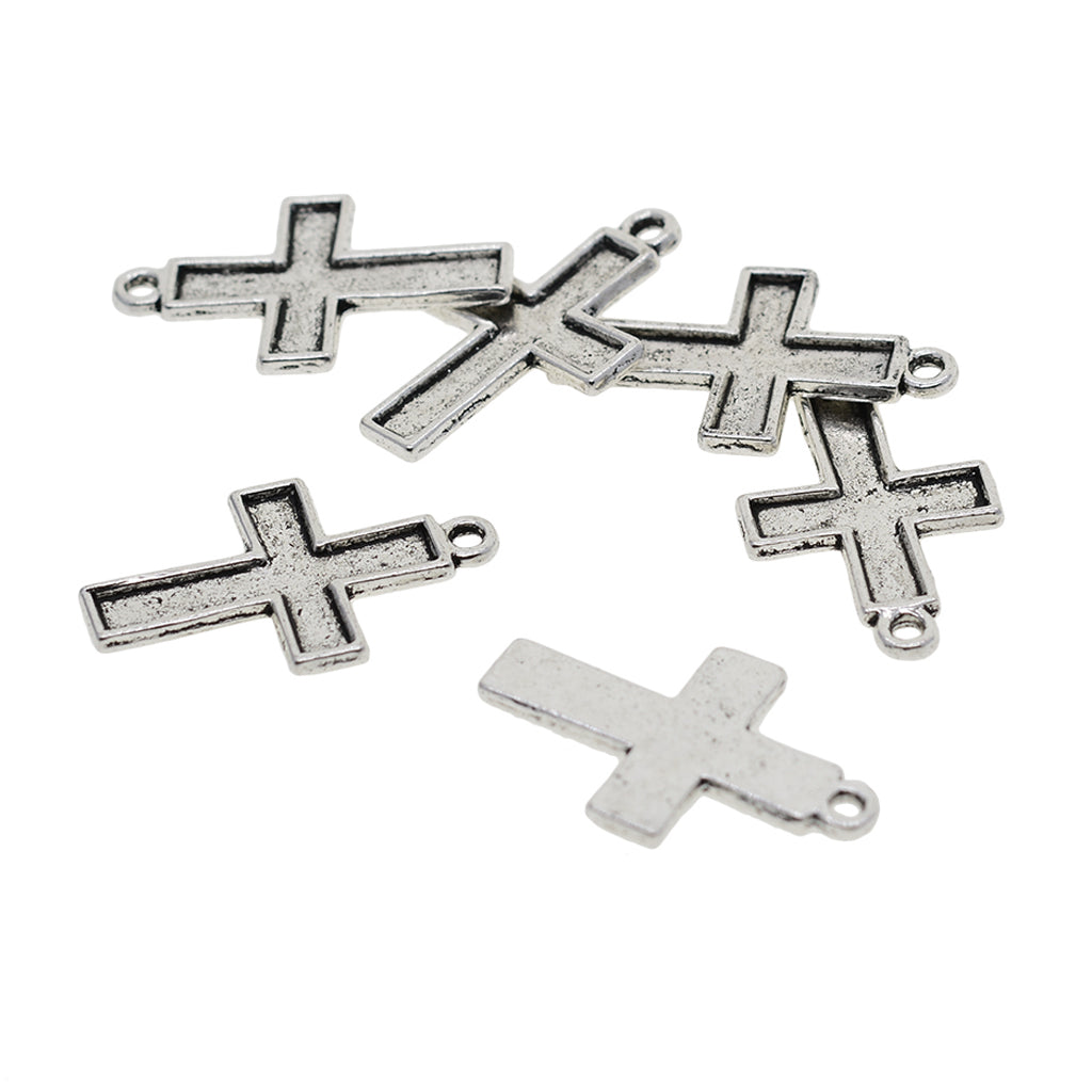 Maxbell 50 Pieces Lots 30x19 mm Vintage Cross Pendant Bezel Trays, Tibetan Silver, Blanks Cameo Bezel Cabochon Settings for Jewelry Making Charms Necklace Findings
