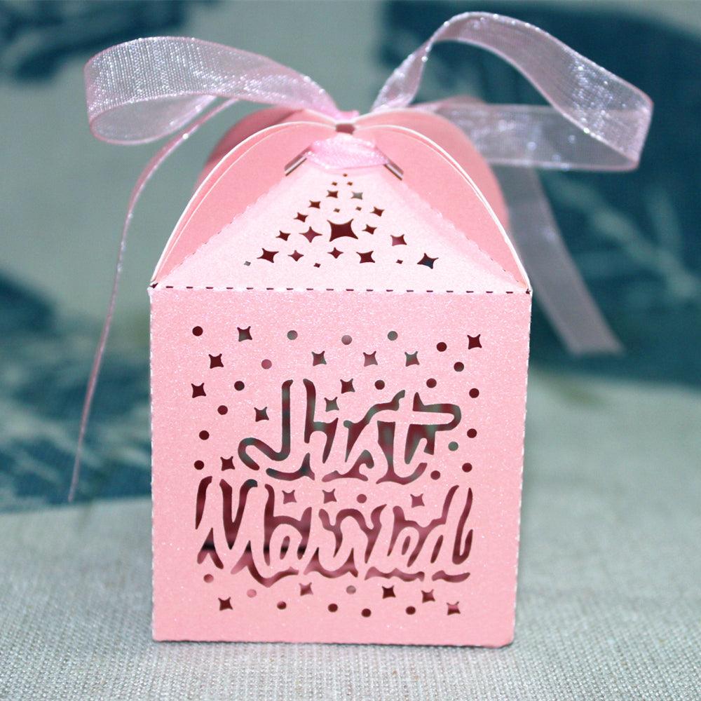 Maxbell Maxbell 50x Hollow Just Married Candy Gift Boxes w/ Ribbon Wedding Party Favor Pink