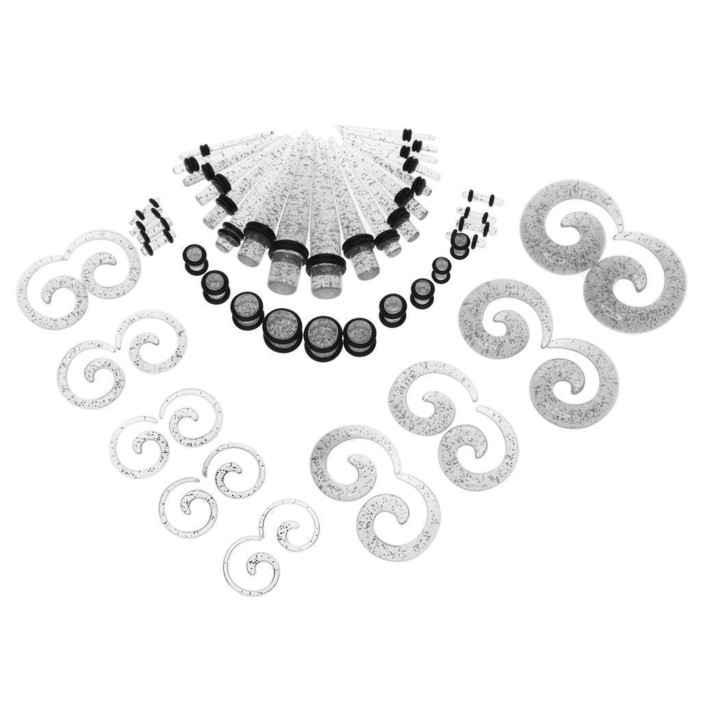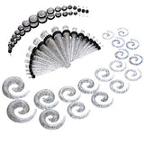 Maxbell Maxbell 54pcs Gauges Kit Spiral Tapers and Plugs 14G-00G Stretching Kit Transparent