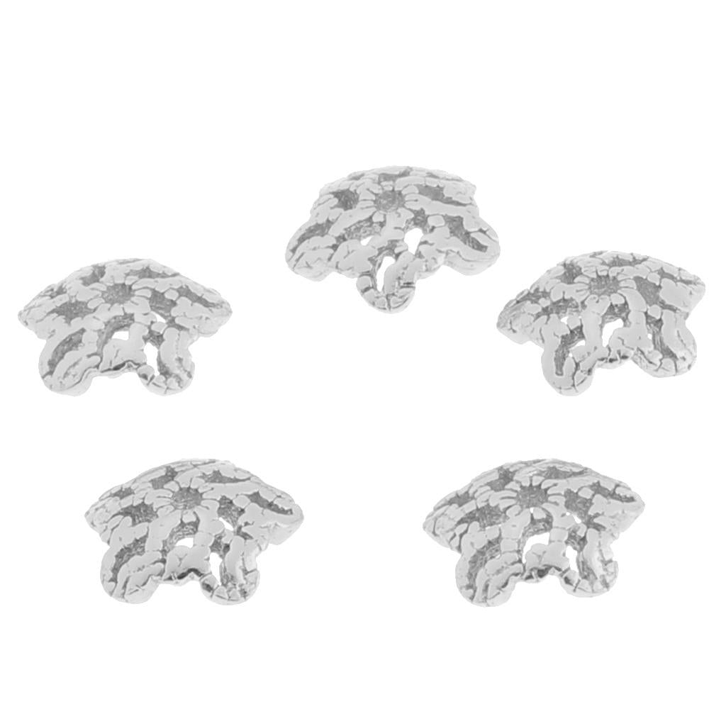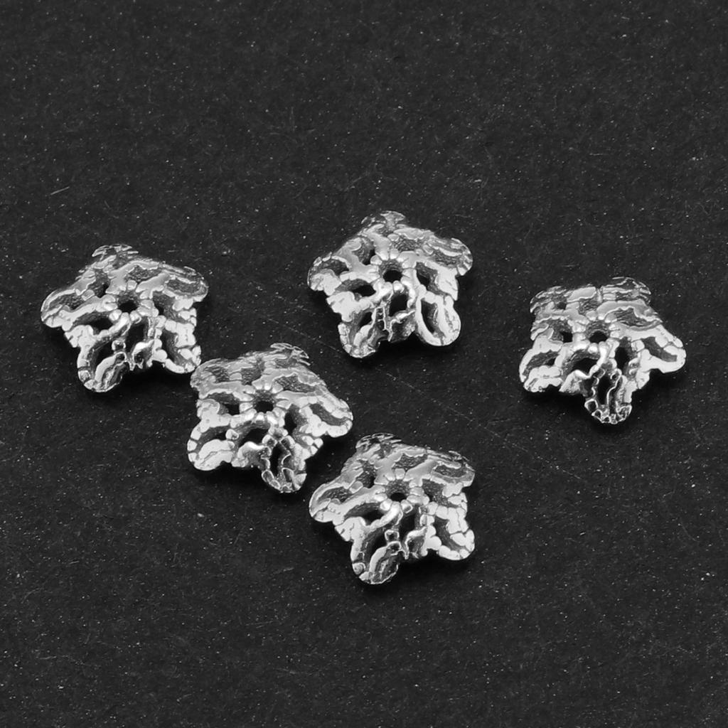 Maxbell 5pcs 6mm Antique Flower Cap 925 Sterling Loose Beads End Cap Silver White