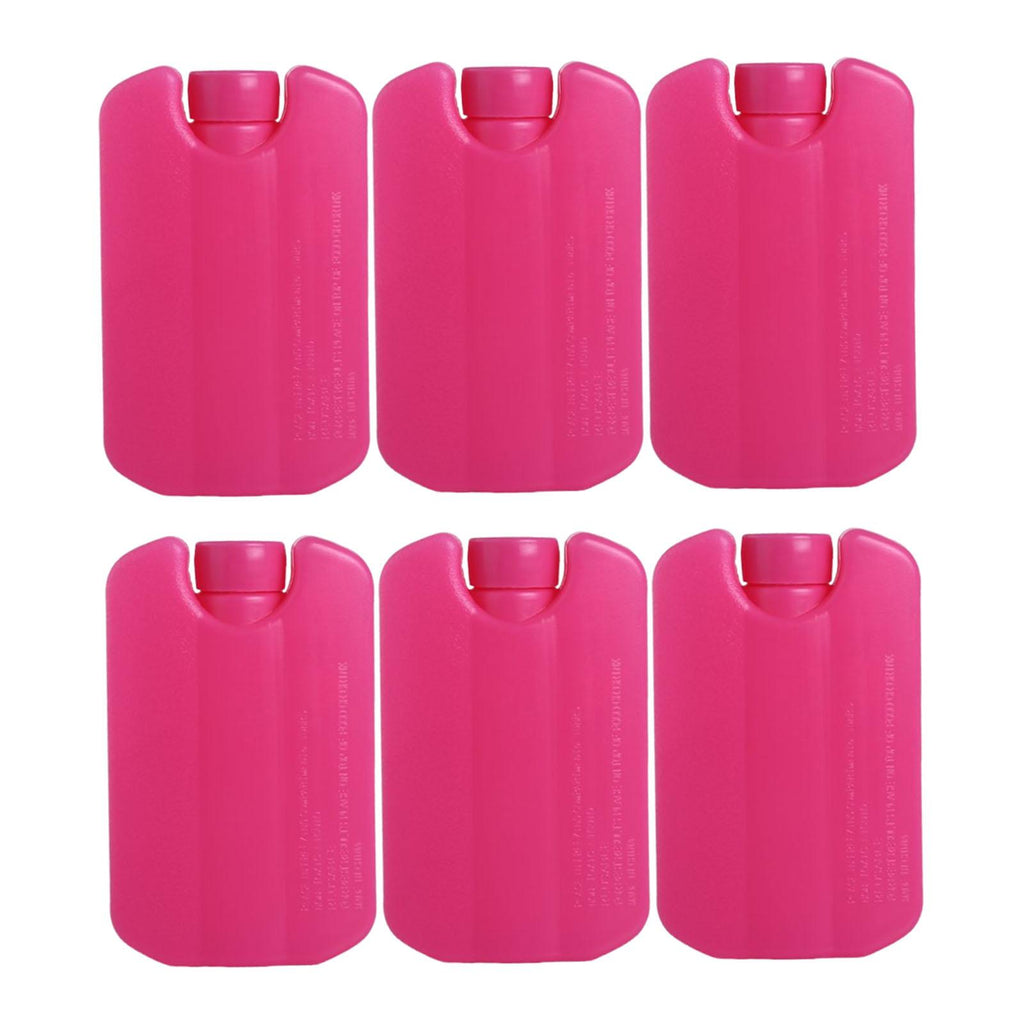 Maxbell 6 Pieces Ice Pack for Travel Cool Box Ice Cooler Blocks for Home Camping BBQ Dark Pink