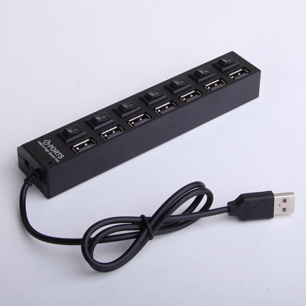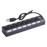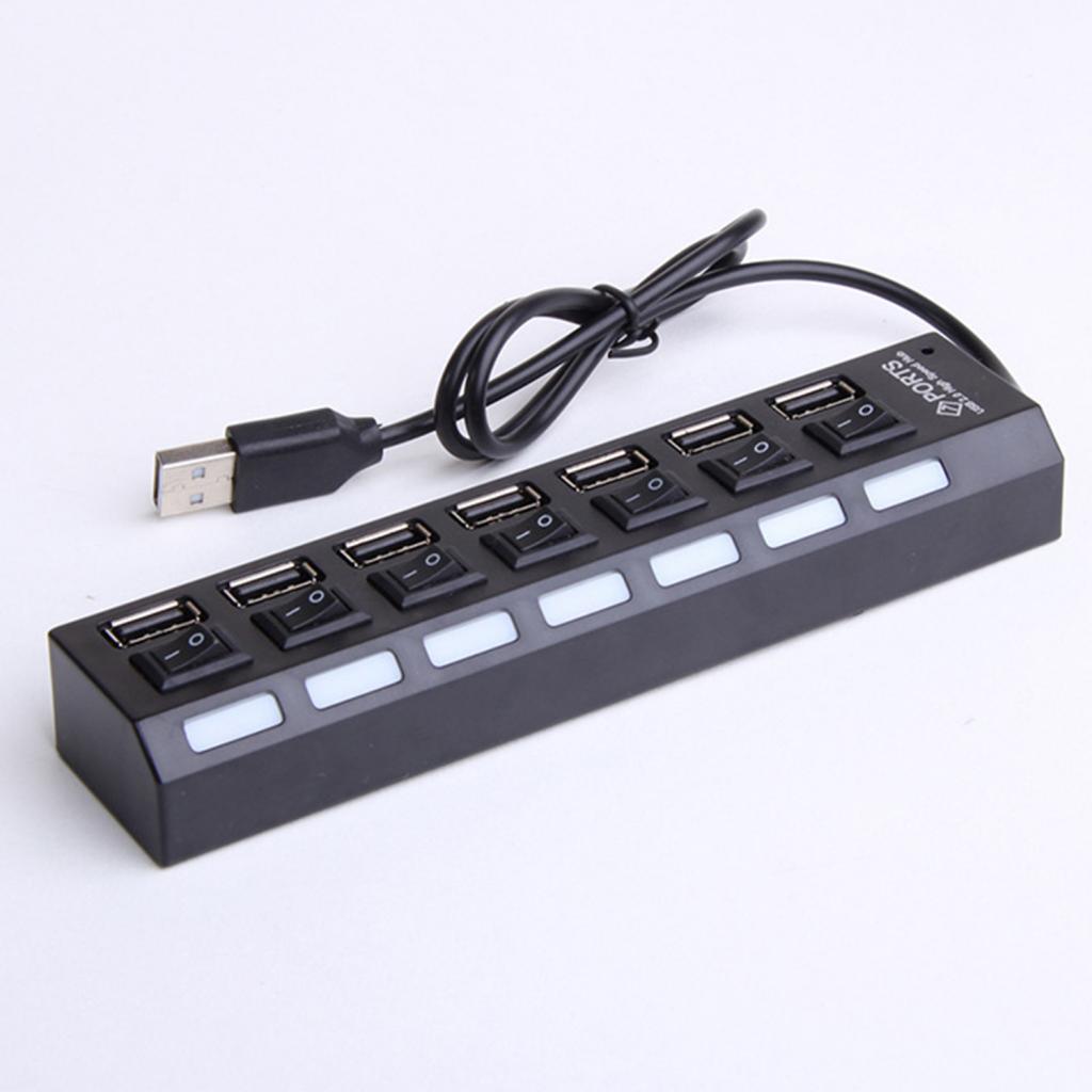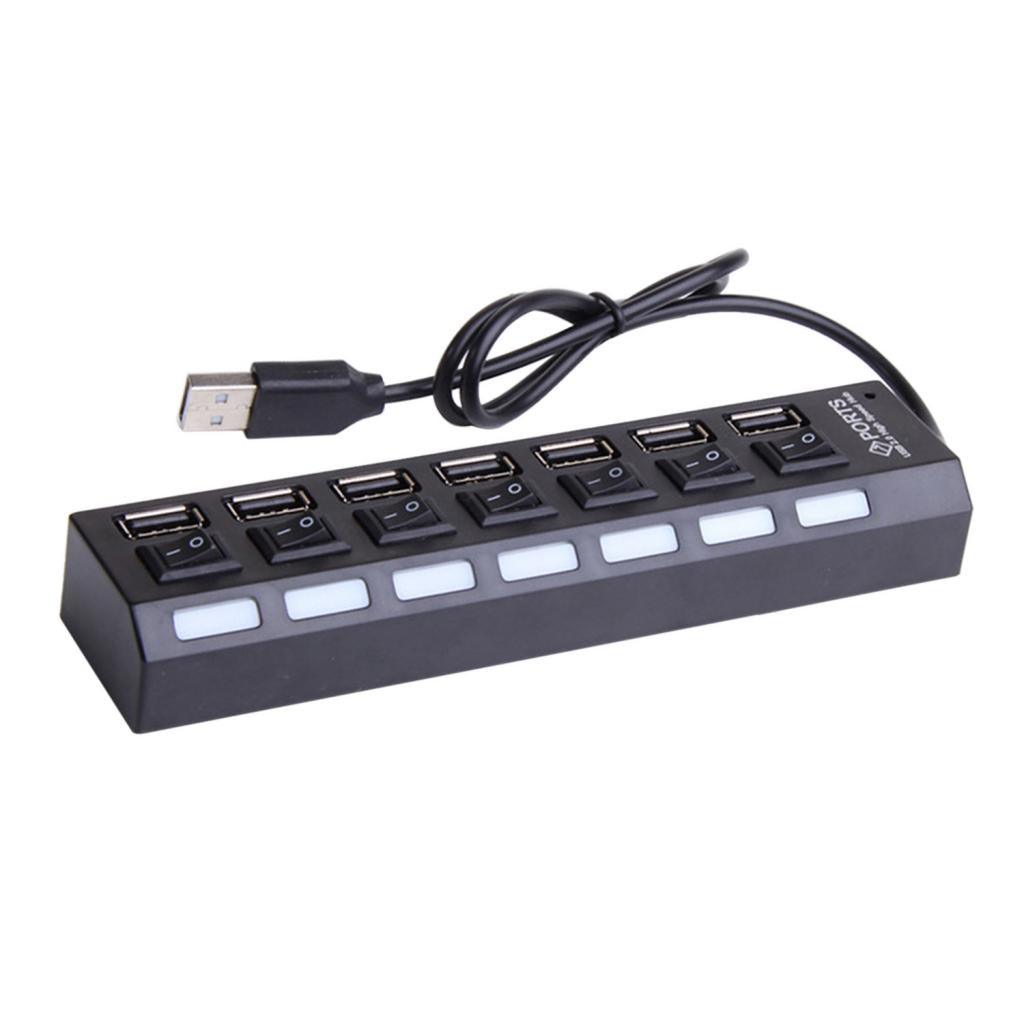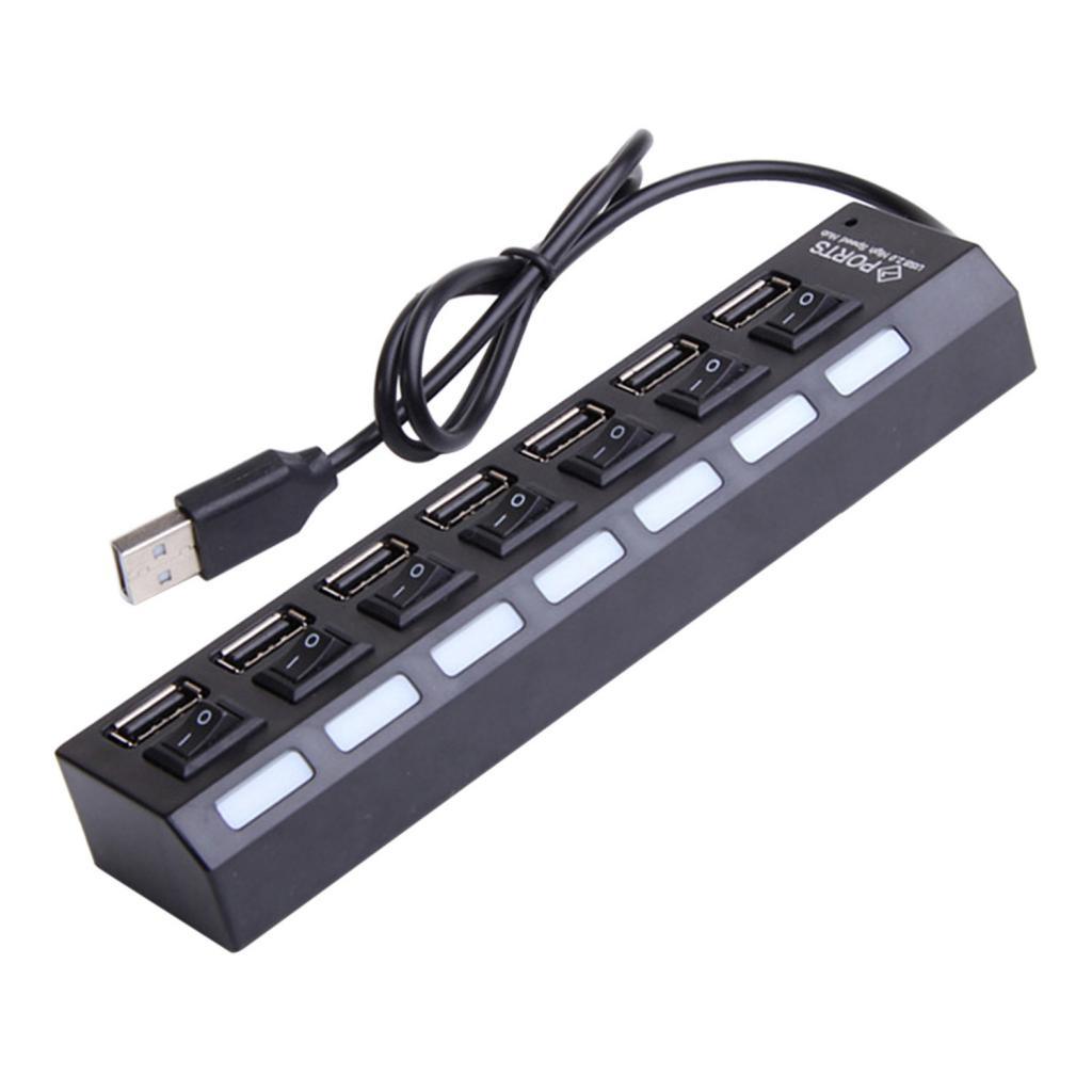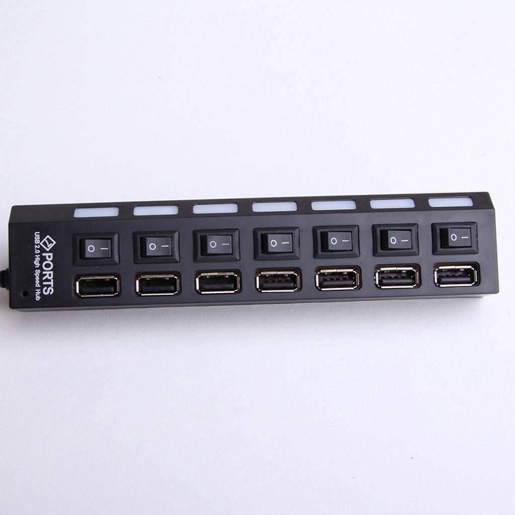 Maxbell 7-Port USB 2.0 Hub w/ High Speed Adapter ON/OFF Switch for PC Splitter black